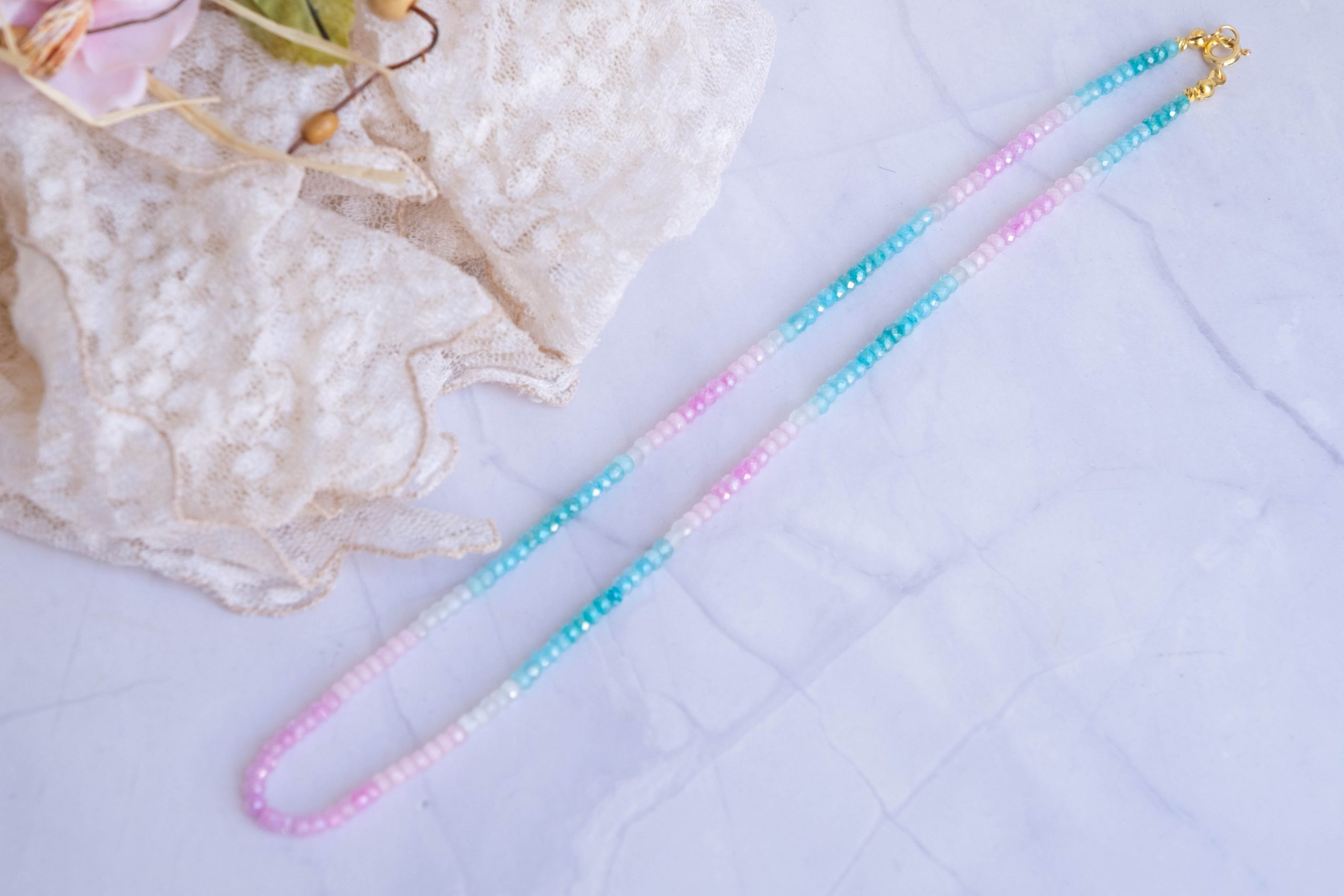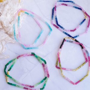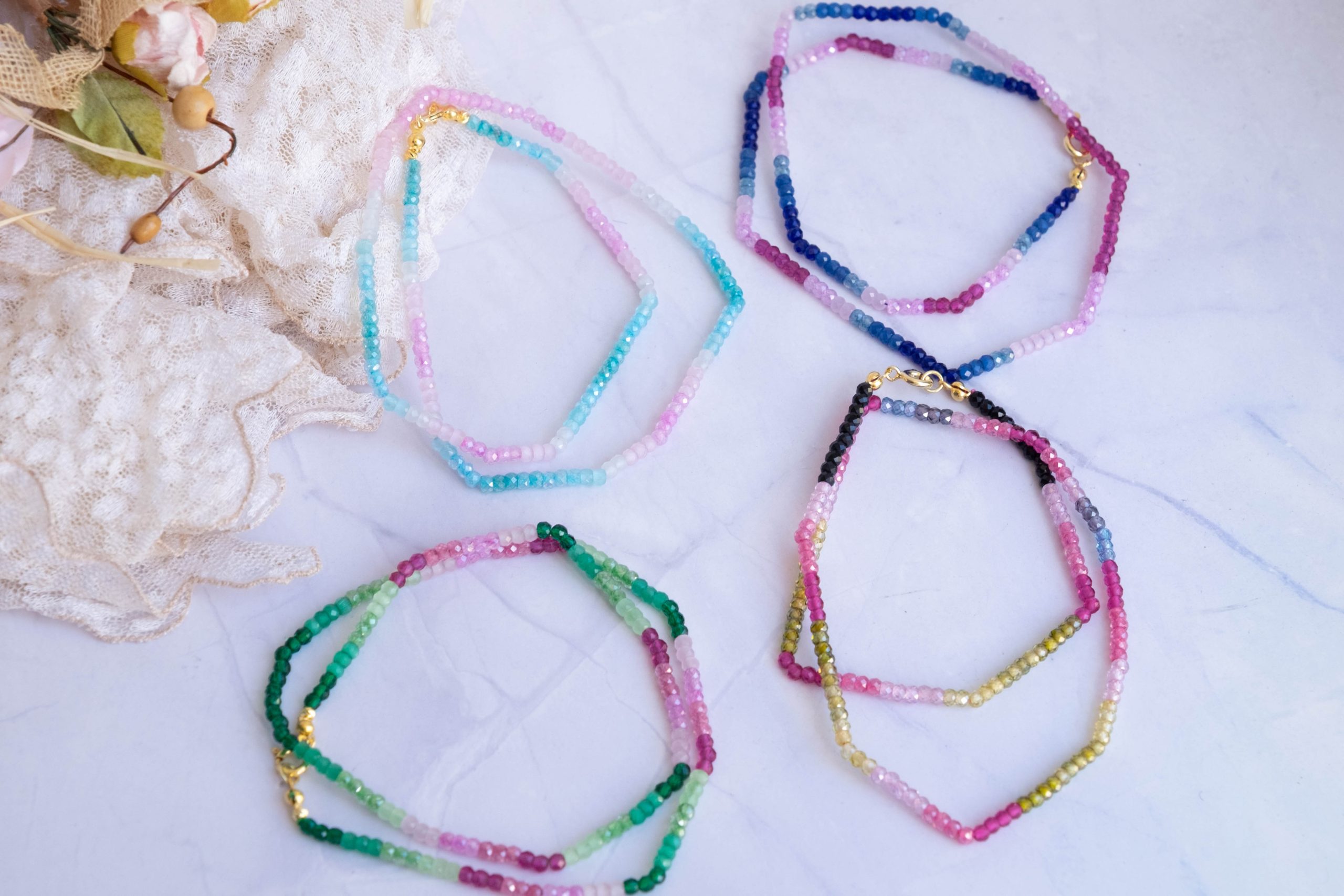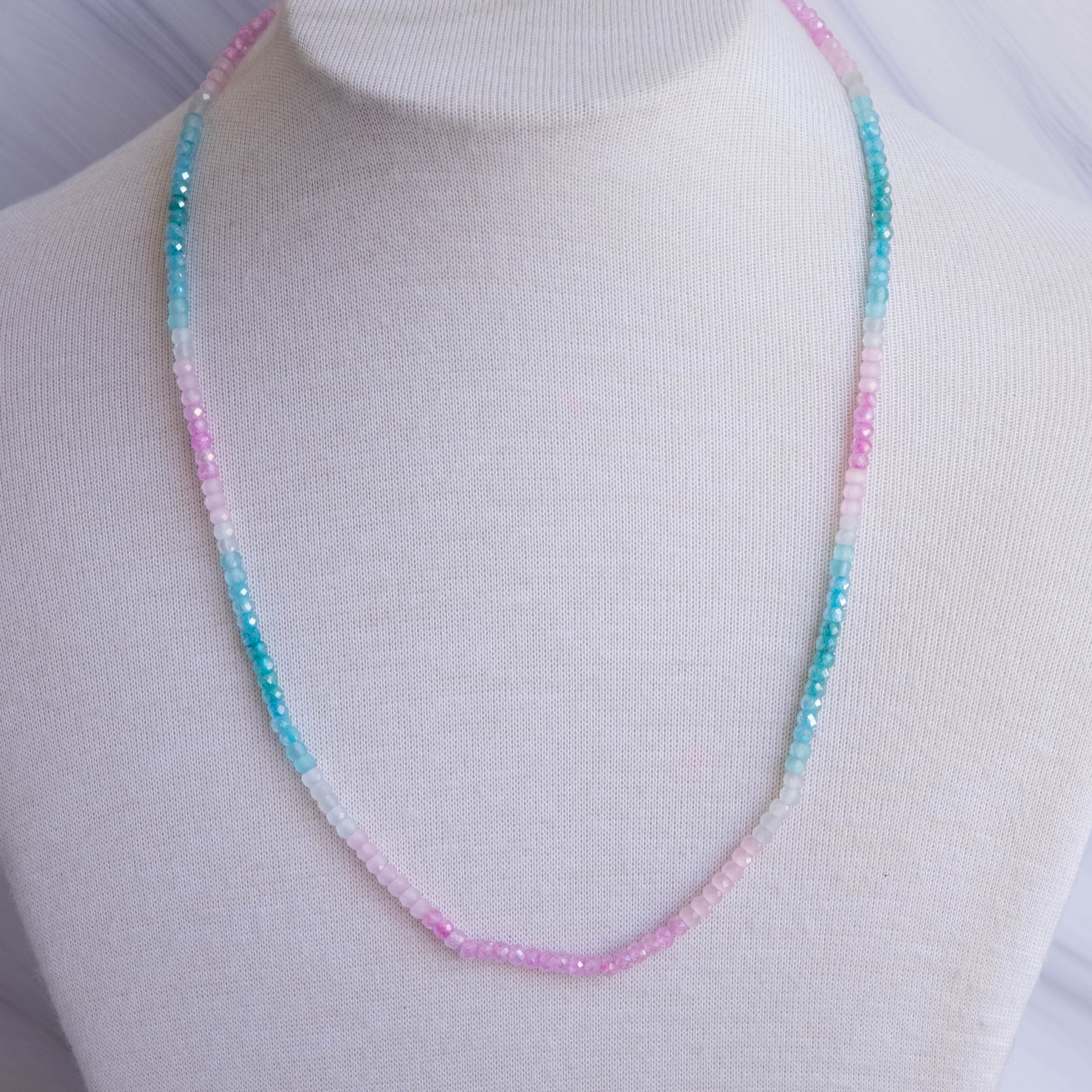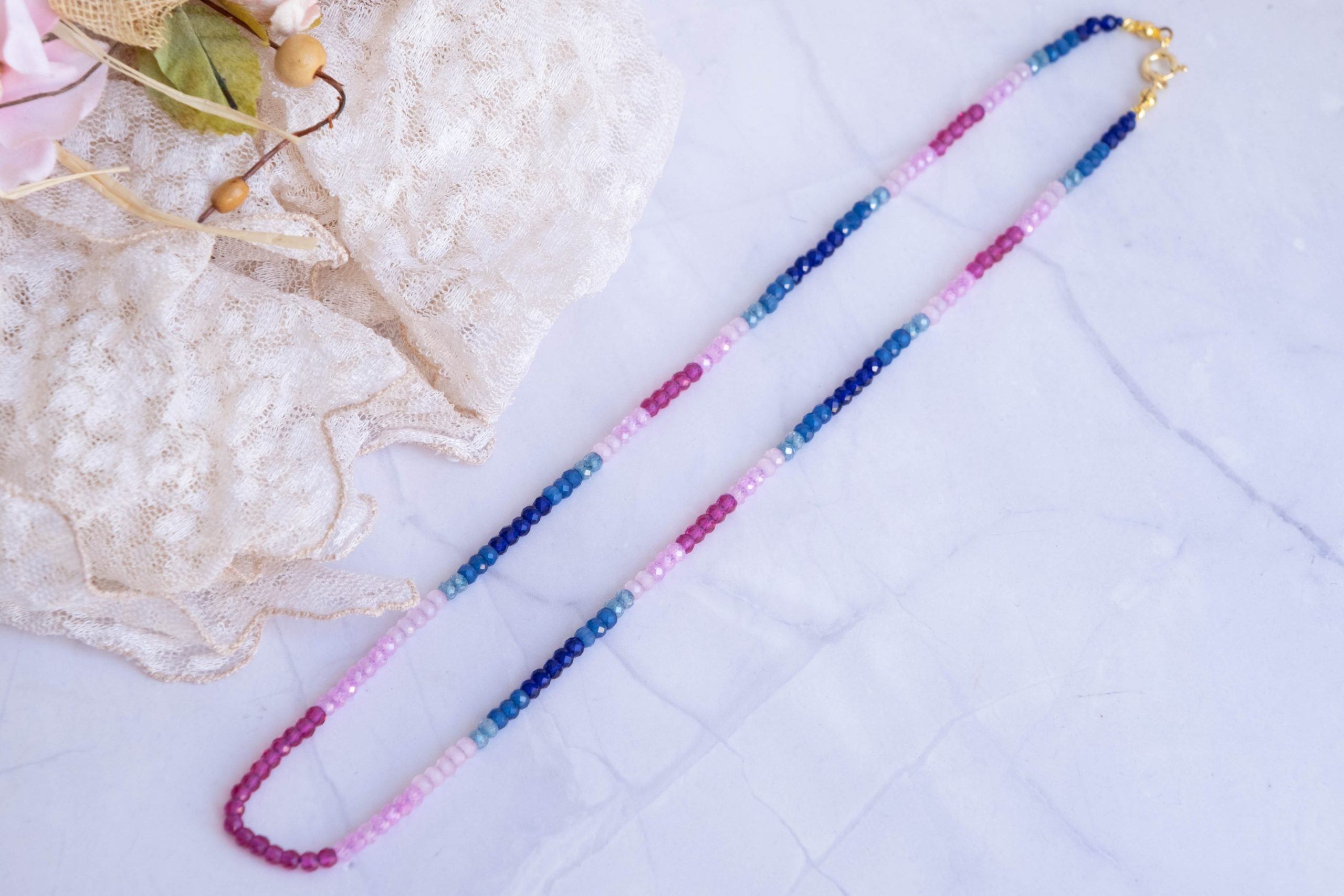 Luminosa collana, fatta interamente a mano, con zirconi naturali sfaccettati di varie sfumature naturali