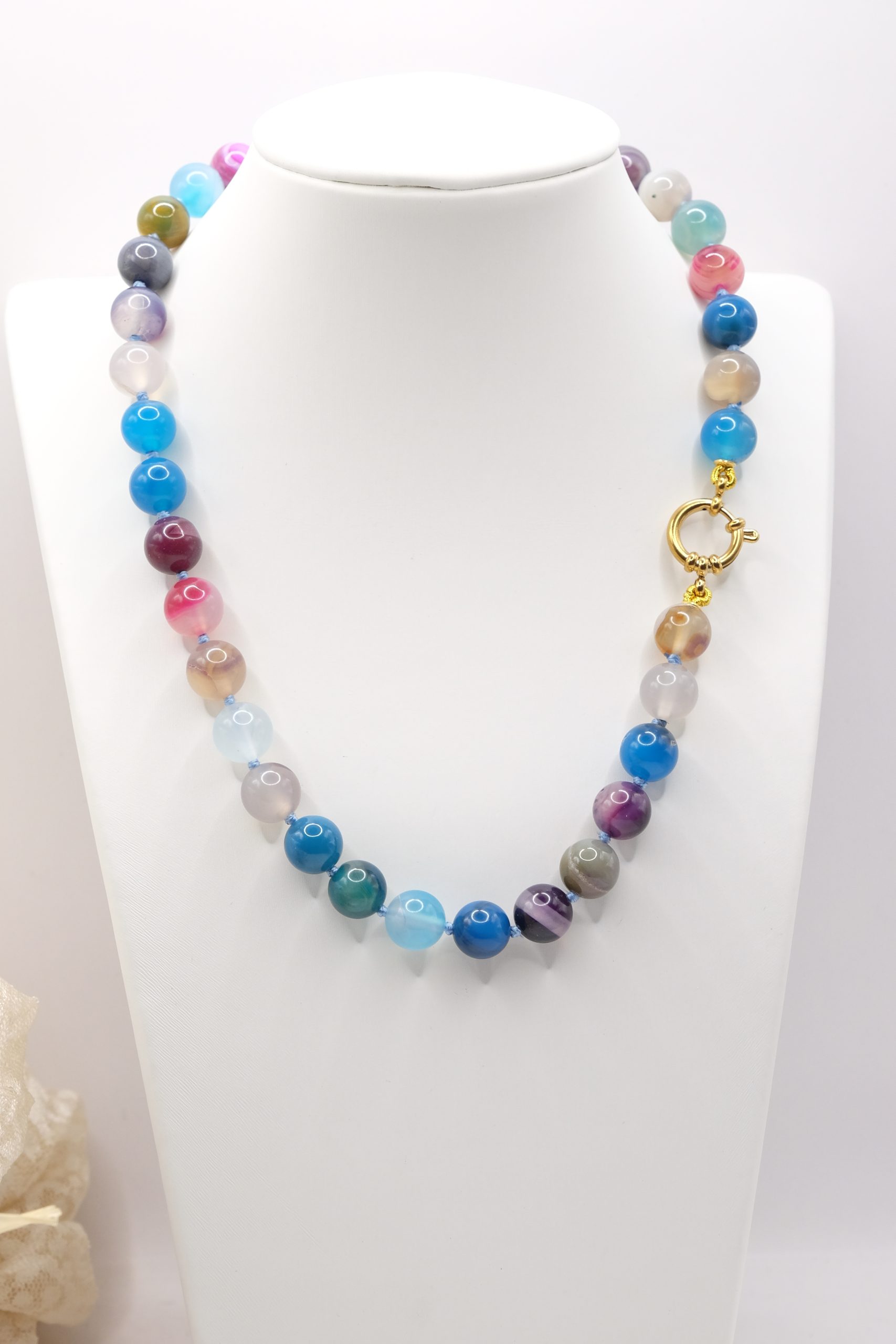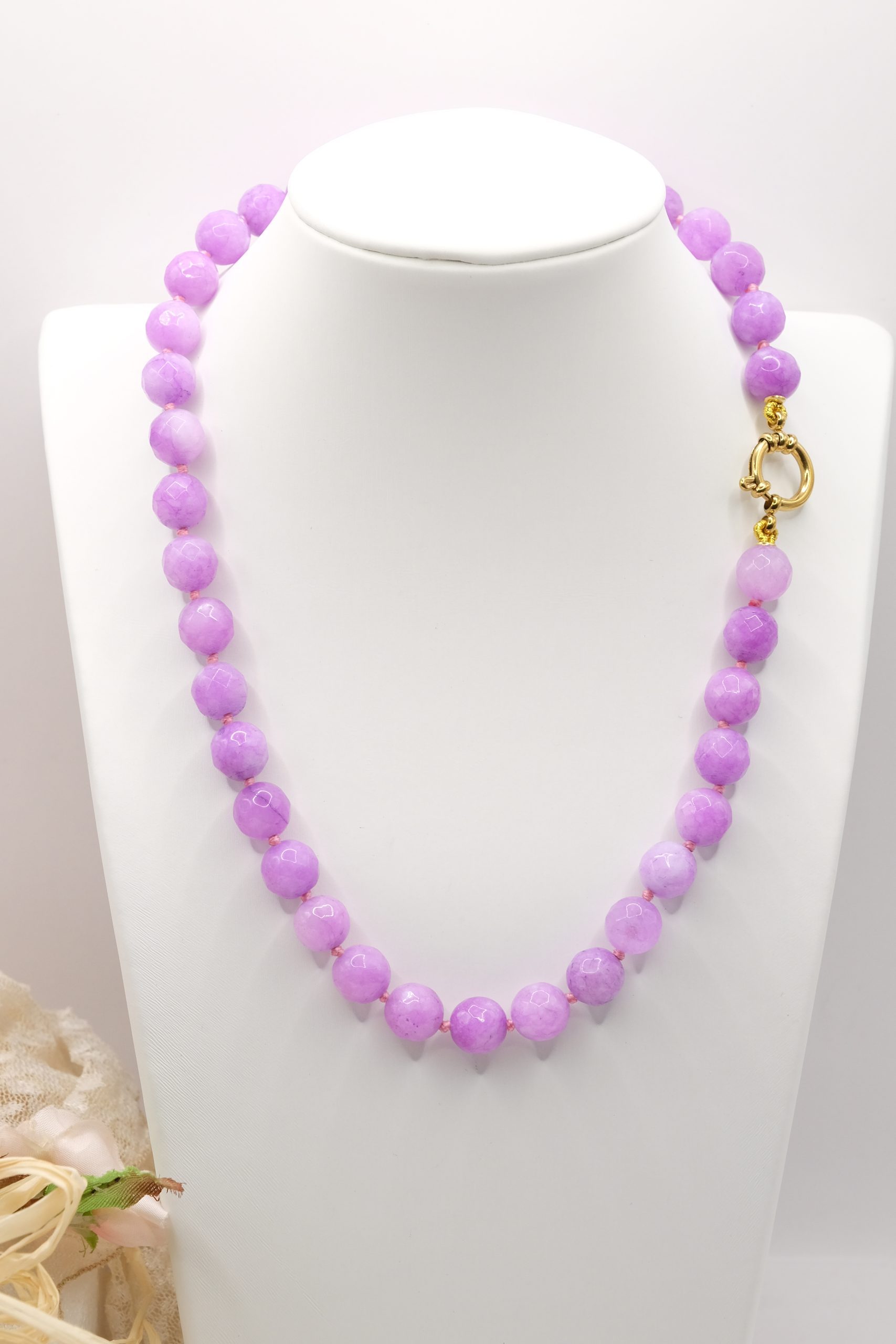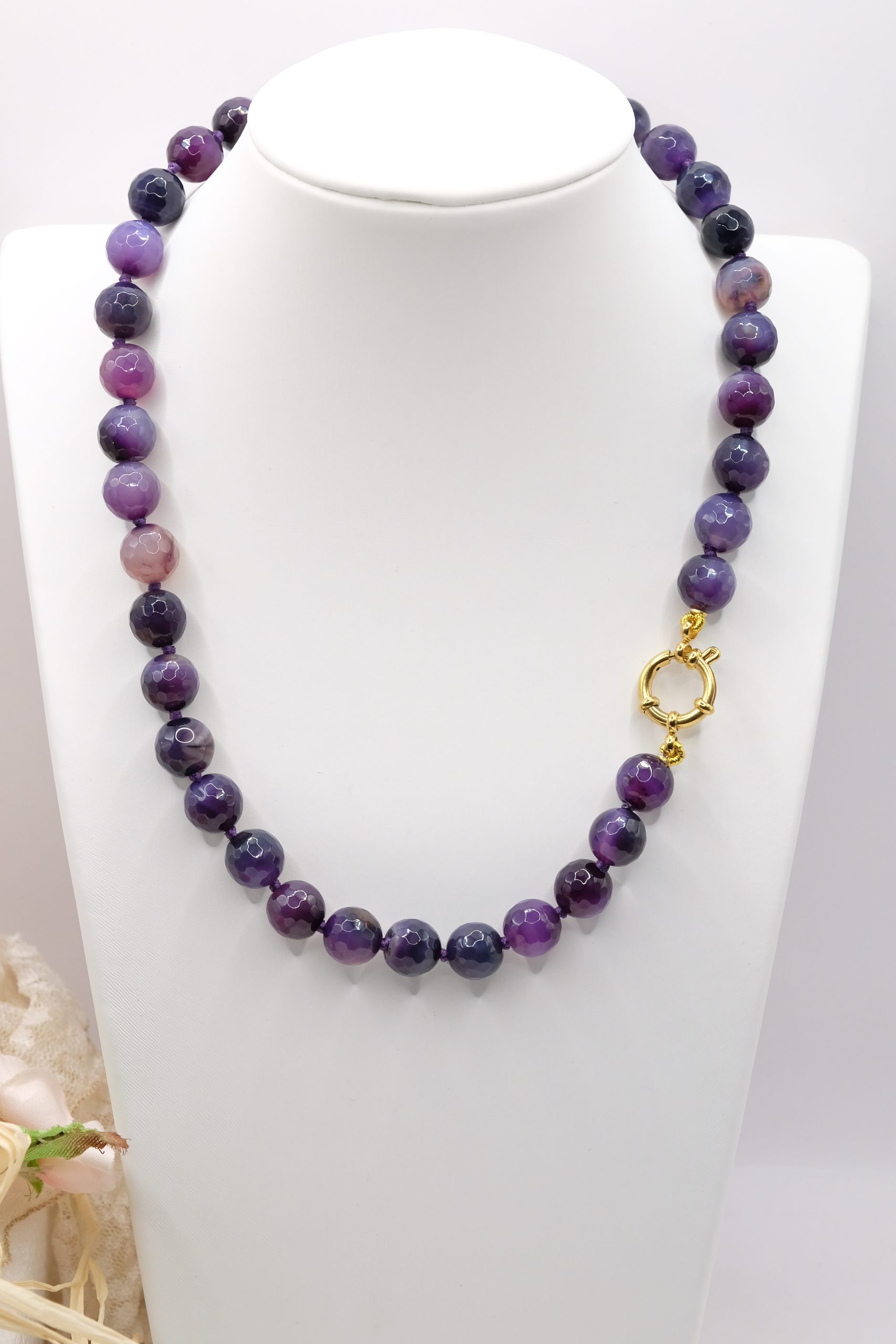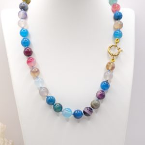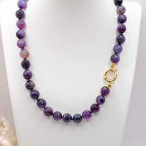Collana artigianale girocollo in pietre naturali Apatite liscia o kunzite agata multicolore o ametista sfaccettate da 10 mm