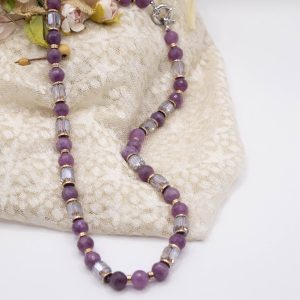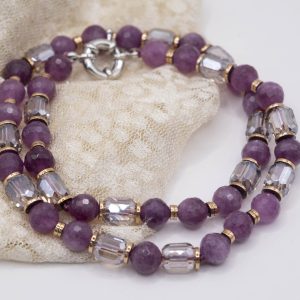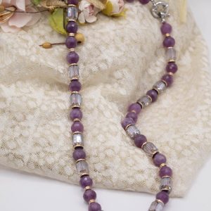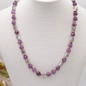 Collana Girocollo Cristalli e Giada Malva