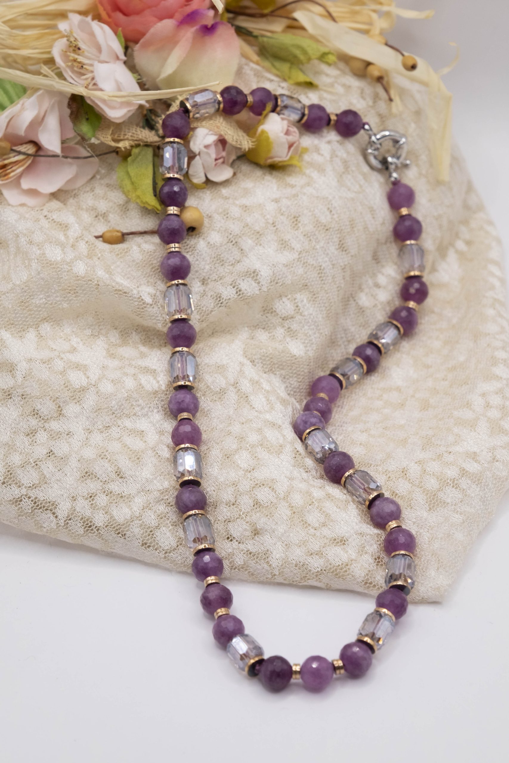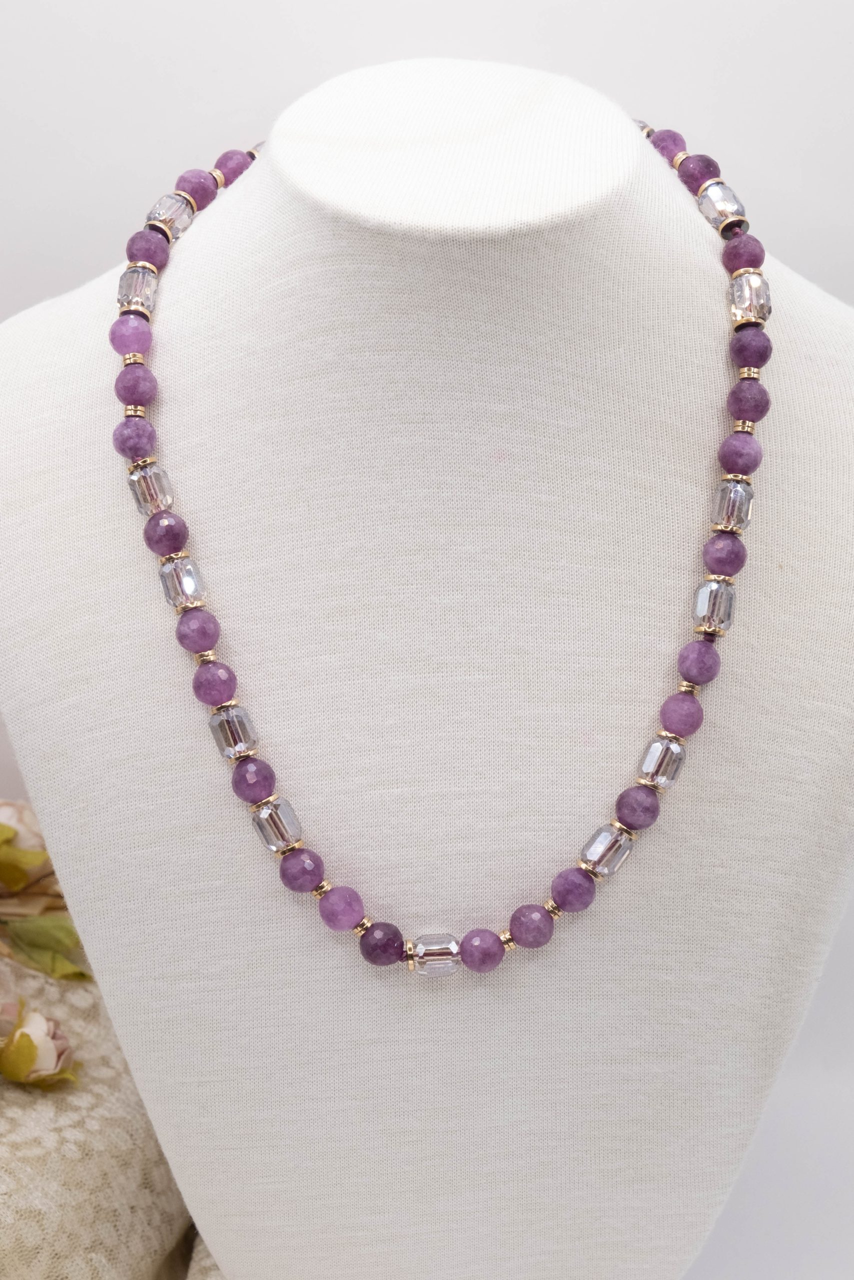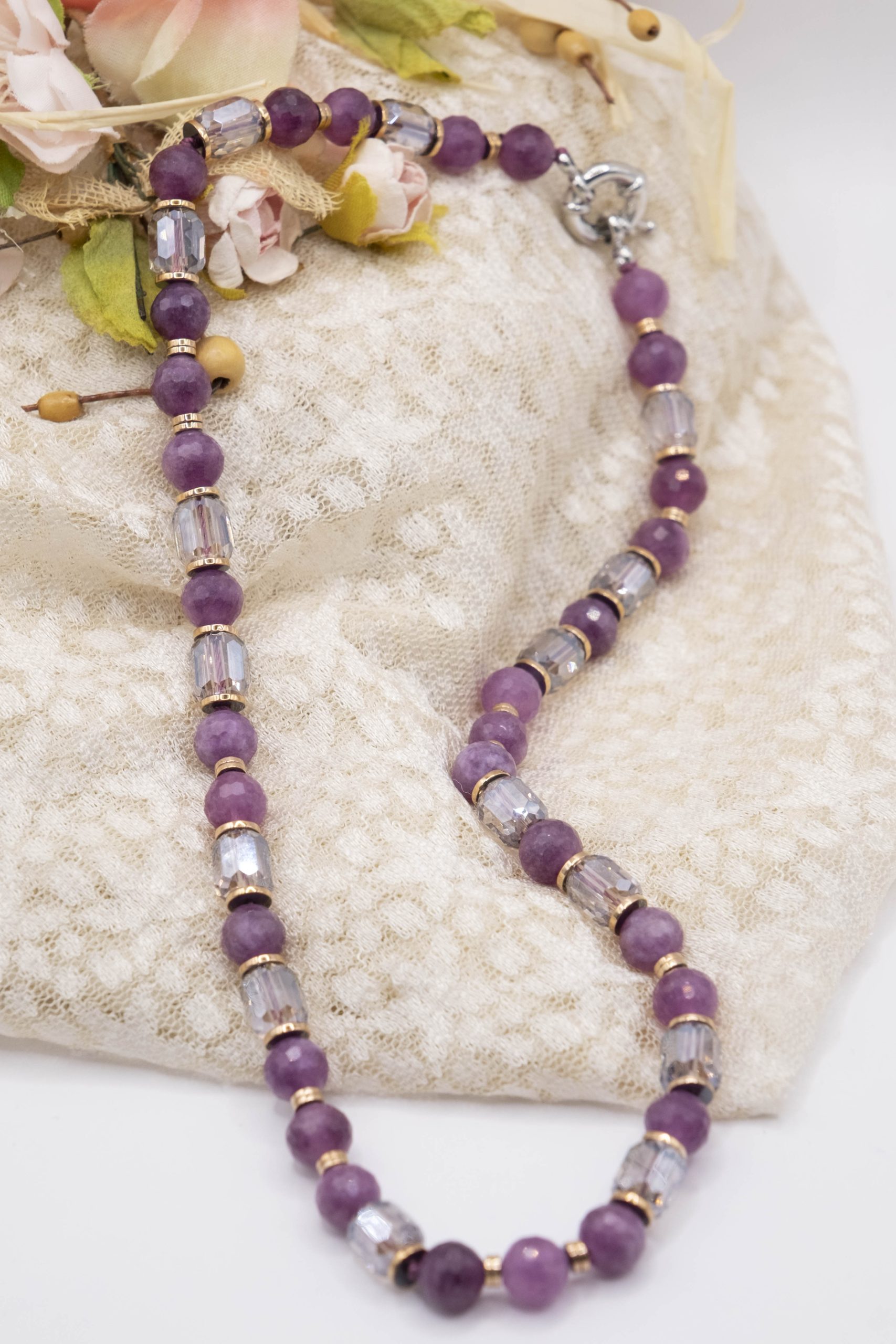 ✅ Materiali: Giada naturale malva e cristalli trasparenti