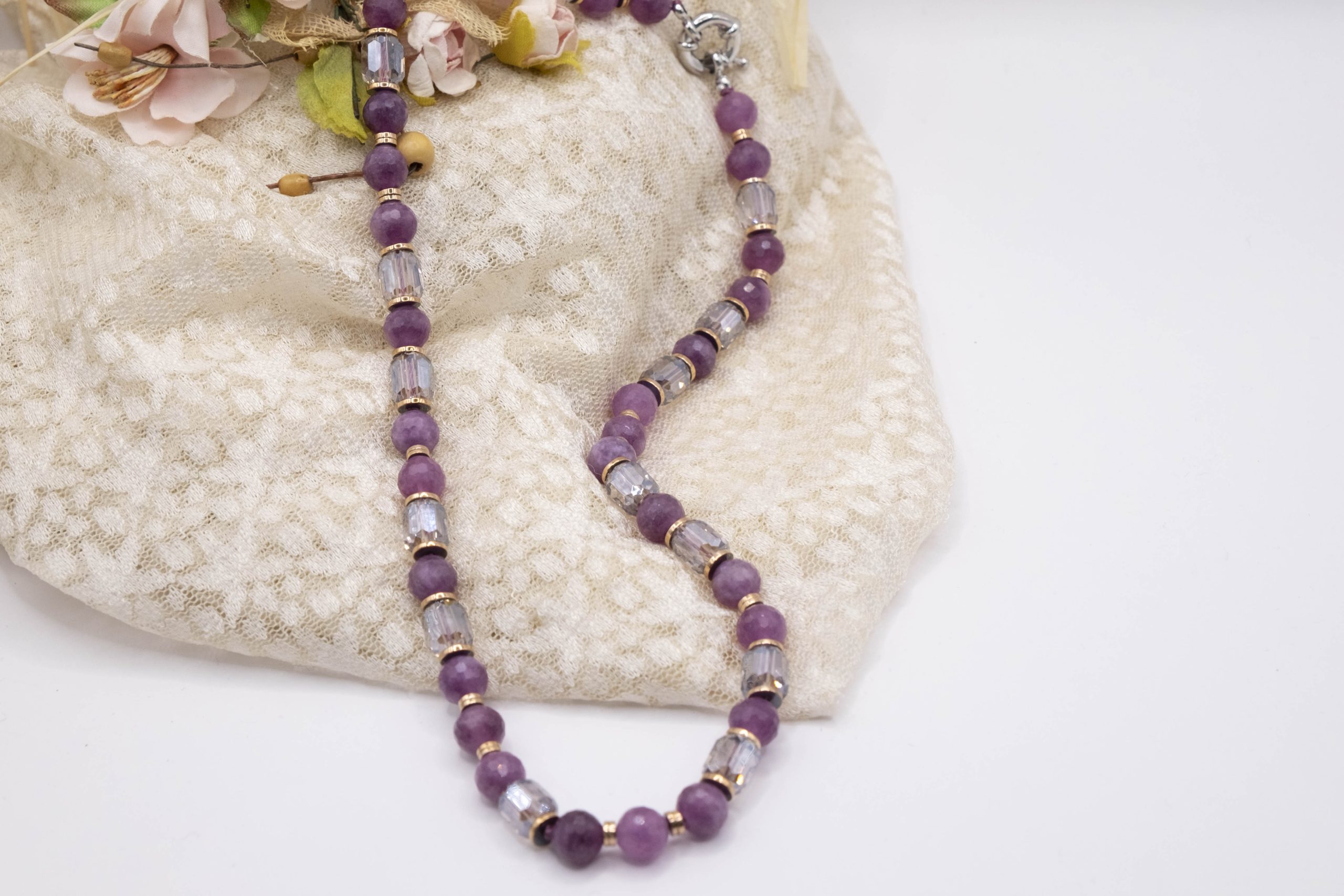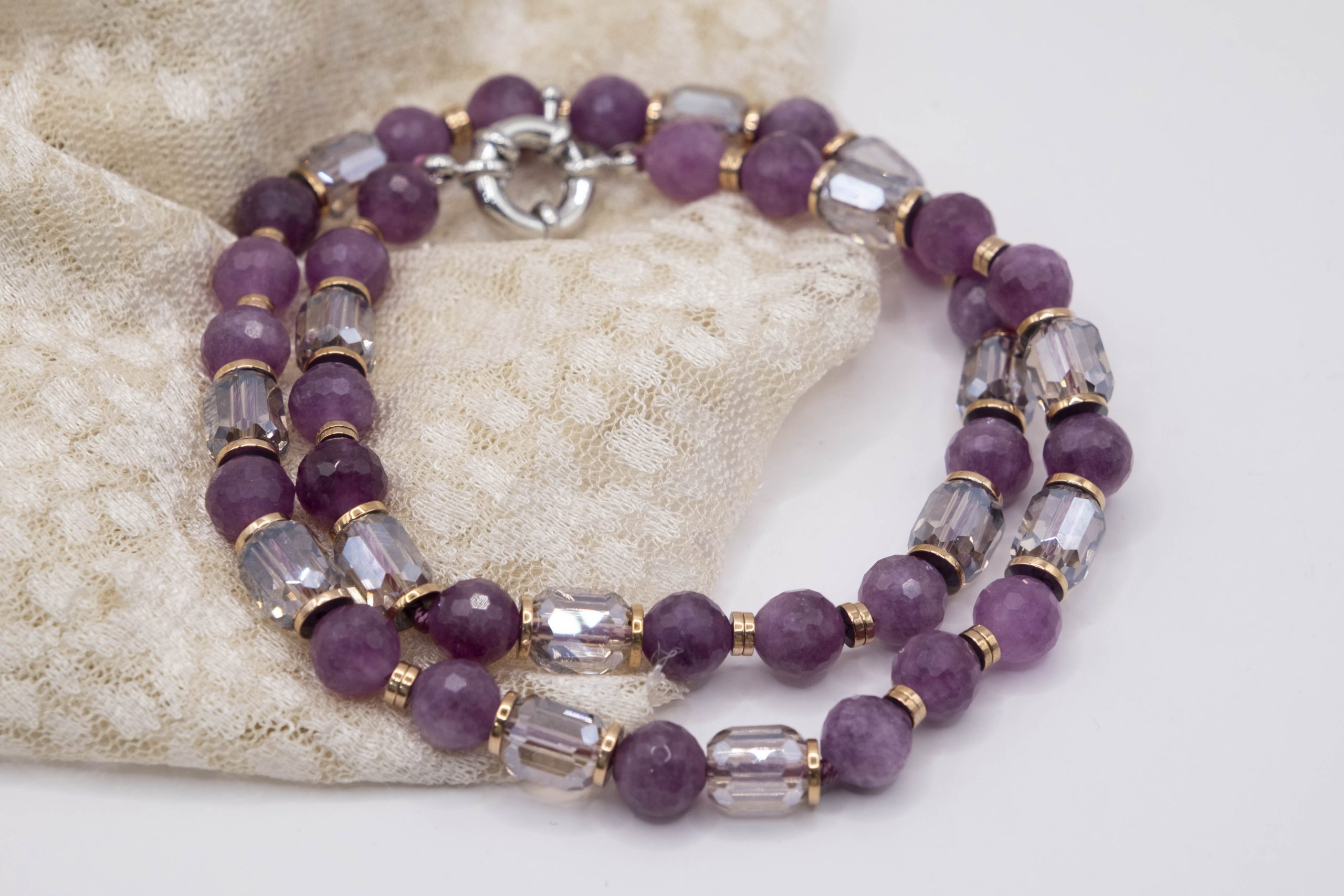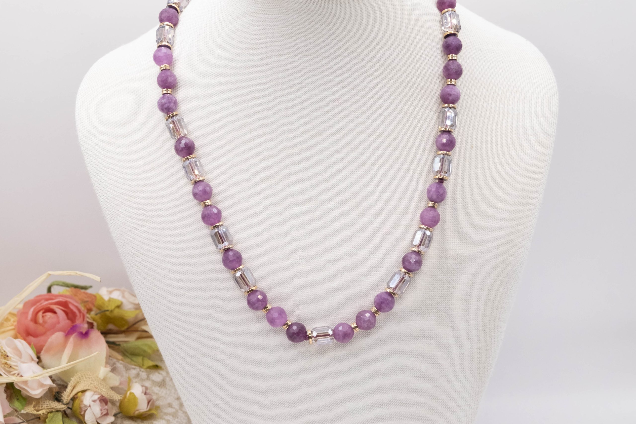 ✅ Materiali: Giada naturale malva e cristalli trasparenti