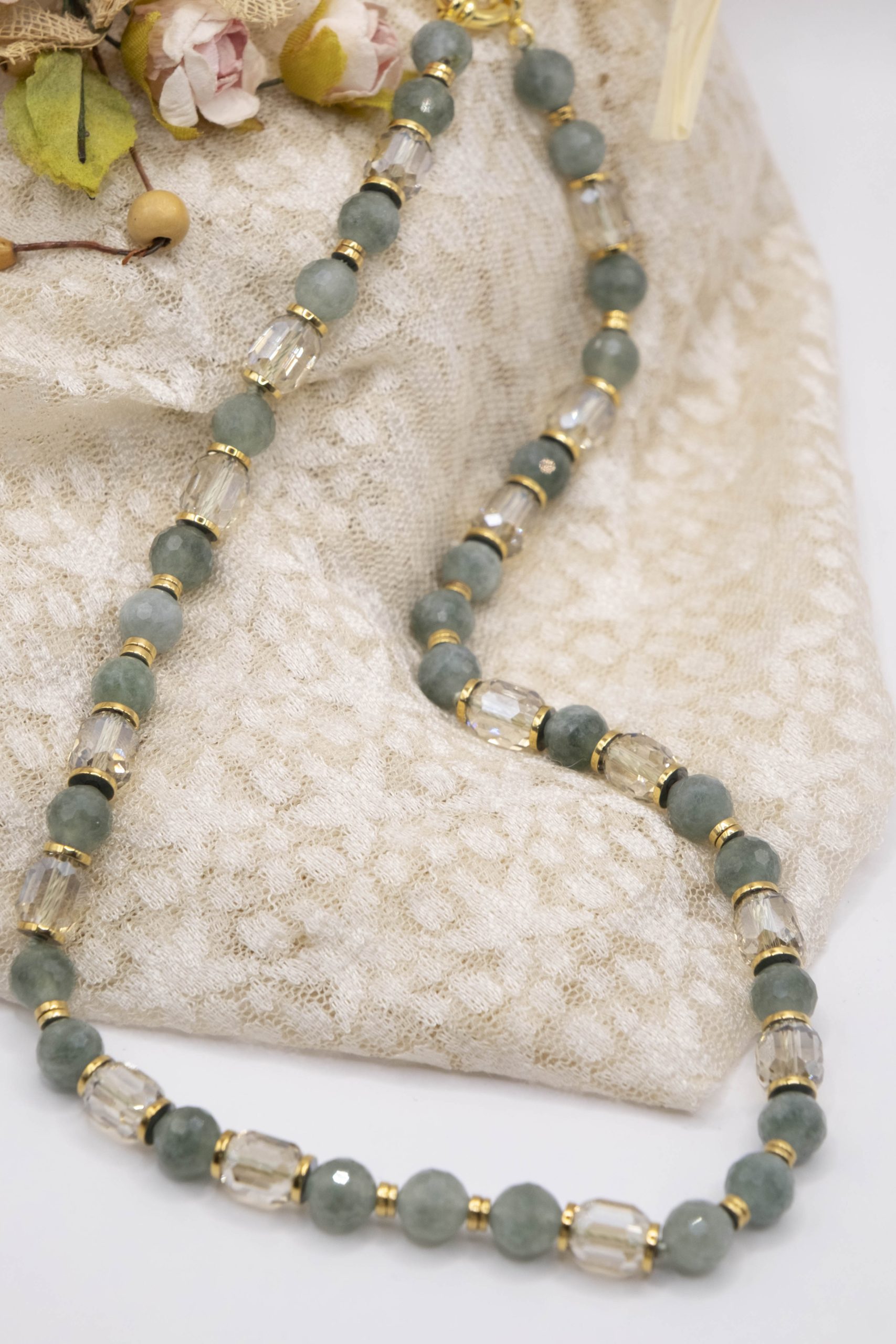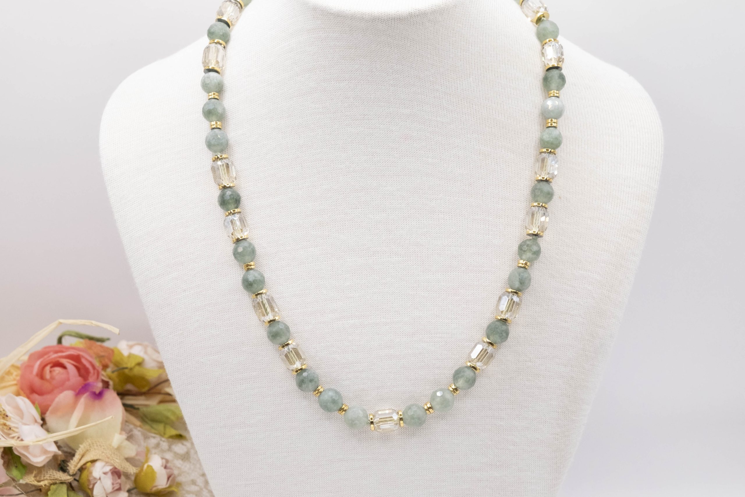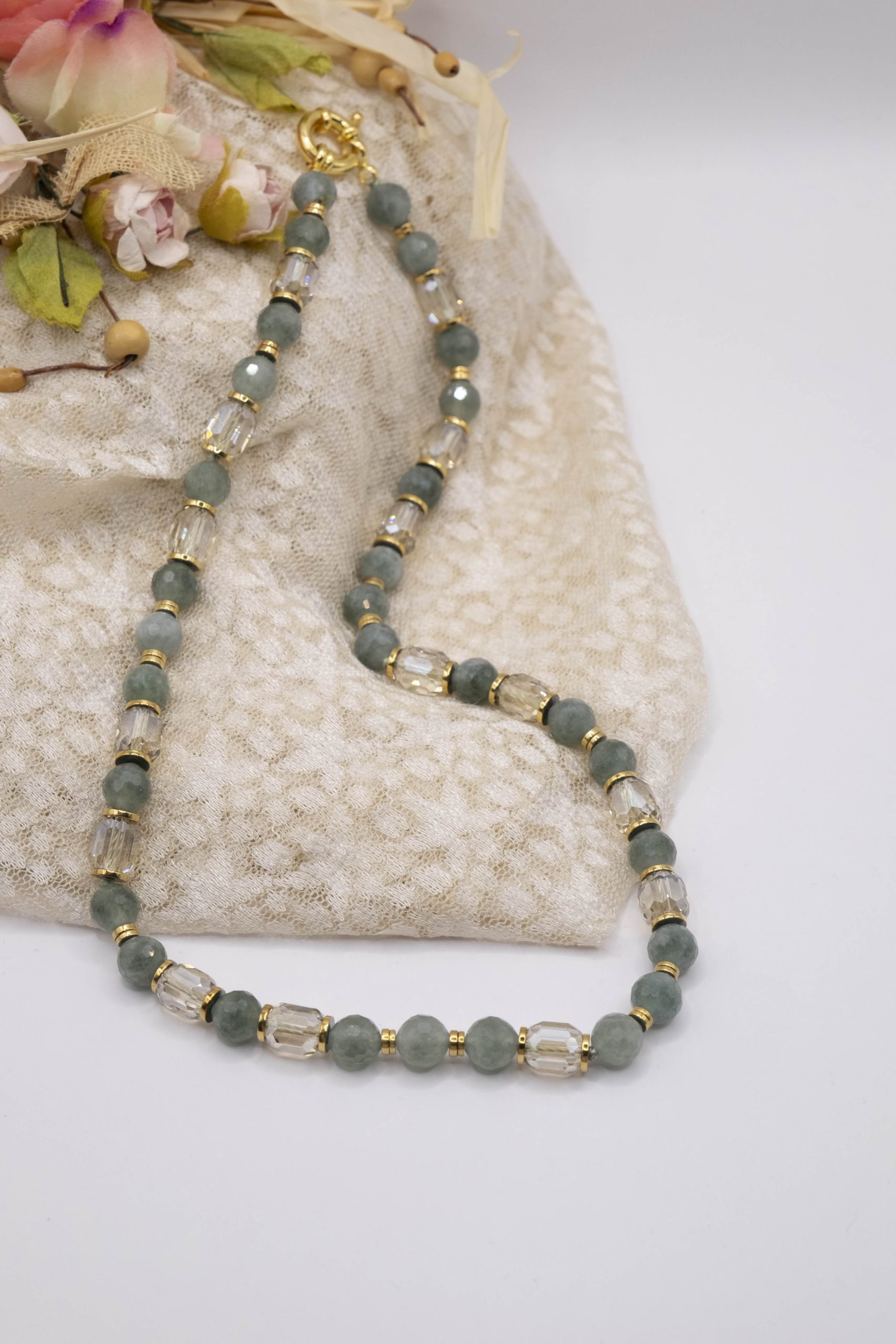 Collana Girocollo Cristalli e Giada Verde Salvia