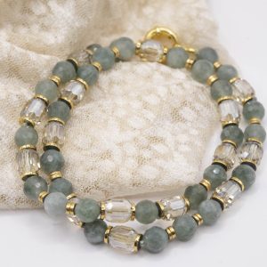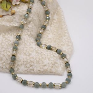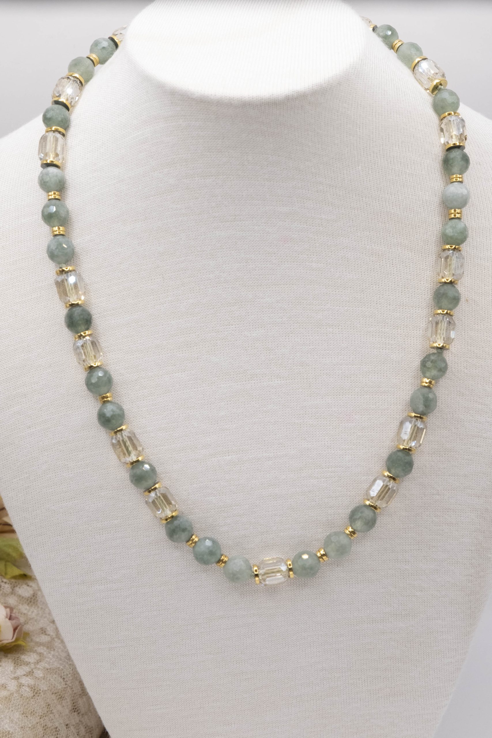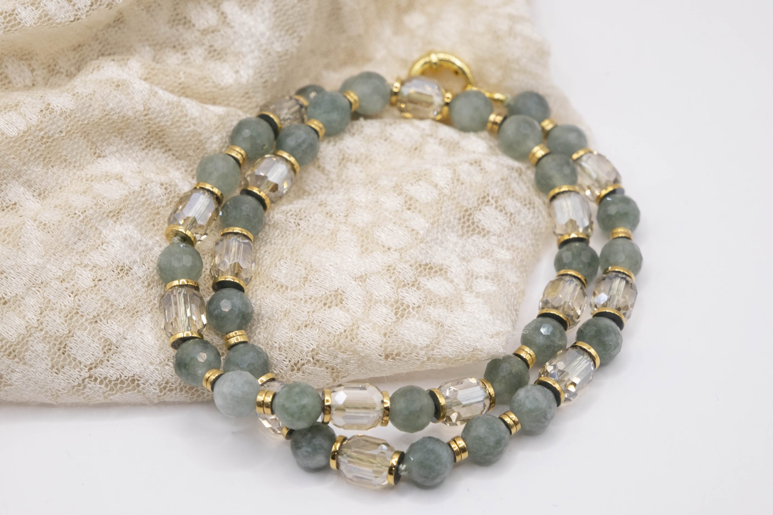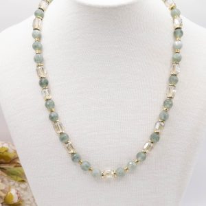 Collana Girocollo Cristalli e Giada Verde Salvia