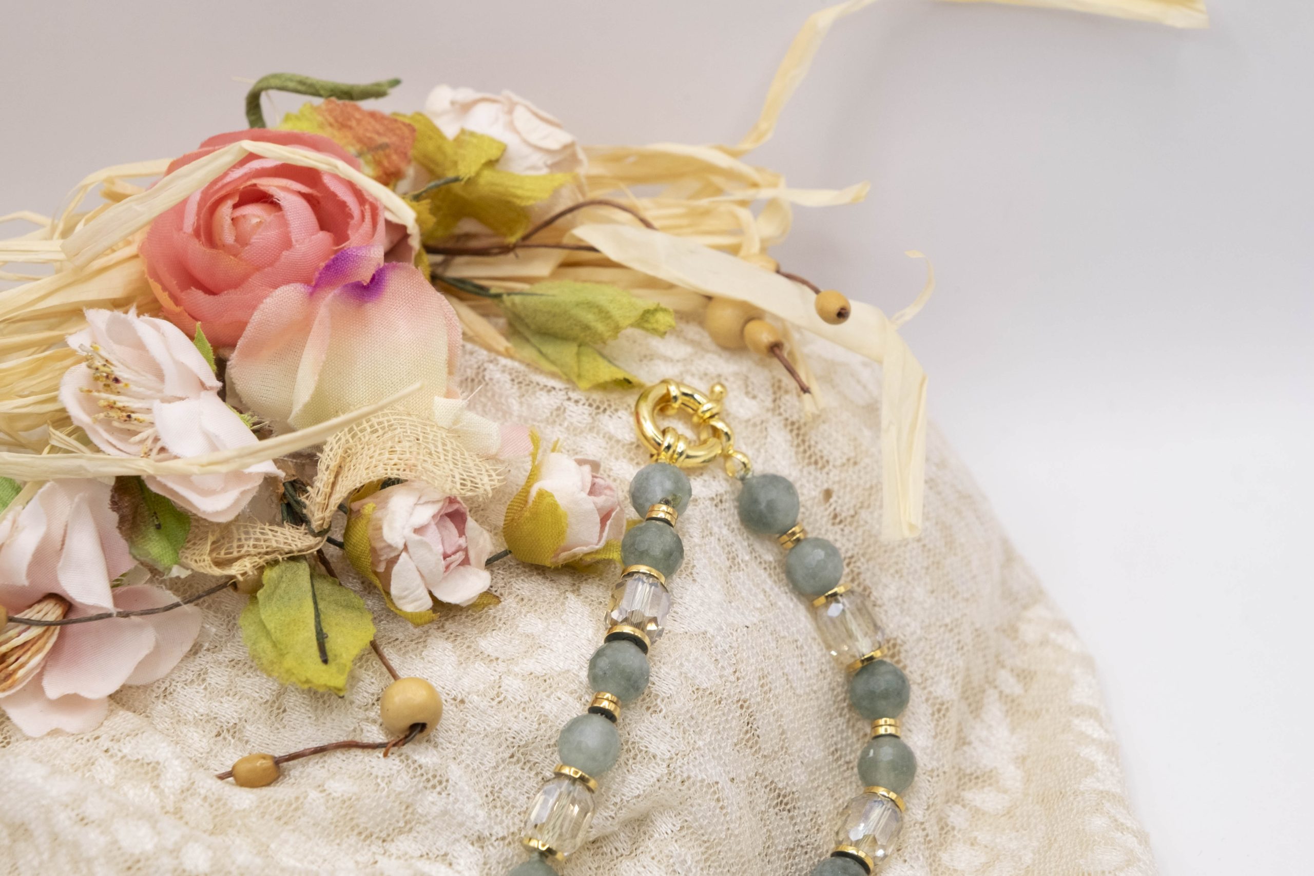 ✅ Materiali: Giada verde salvia e cristalli trasparenti
