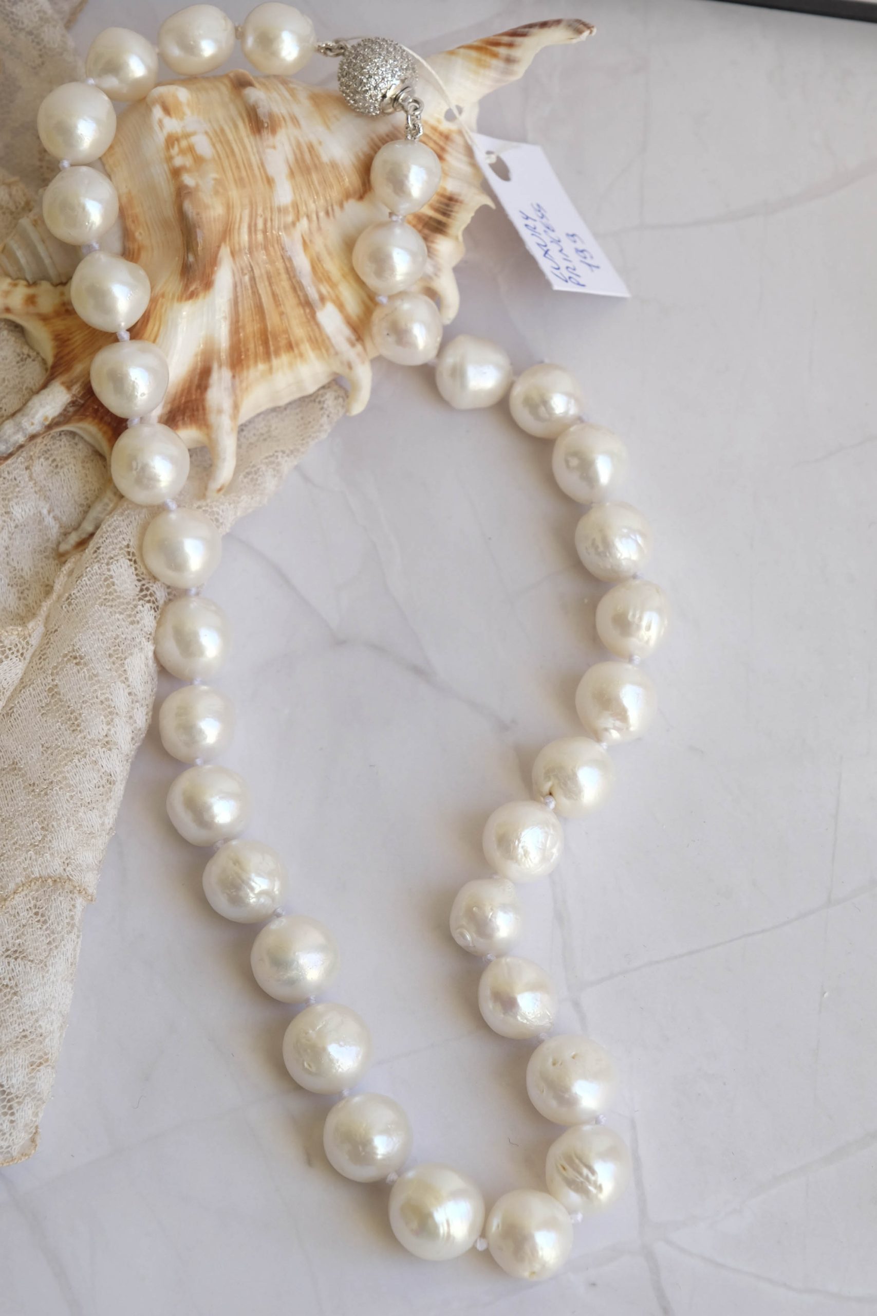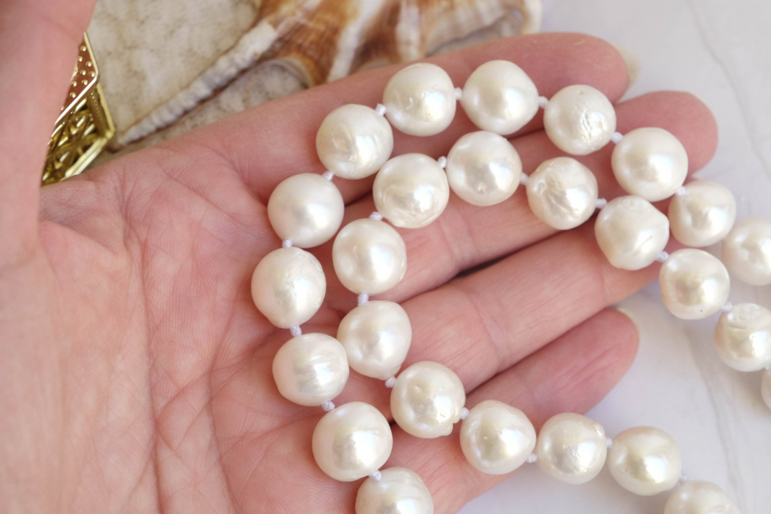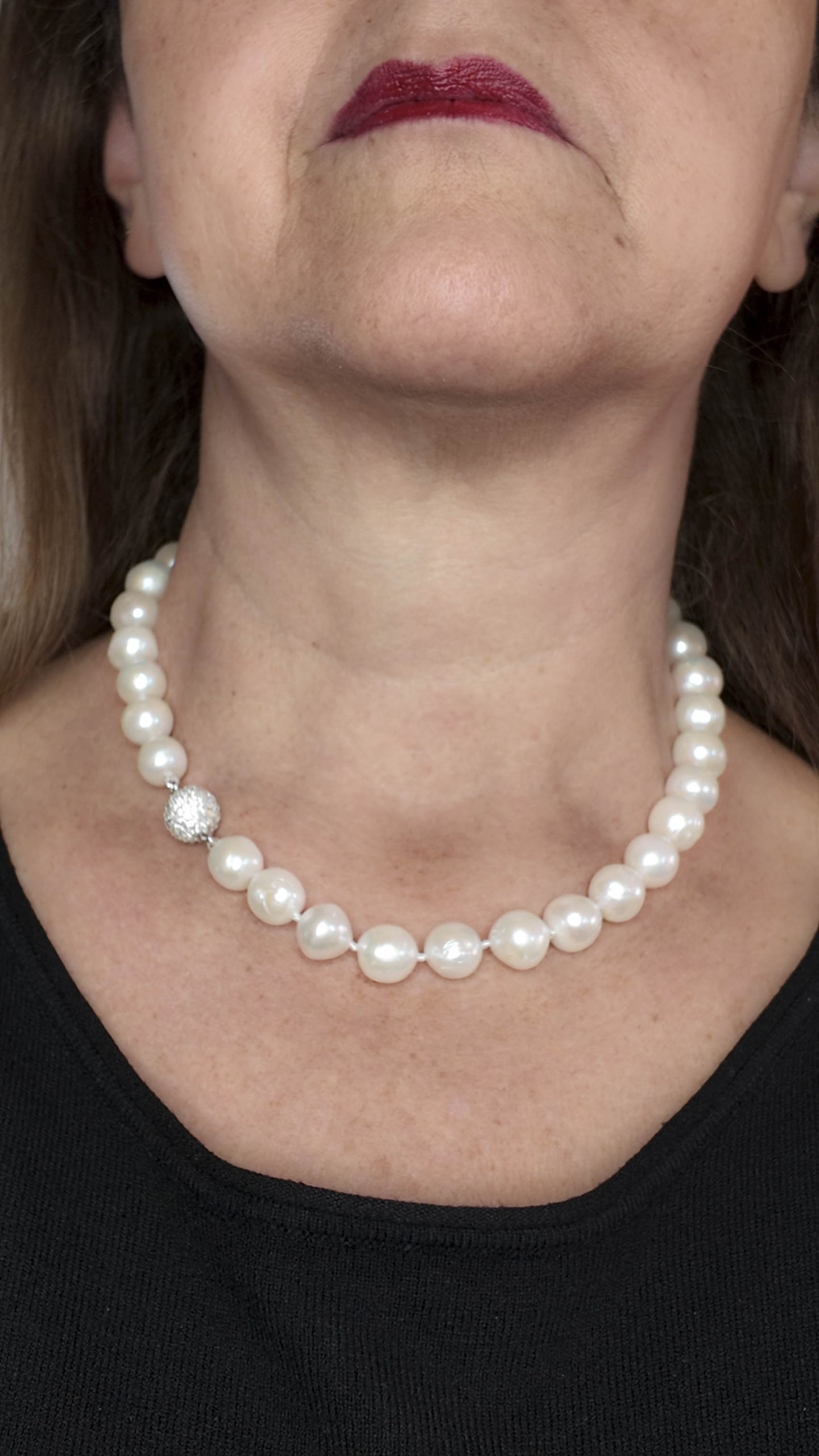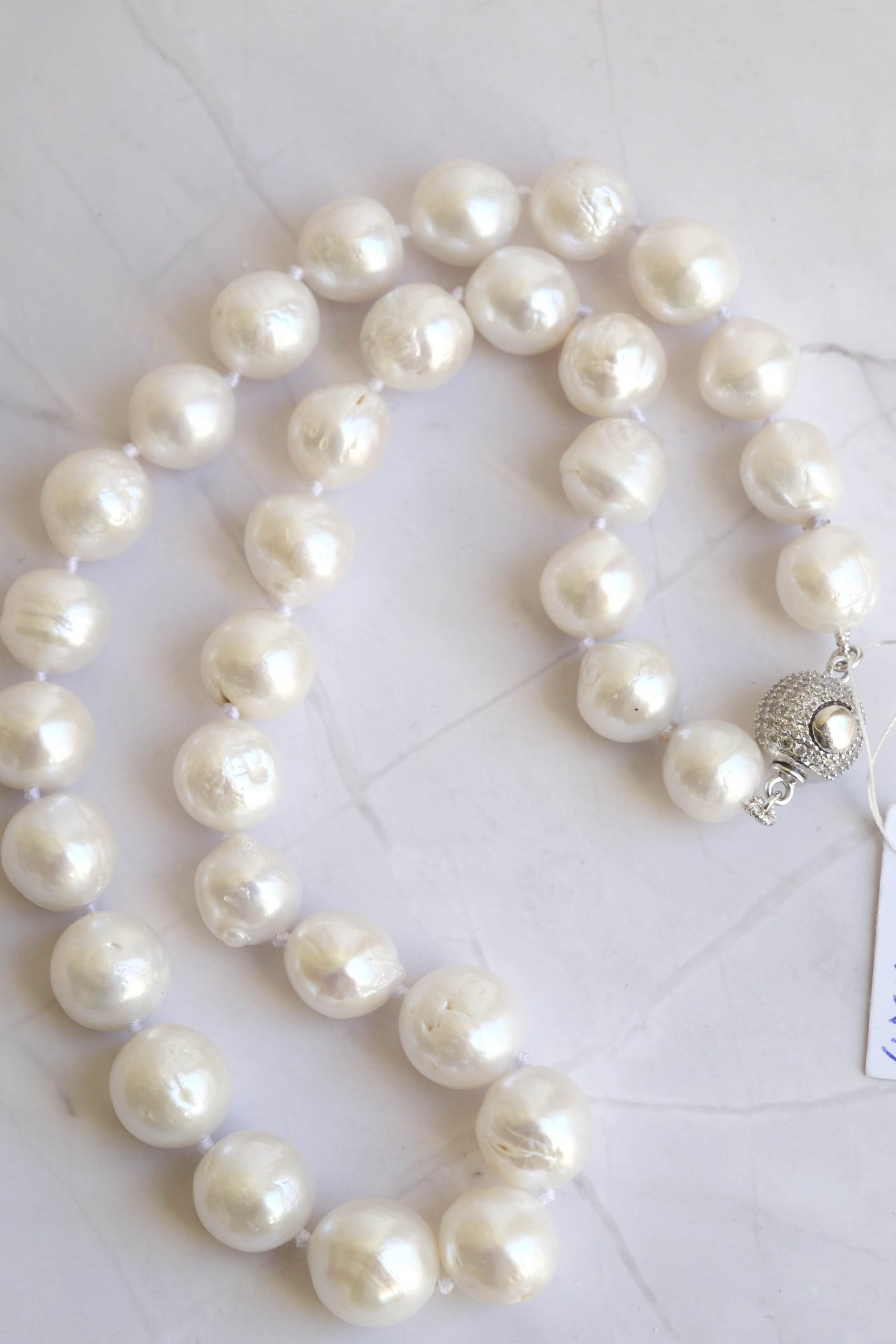 Collana filo di perle da 12 mm circa, bianche e luminose.