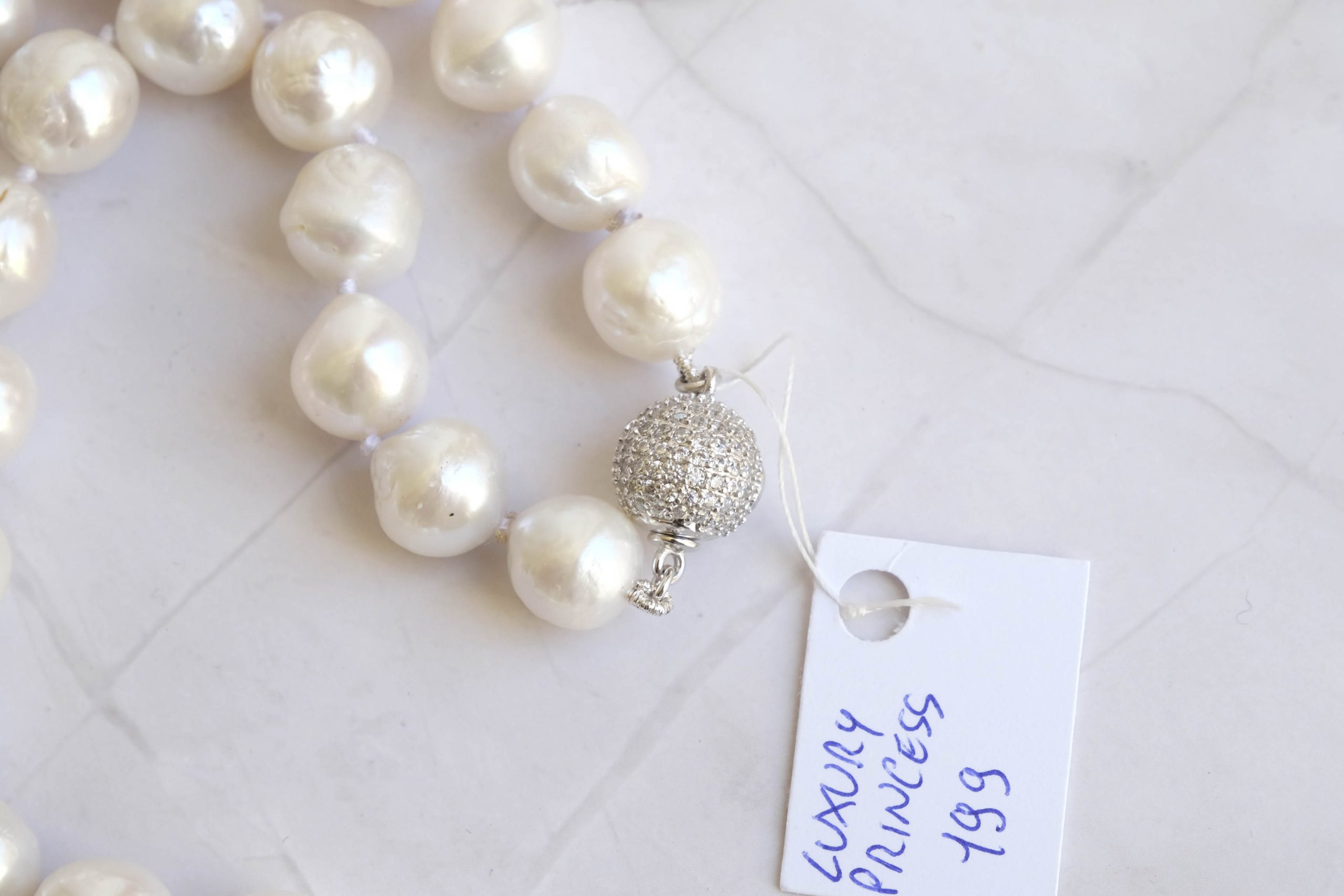Collana girocollo di perle con chiusura argento e zirconi