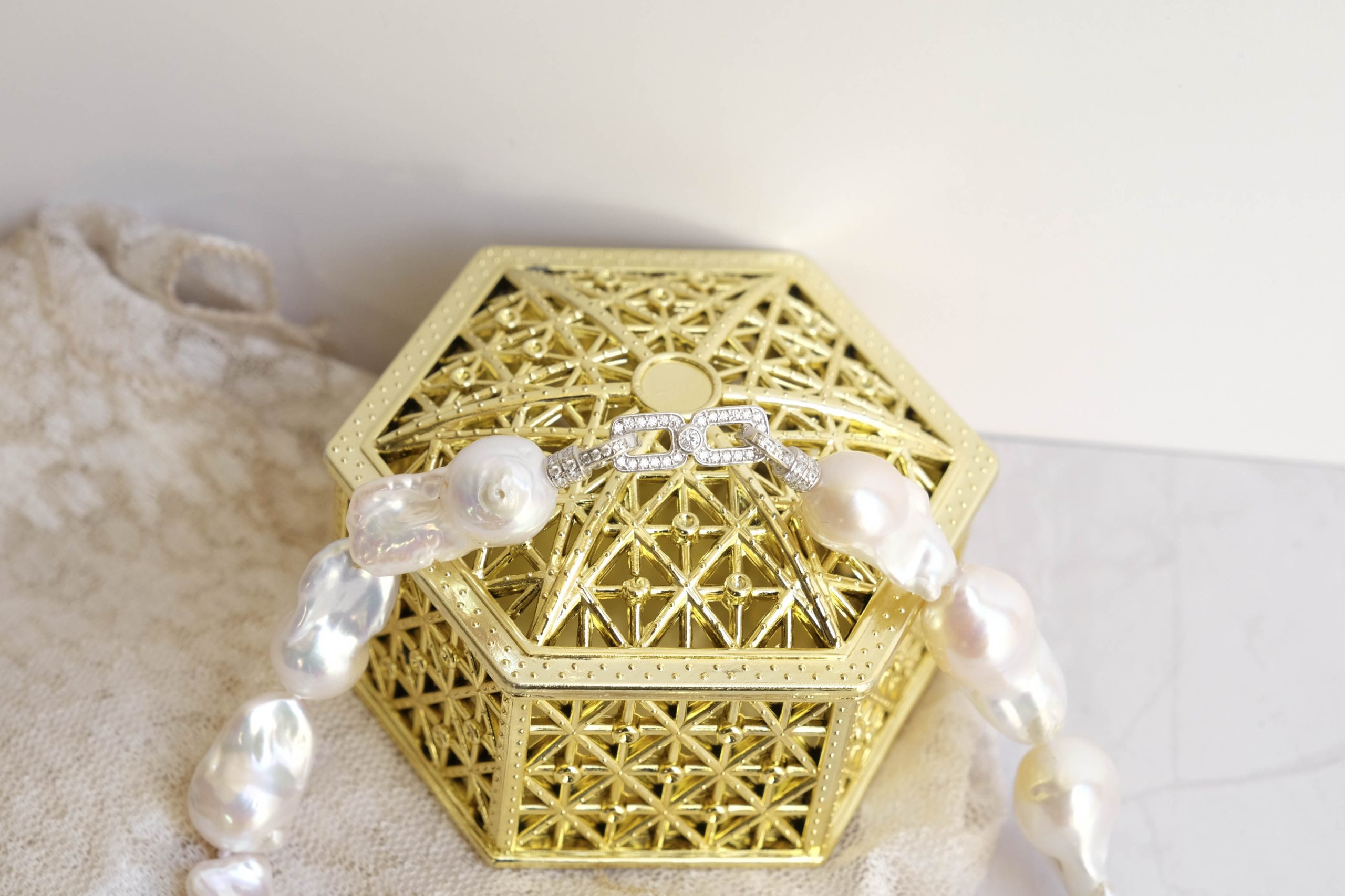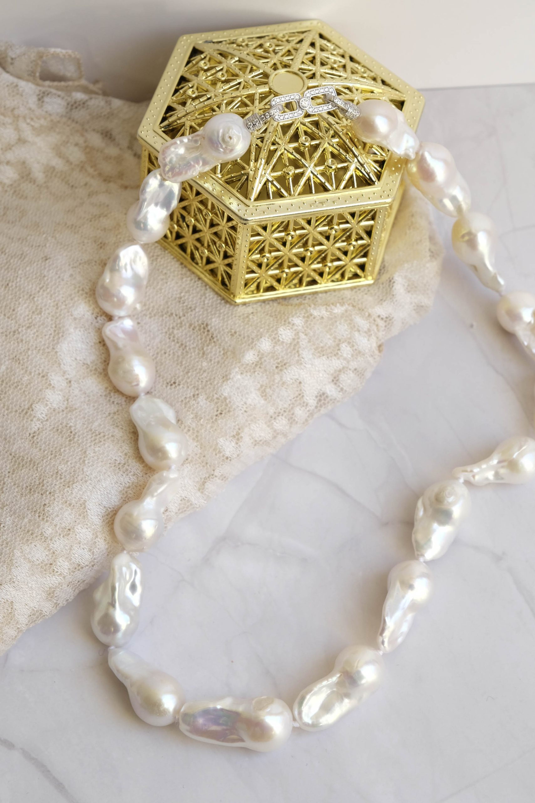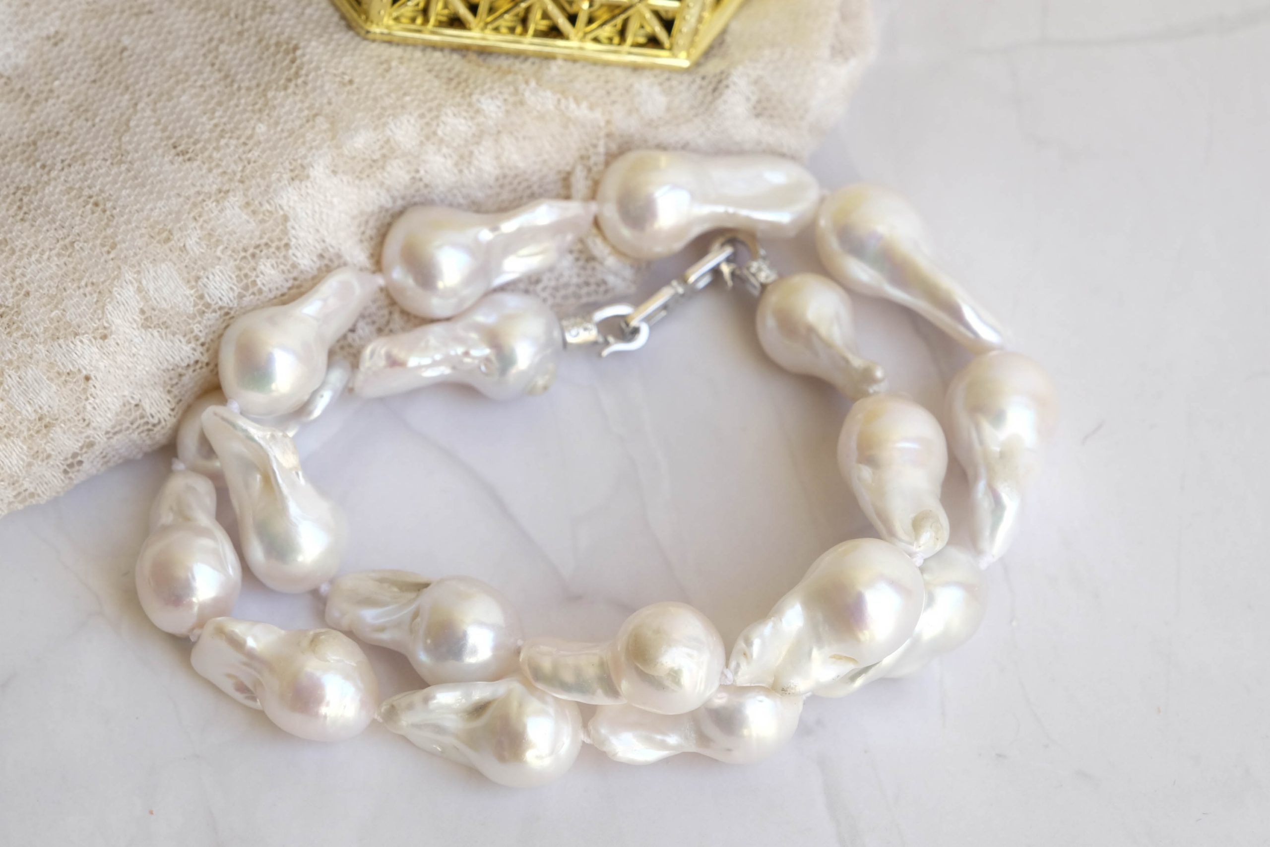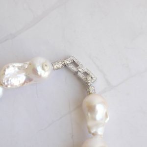 Collana di grandi perle naturali barocche (da 20 x 10 mm circa) bianche e luminose.