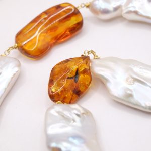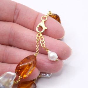 Materiale: Perle Naturali, Ambra del Baltico, Argento 925 placcato oro