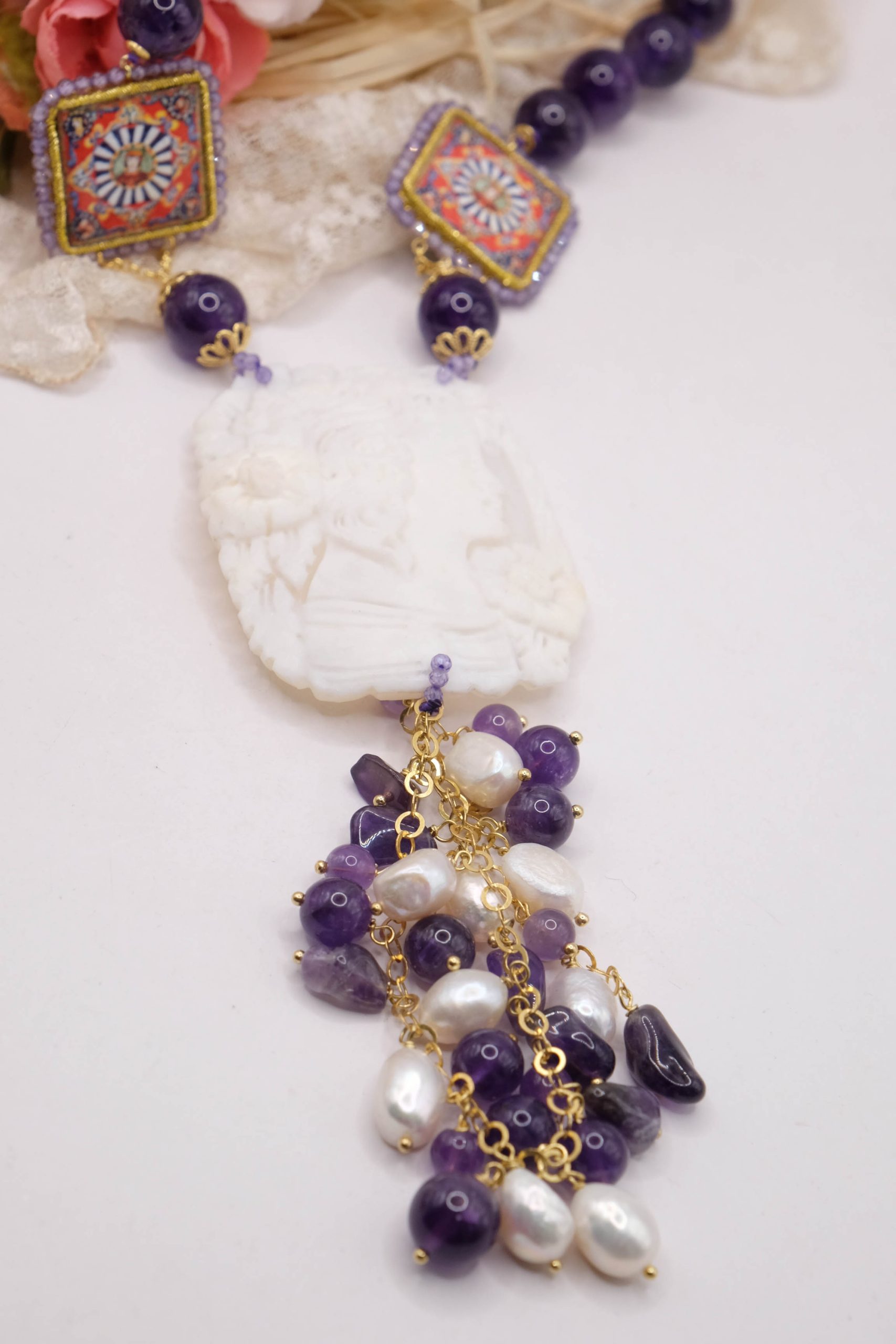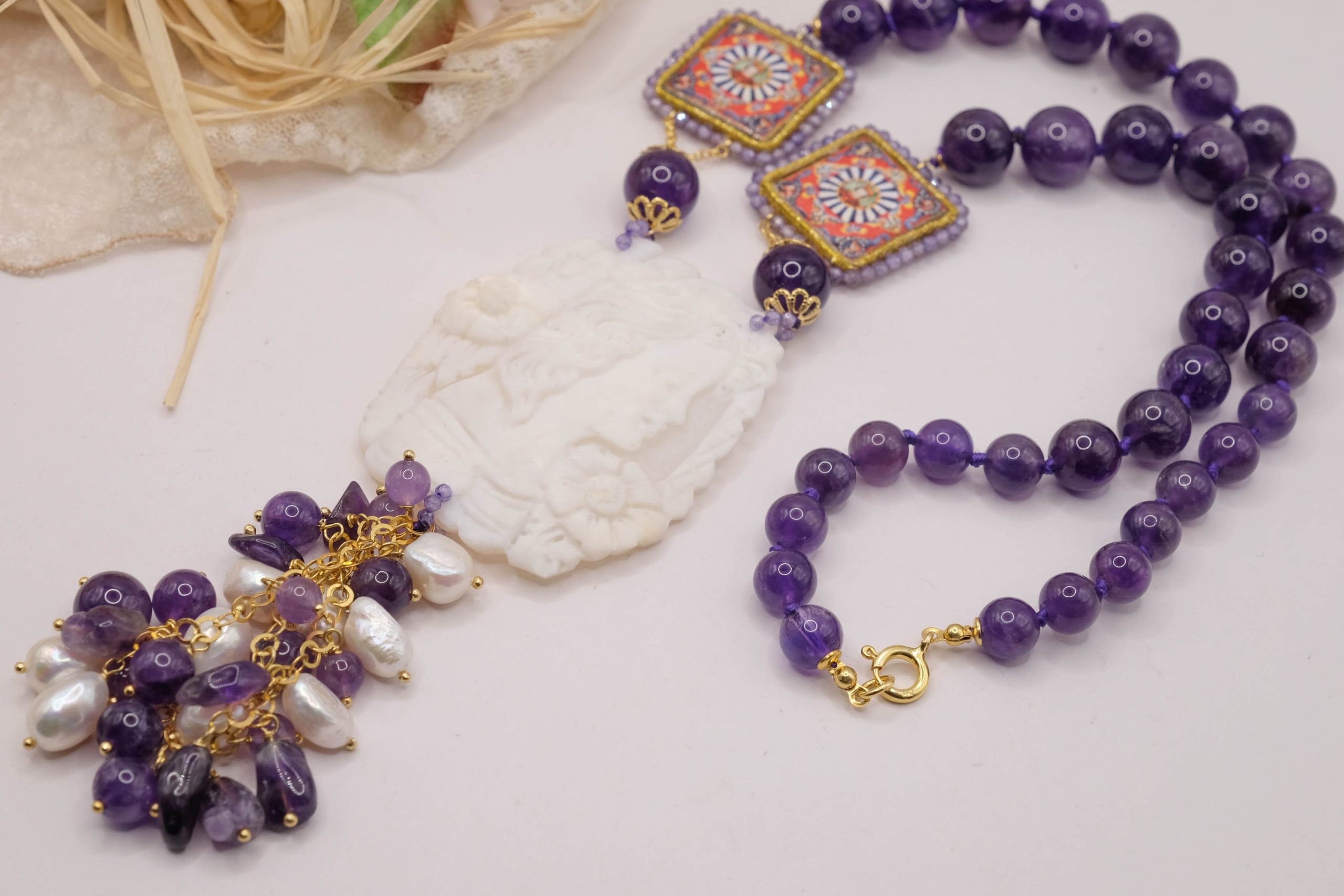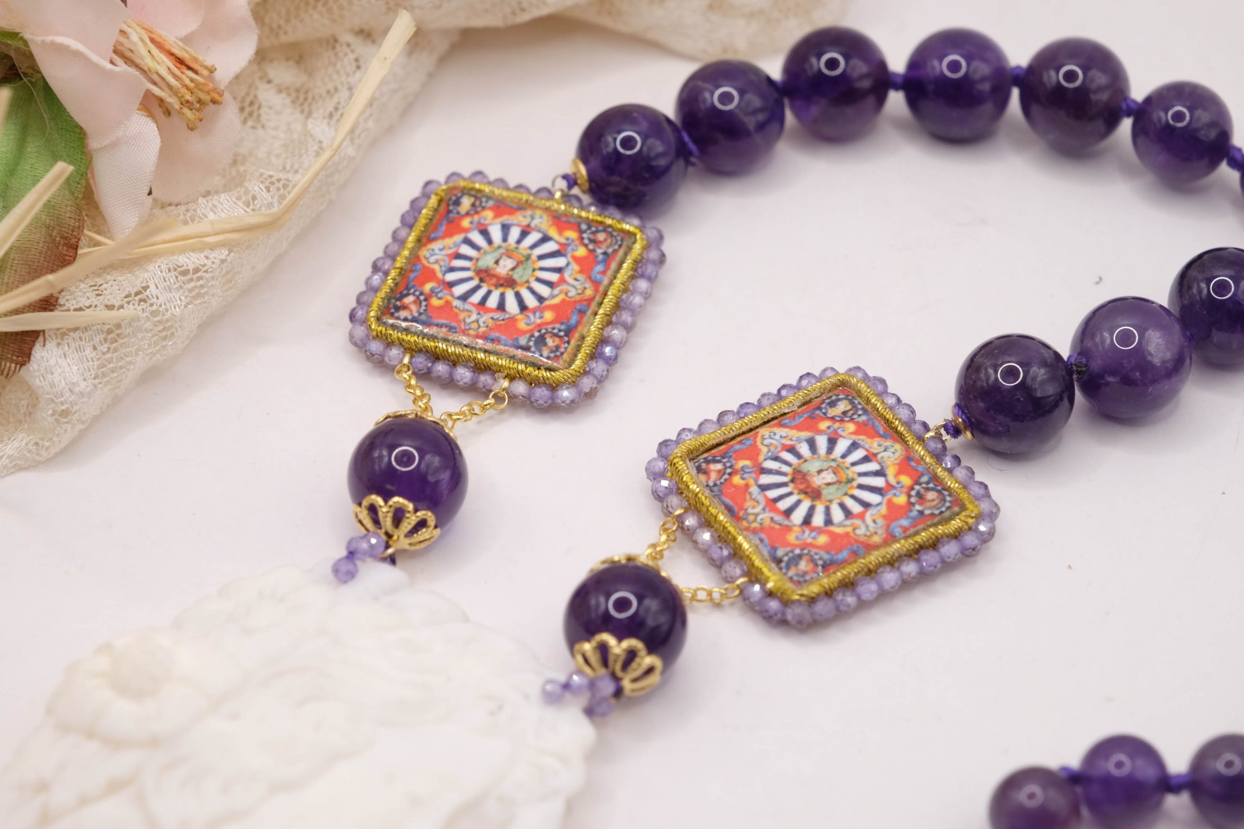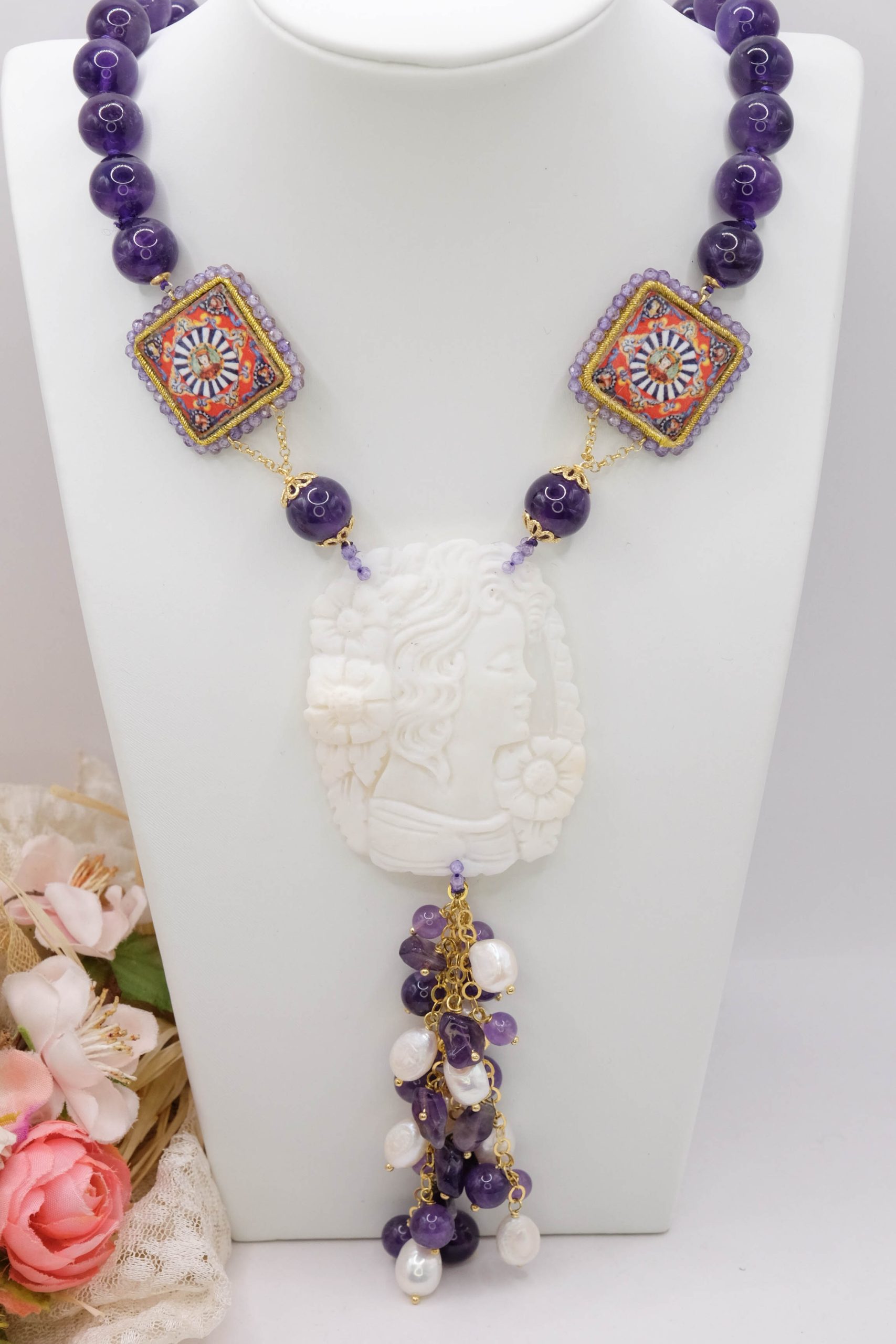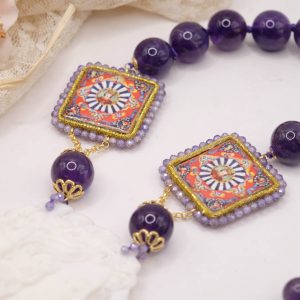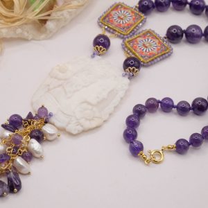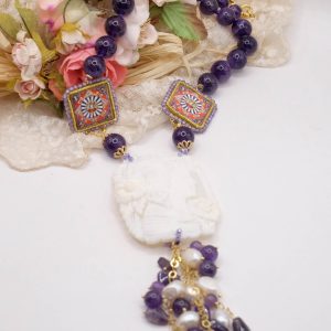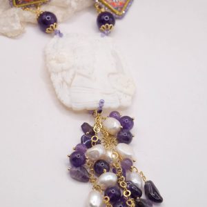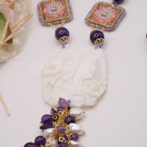 Collana in Ametista Ceramica di Caltagirone e cammeo di Torre del Greco