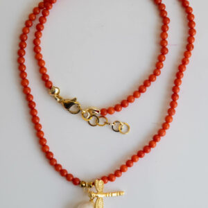 Collana in Corallo Bamboo, Perla Naturale e Libellula