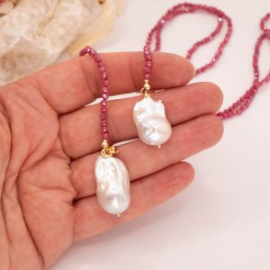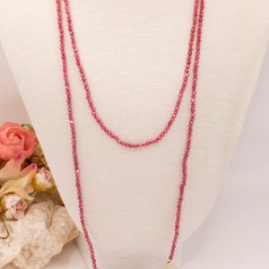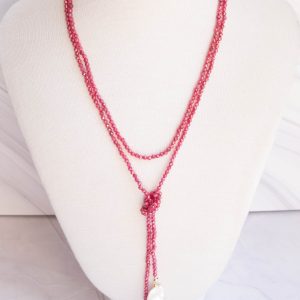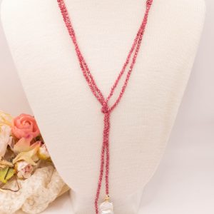 Collana Lunga a Sciarpa Zirconi Naturali Fragola Perle TQ