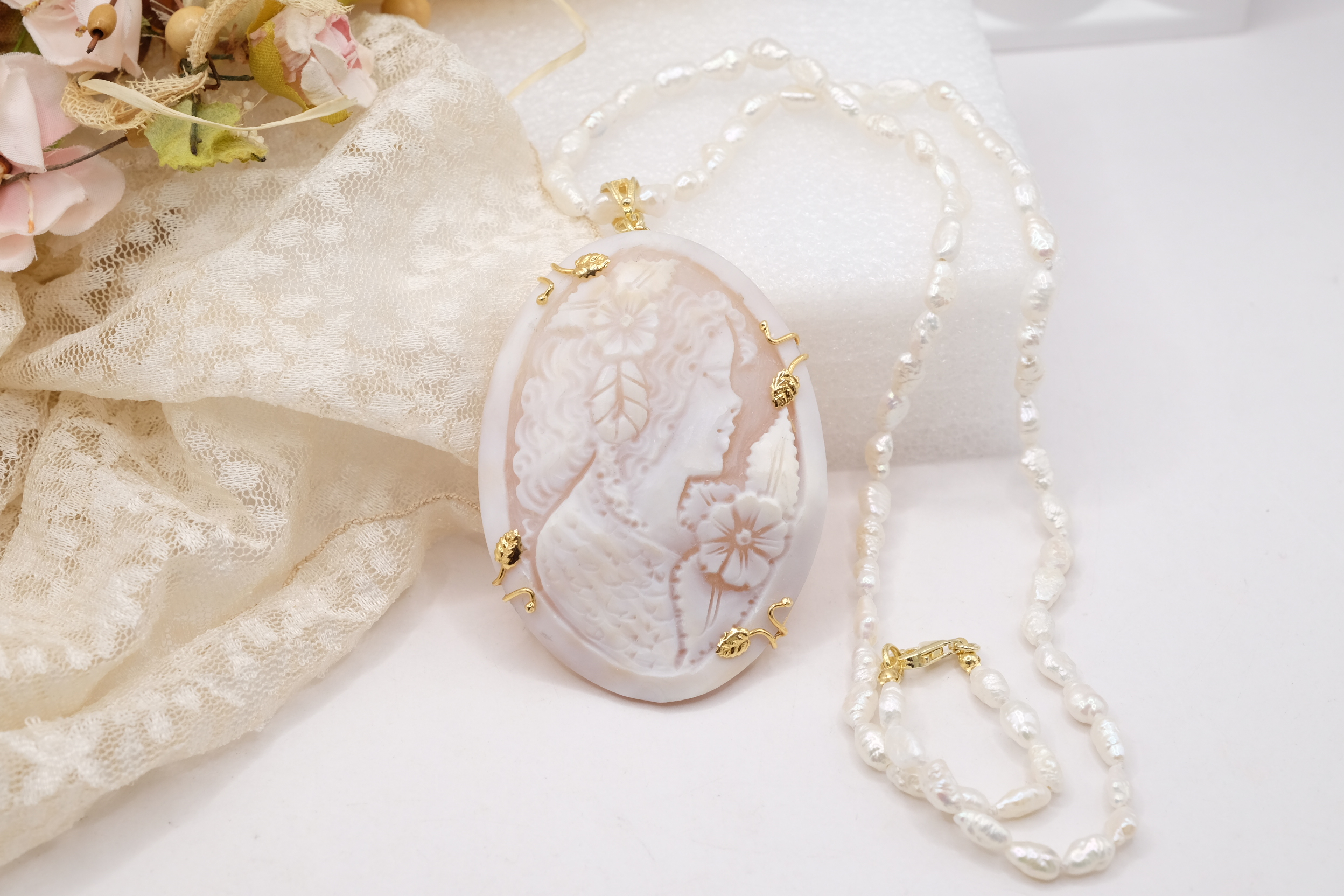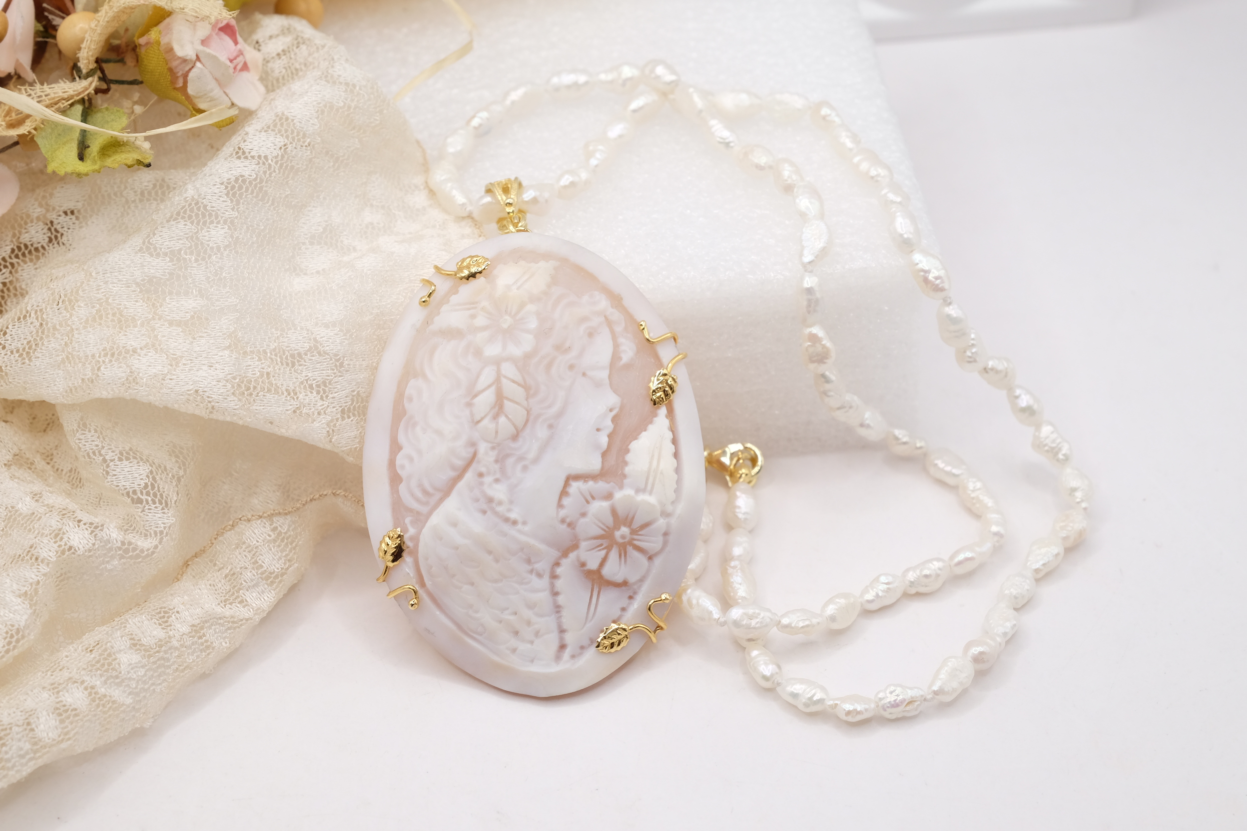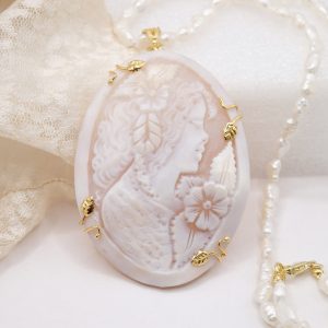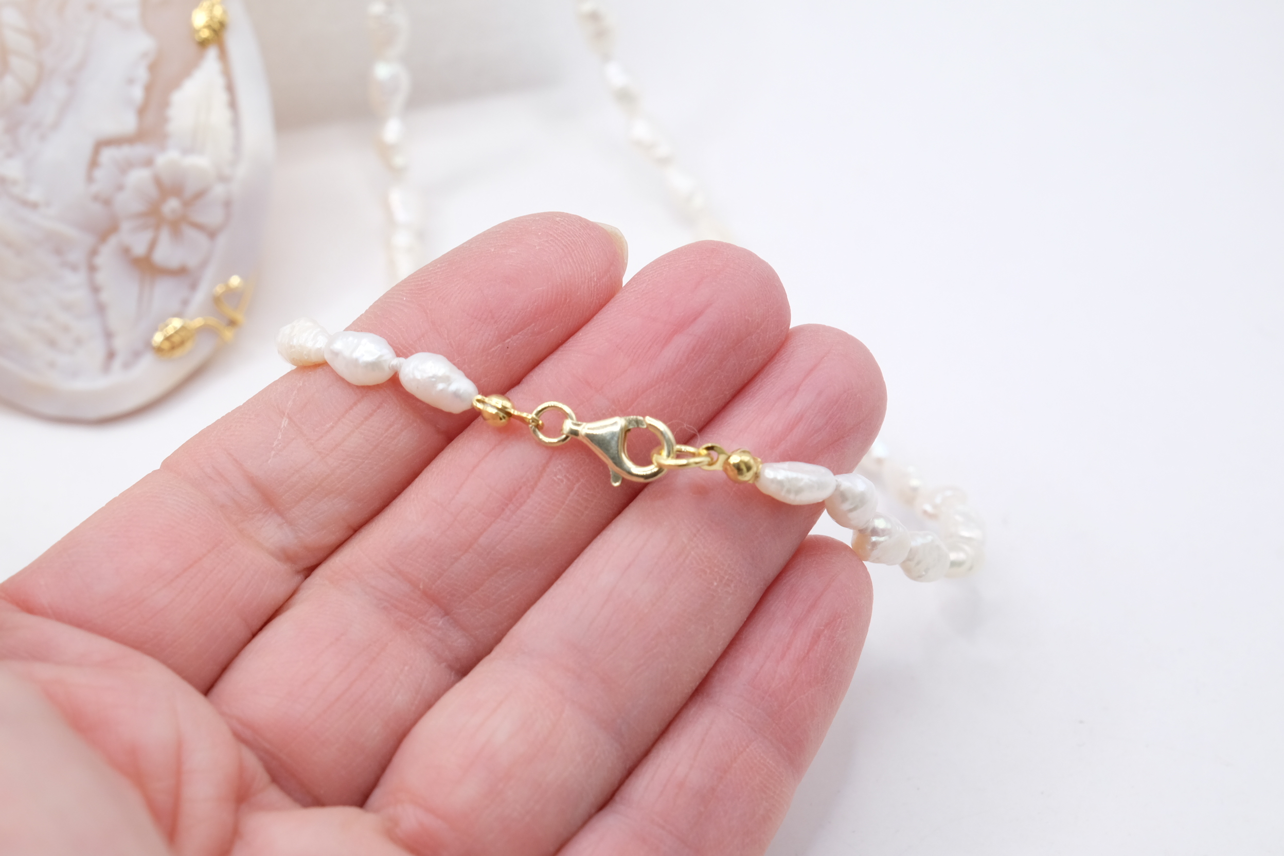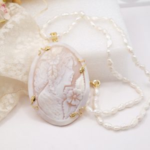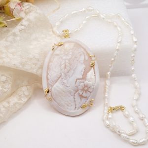 Collana micro perle naturali e cammeo di Torre del Greco