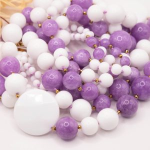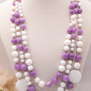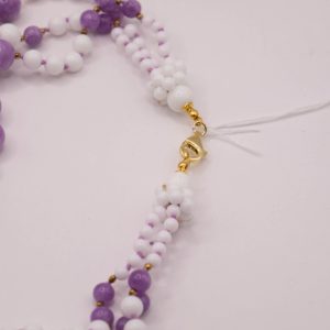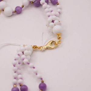 Collana 3 fili morbidi di agata bianca alternata a kunzite naturale L’intera collana è intervallata da punti luce in ematite gold, per uno scintillio delicato e raffinato.