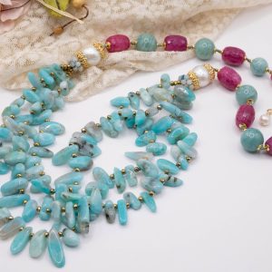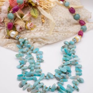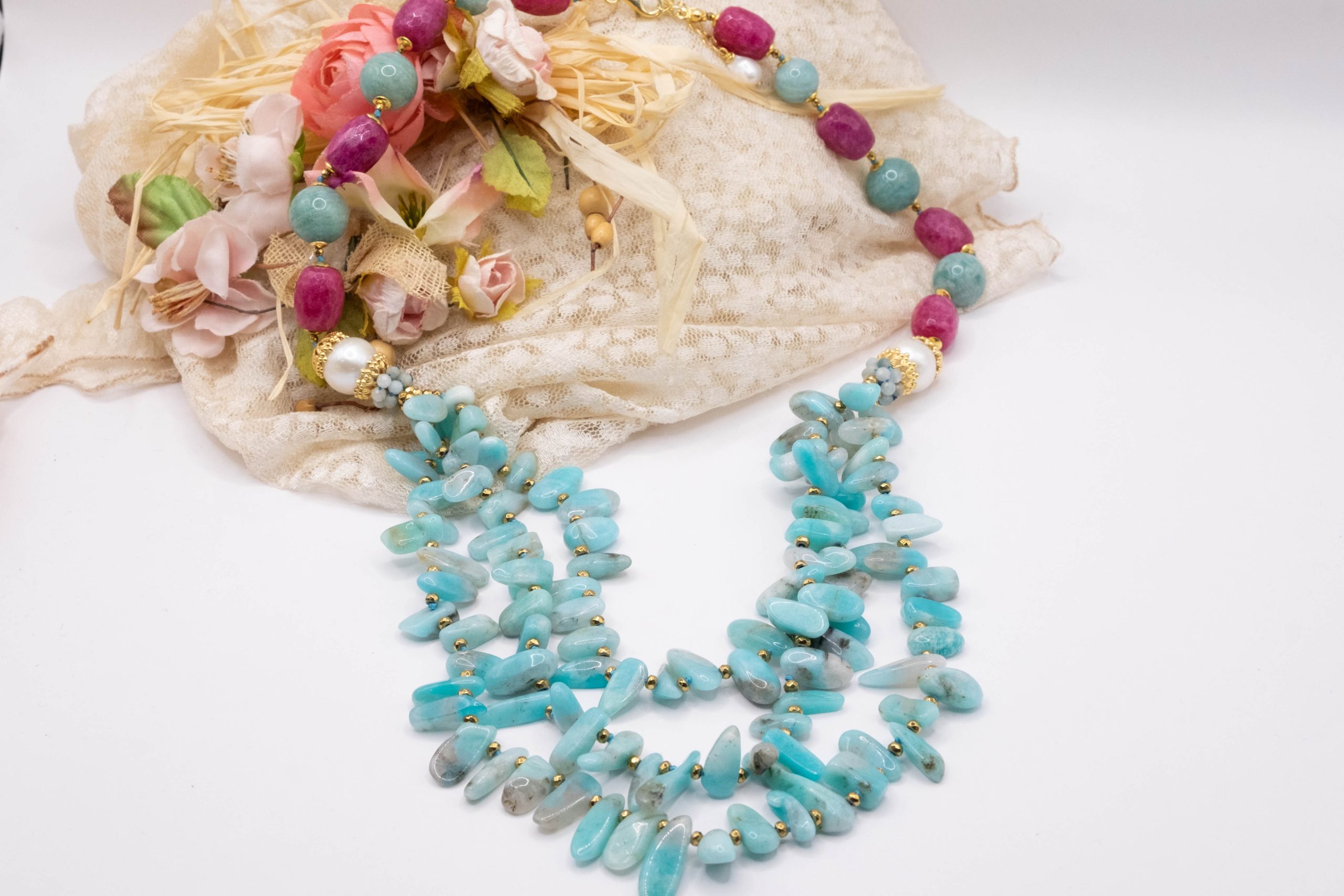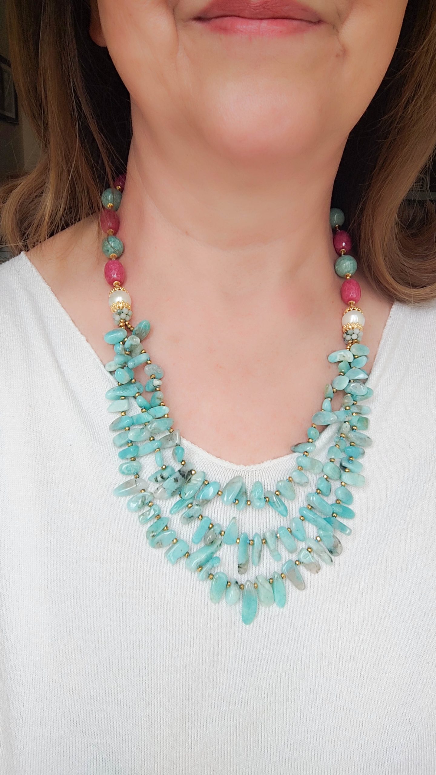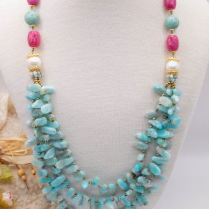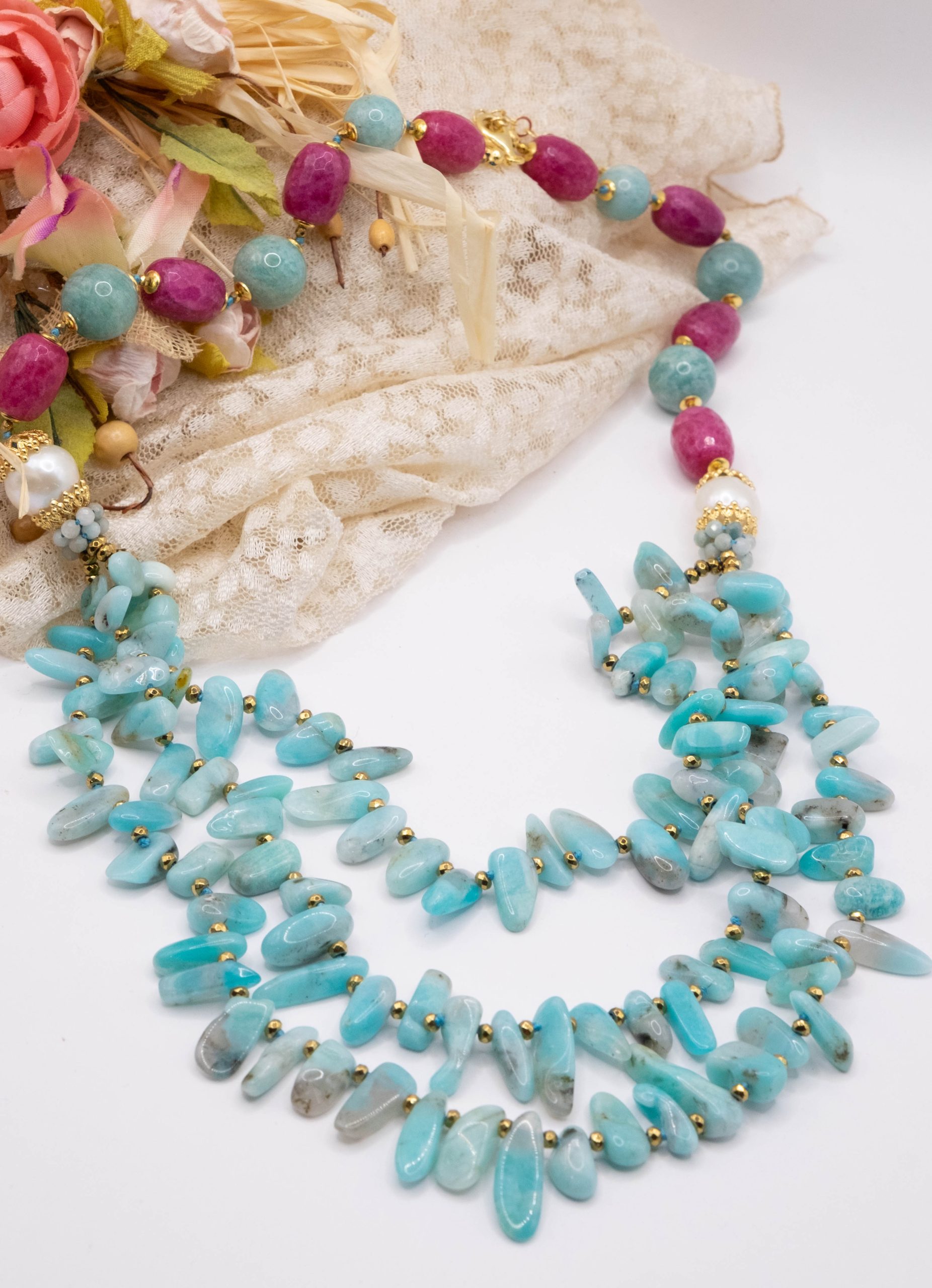 Collana Multifilo Amazzonite Giada Fucsia Perle e Argento