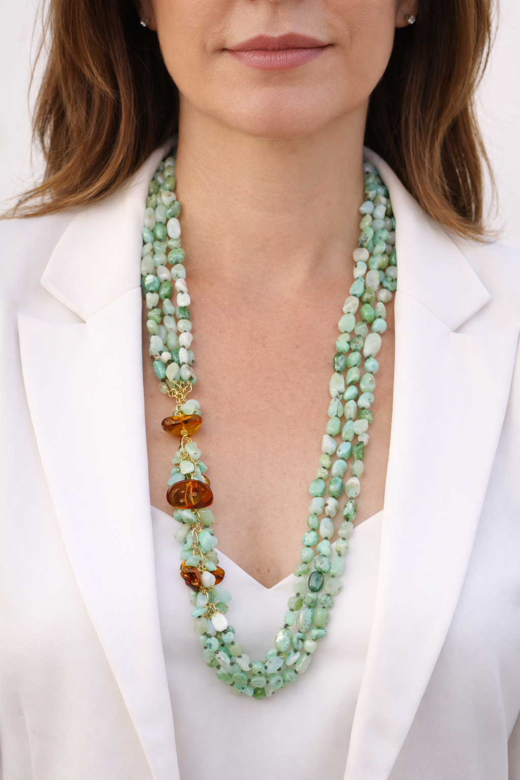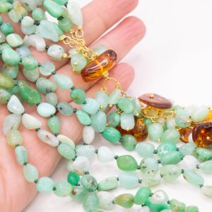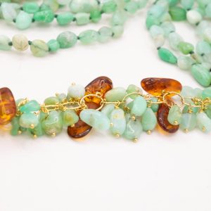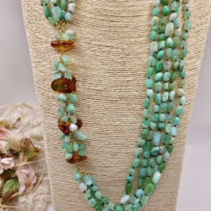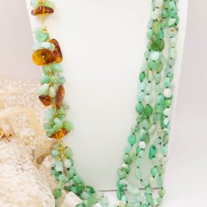 Collana Multifilo Crisoprasio Ambra Argento 925 Placcato Oro