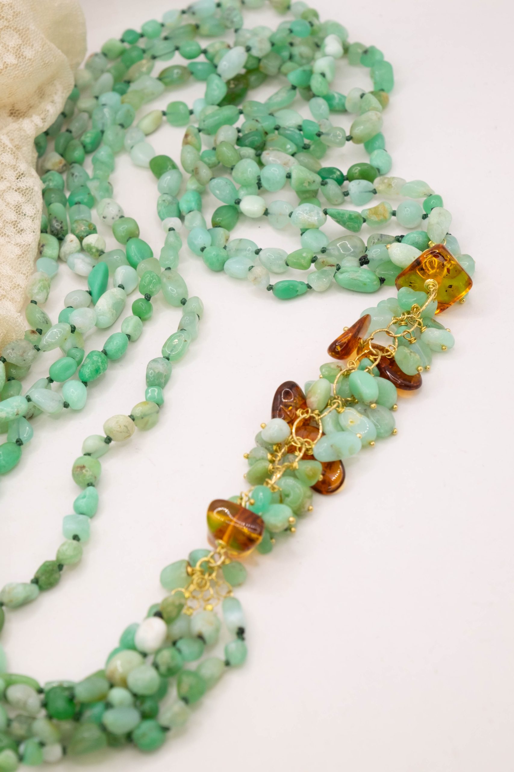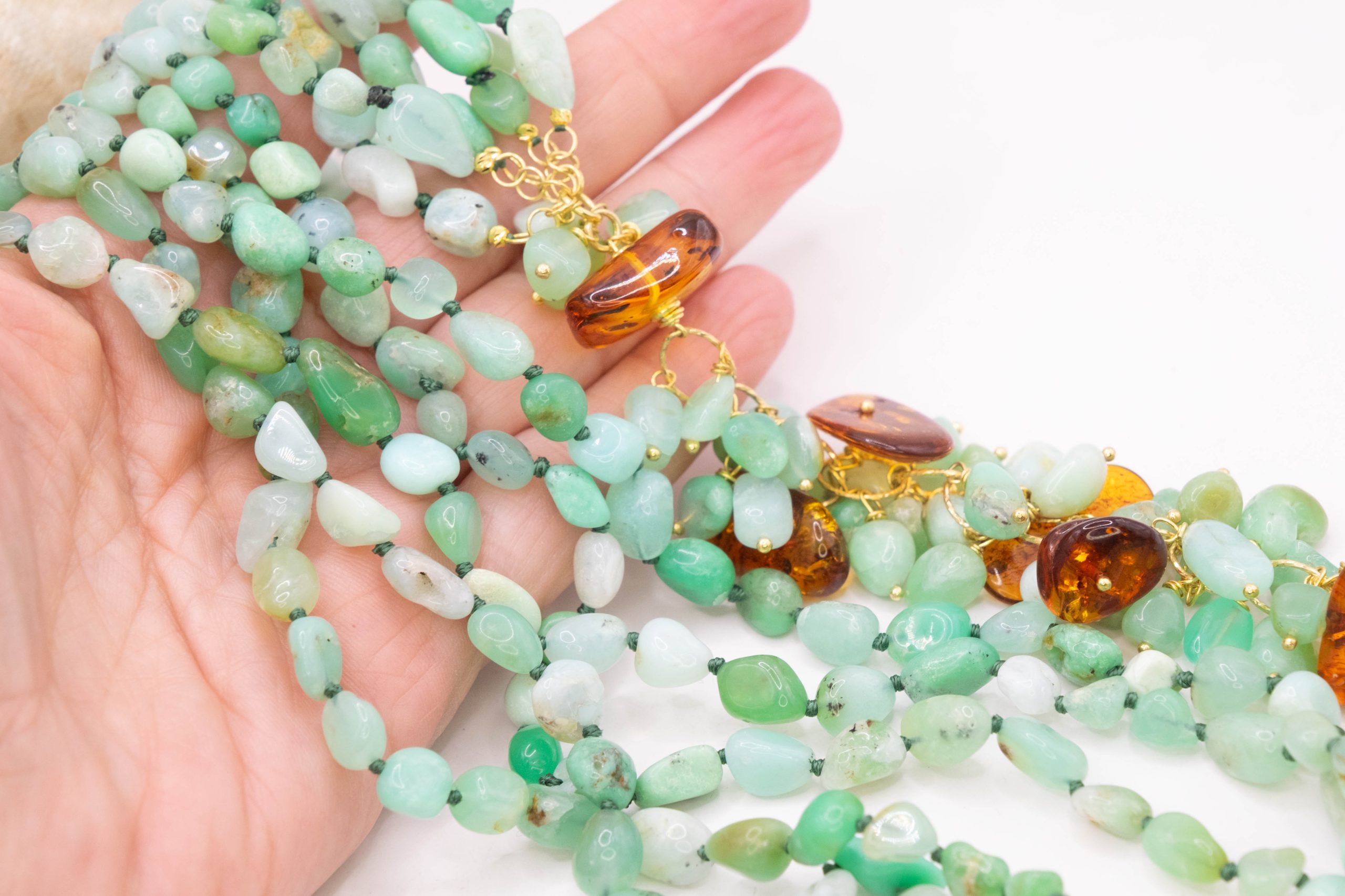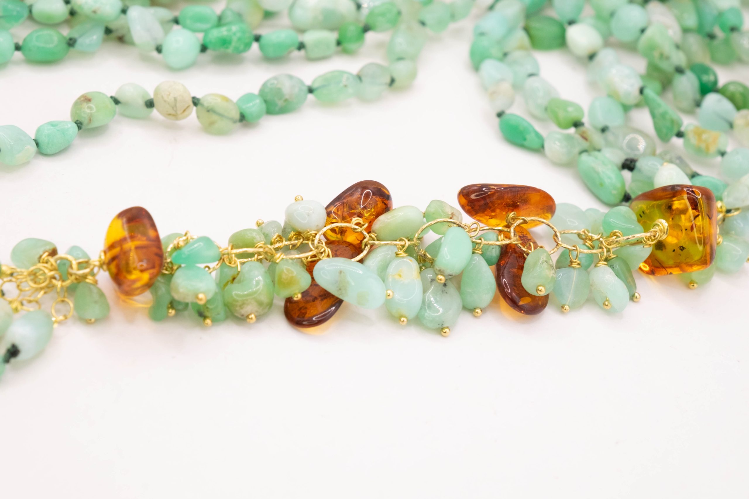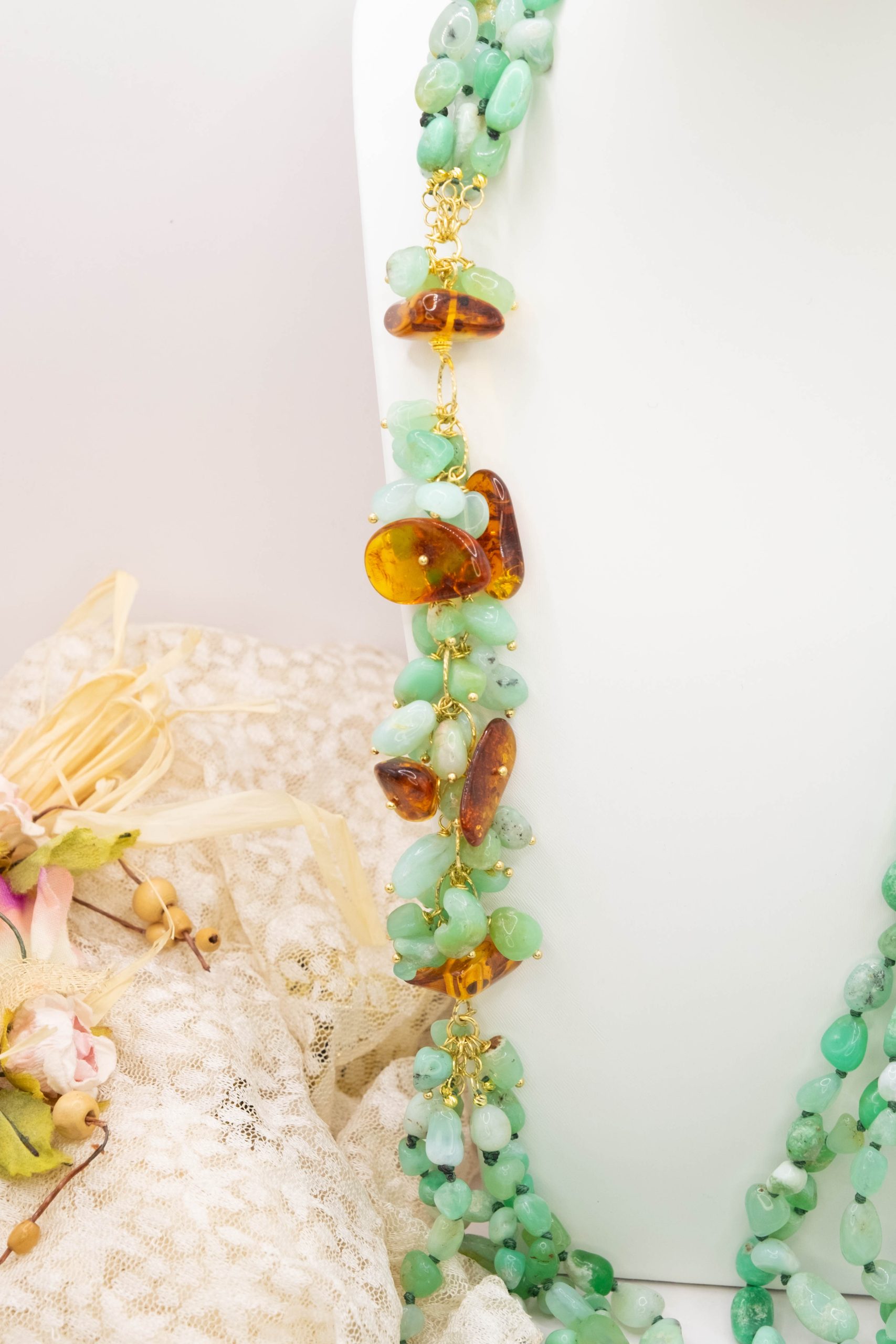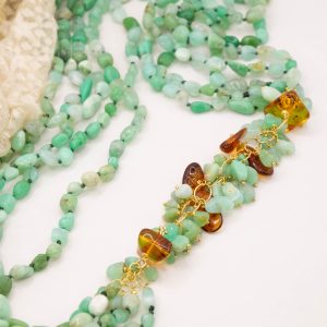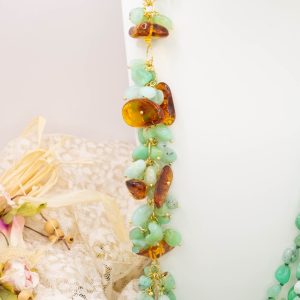 Materiale: Crisoprasio, Ambra del Baltico, argento 925 placcato oro