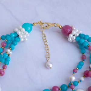 Collana Multifilo Giada Fuxia Apatite Perle Argento 925
