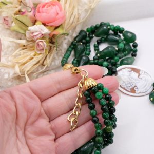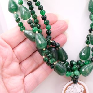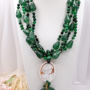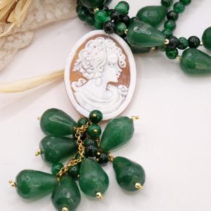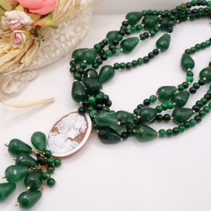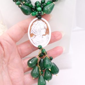 Collana Multifilo Giada Verde e Cammeo di Torre del Greco a Y