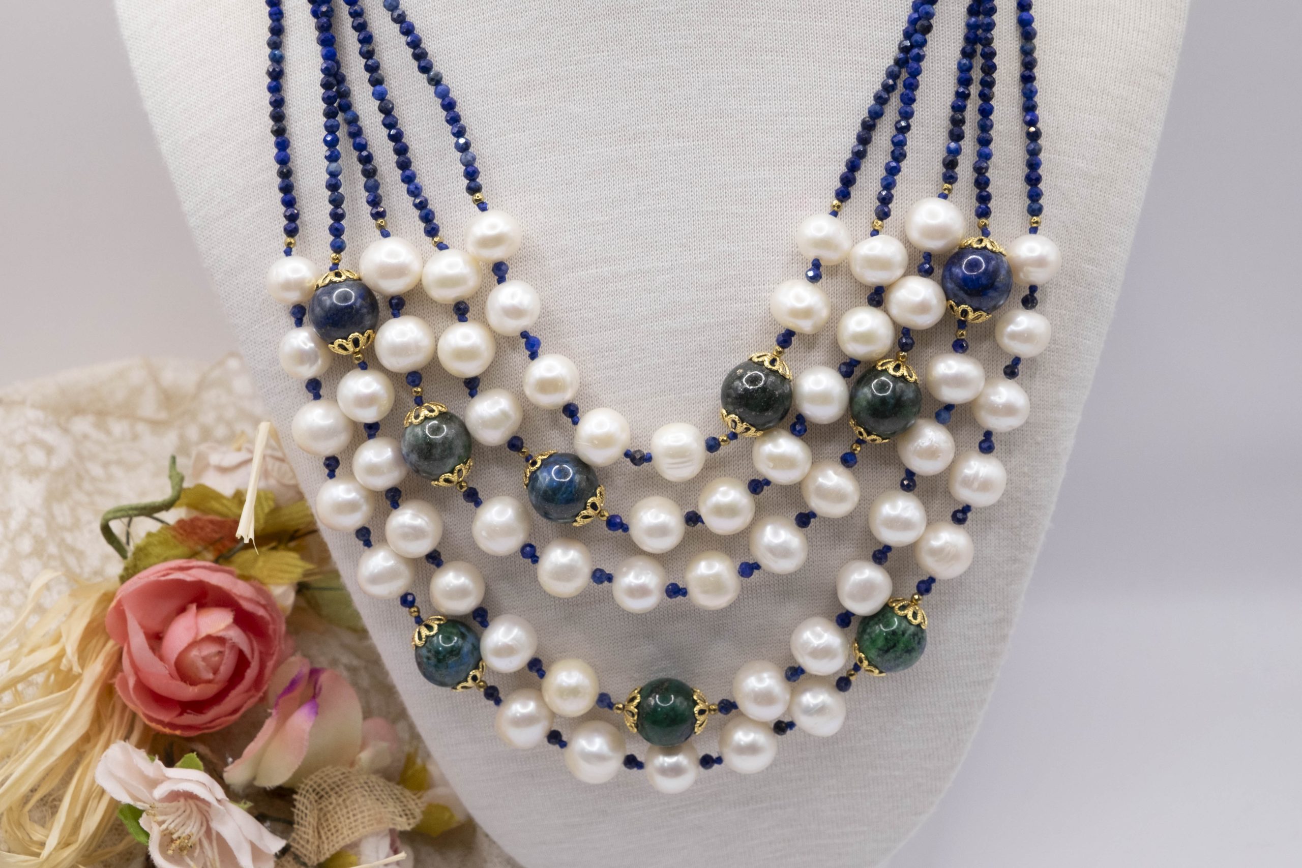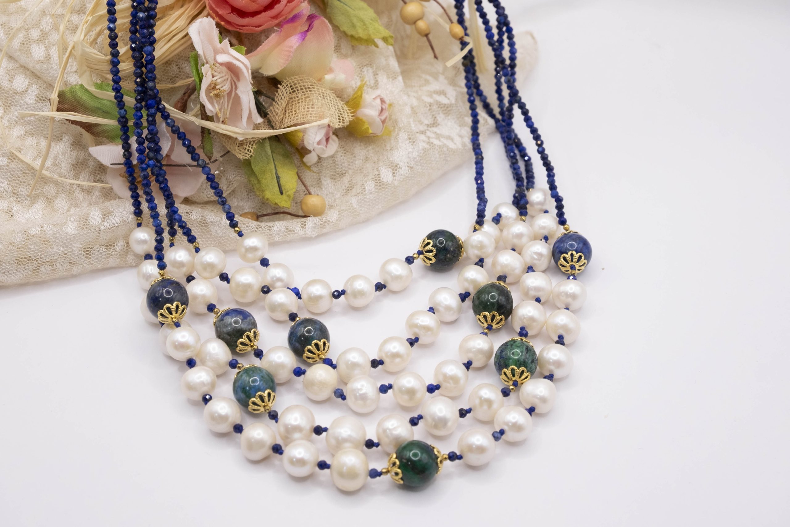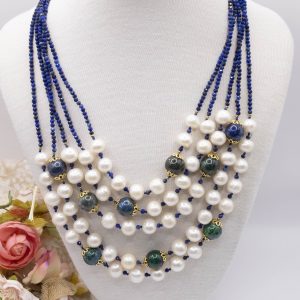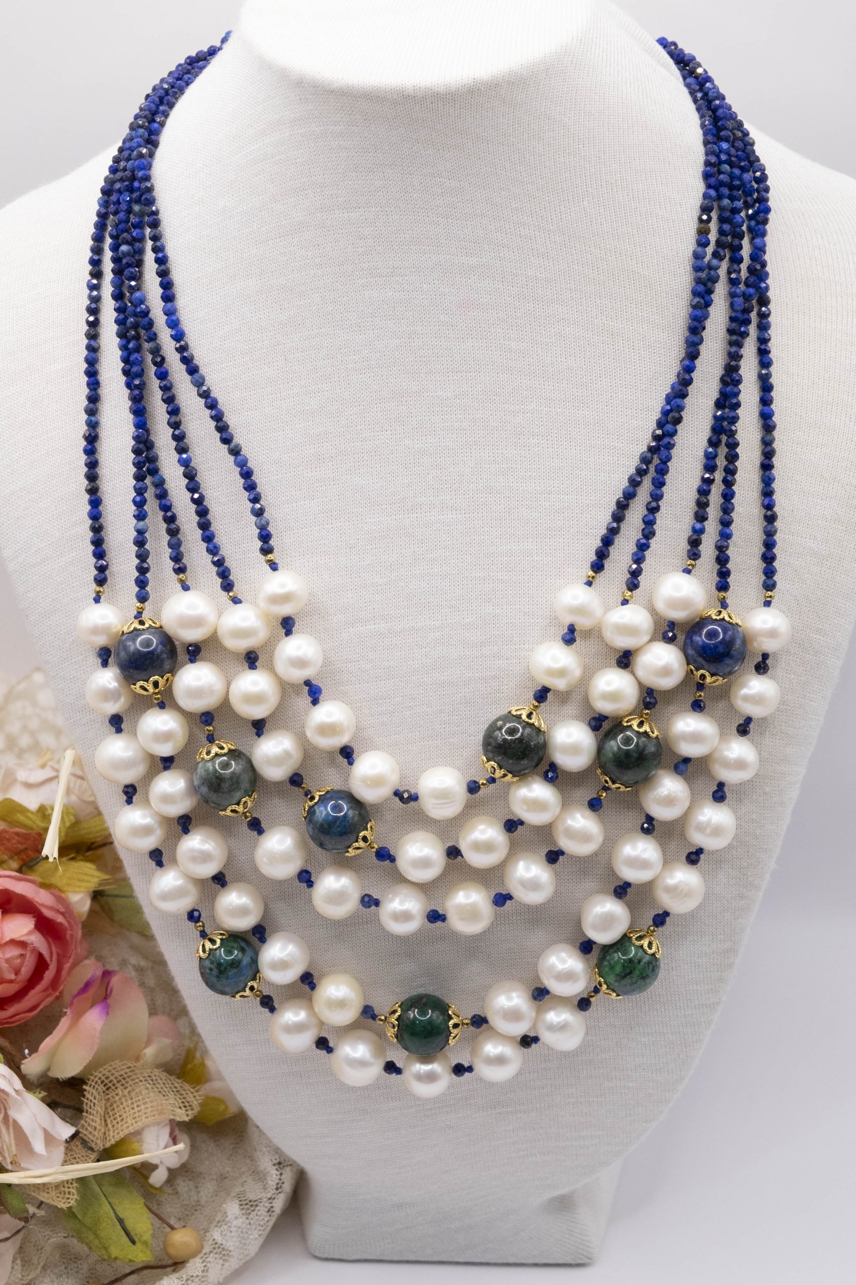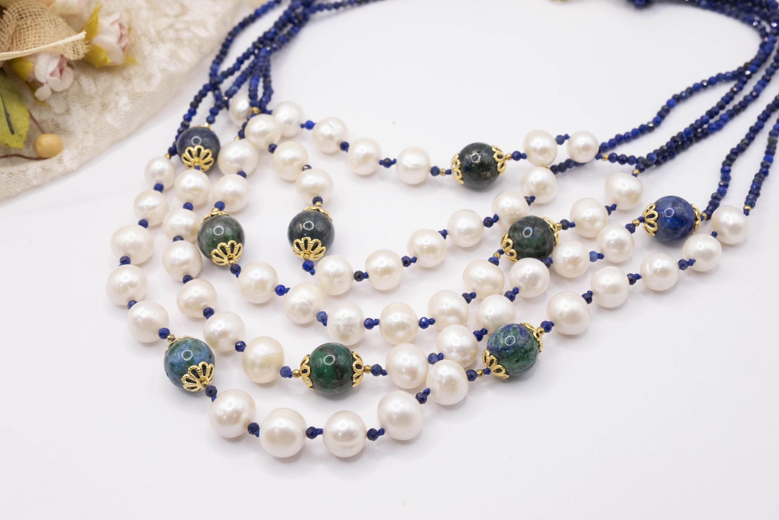 Elegante e luminosa collana 5 file di perle naturali, e sodalite naturale