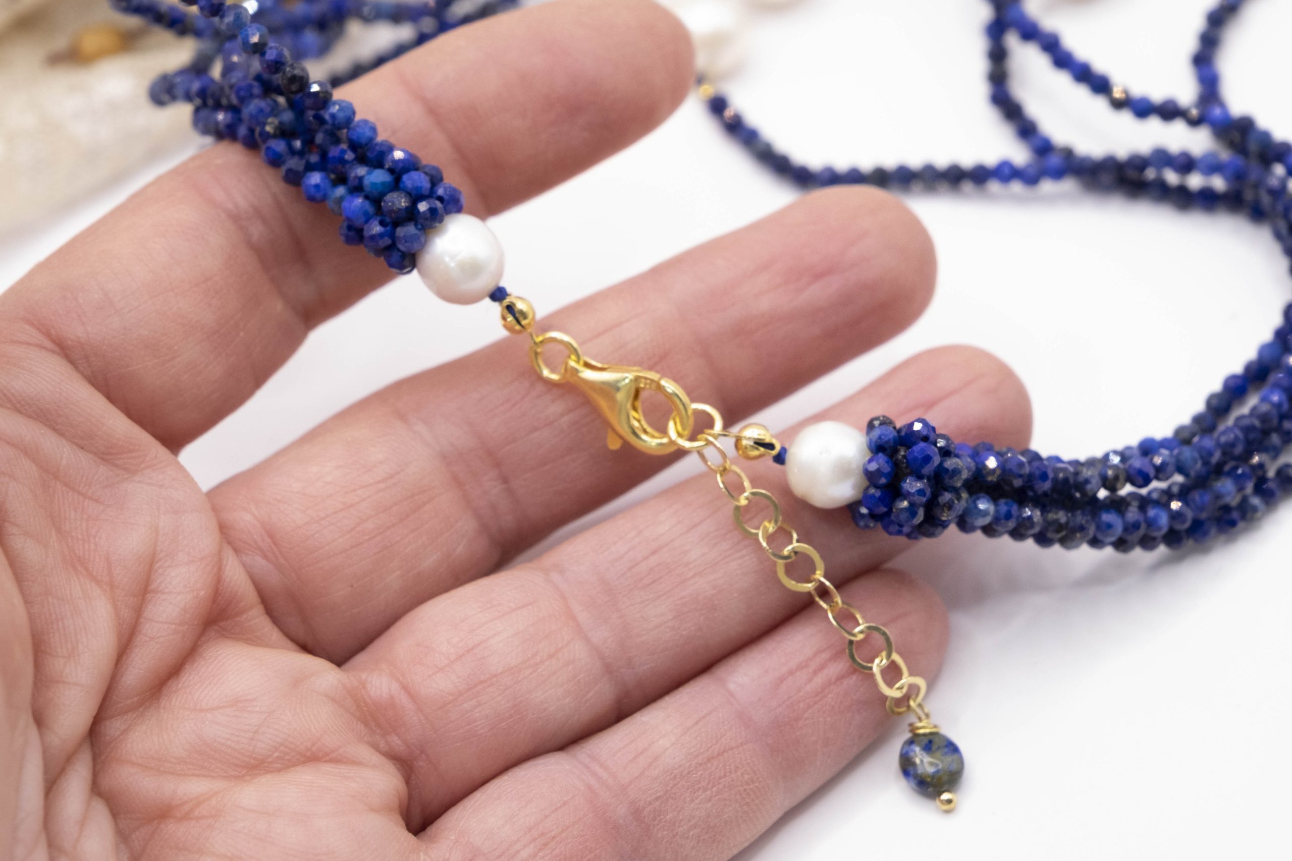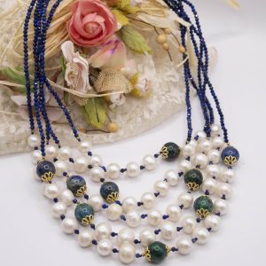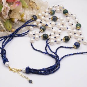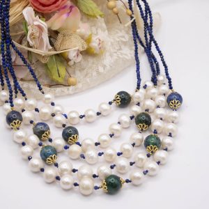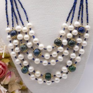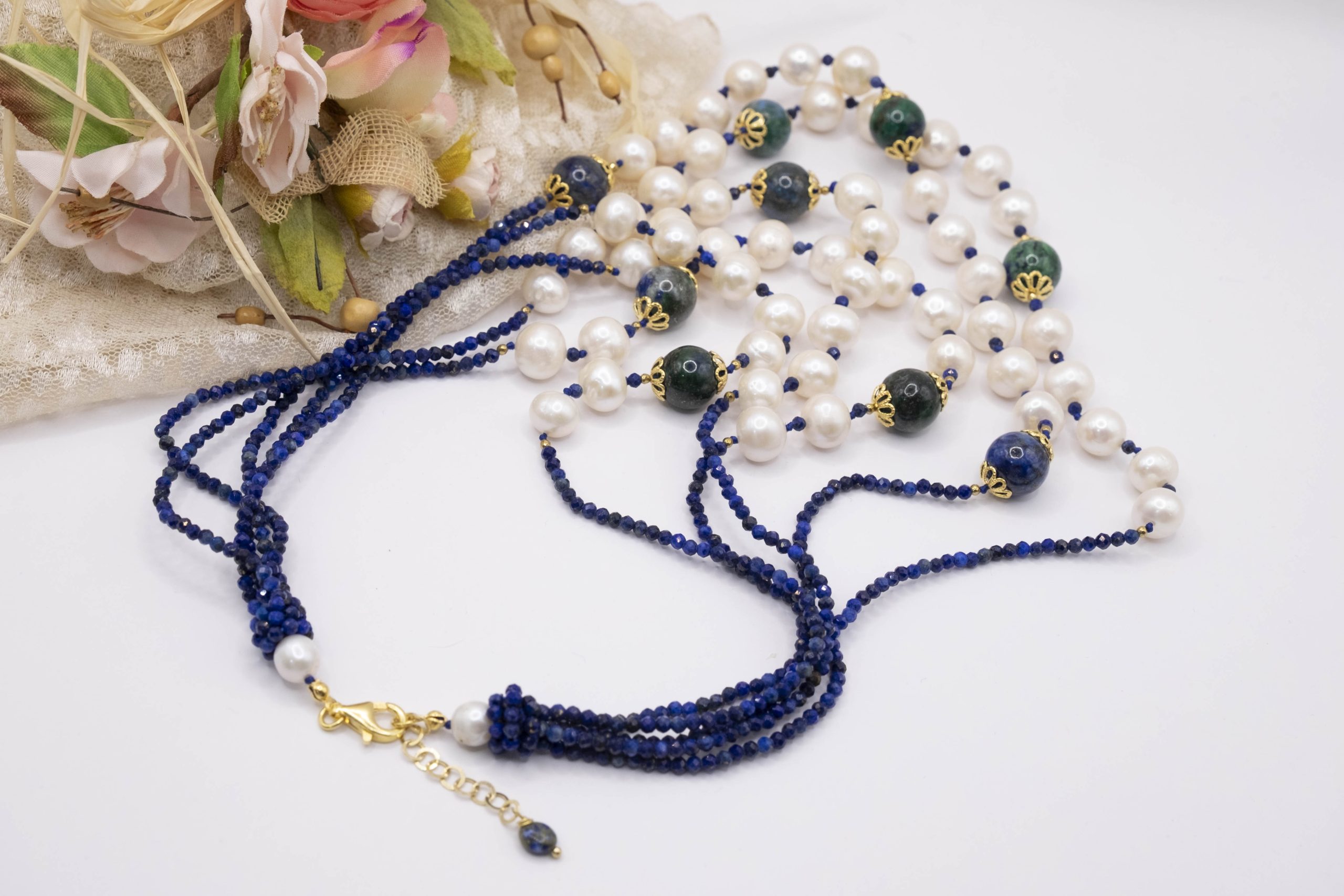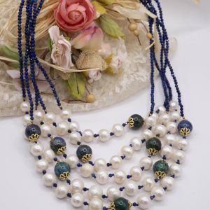 Collana Multifilo Perle Naturali Sodalite e Argento