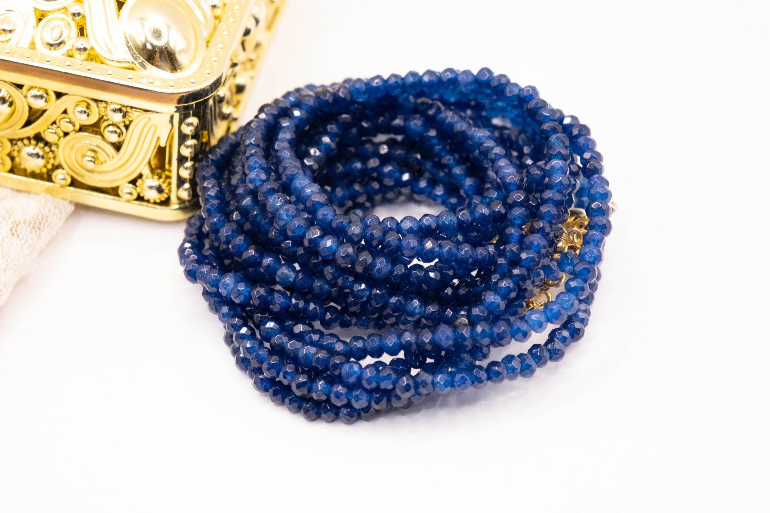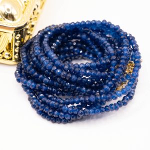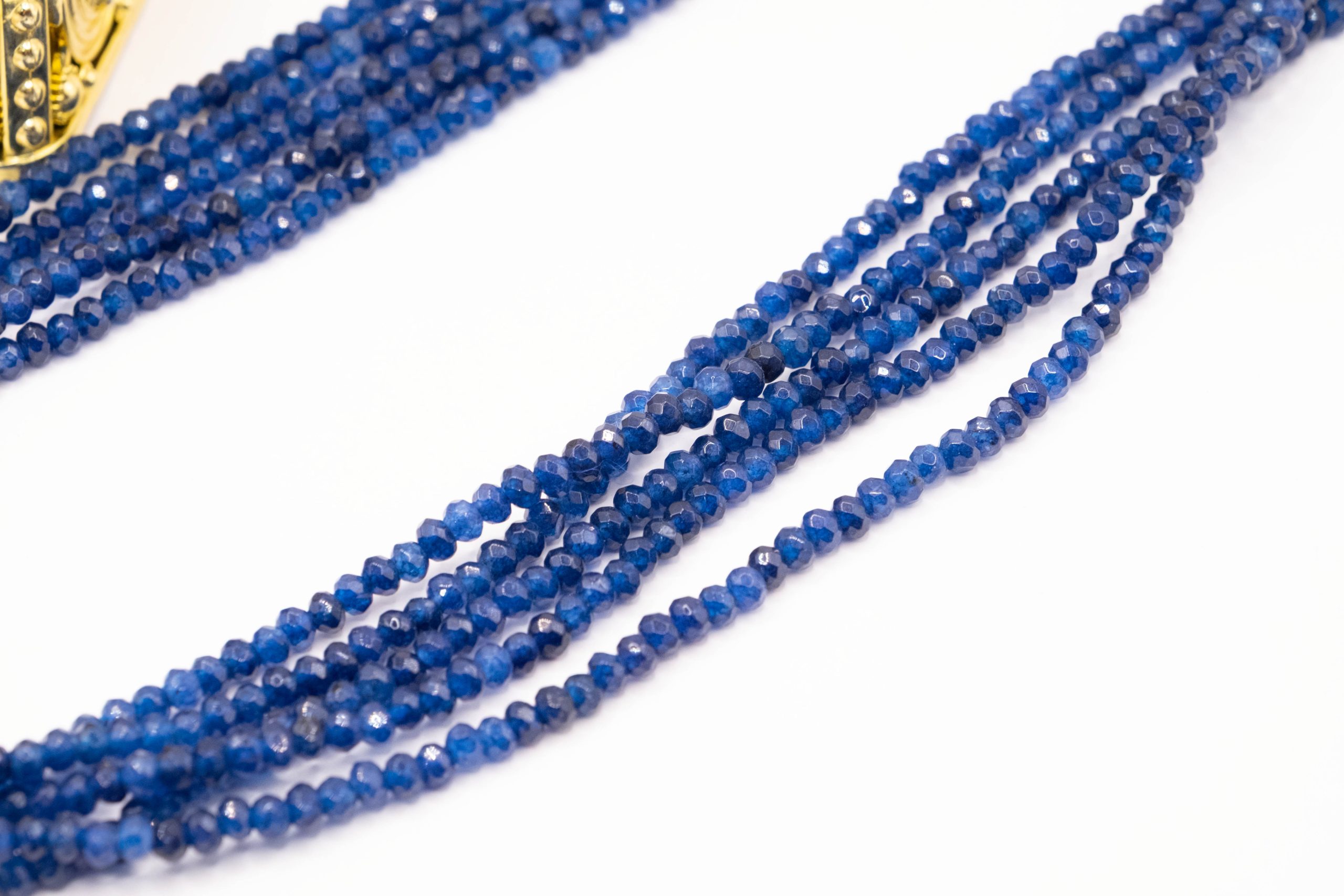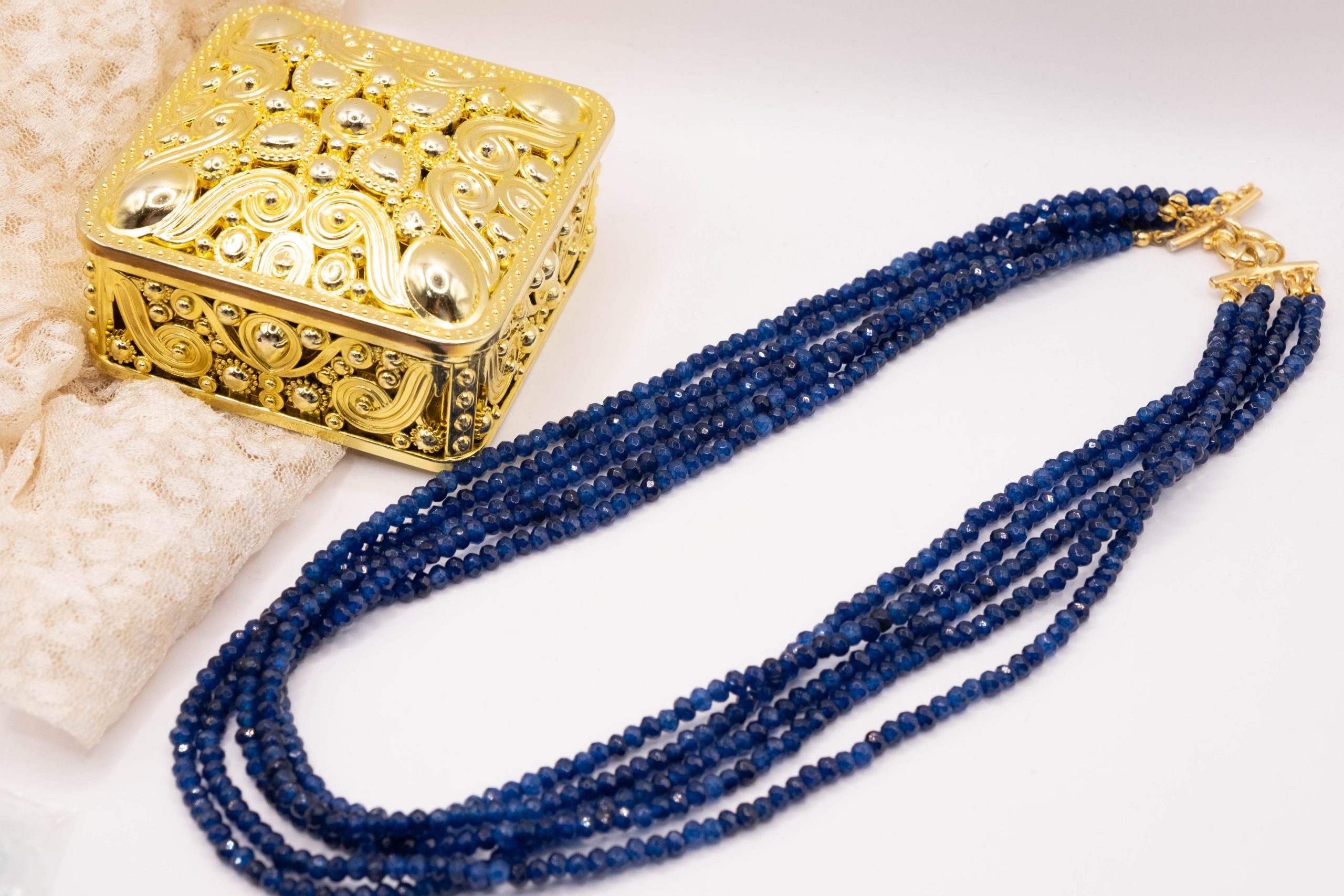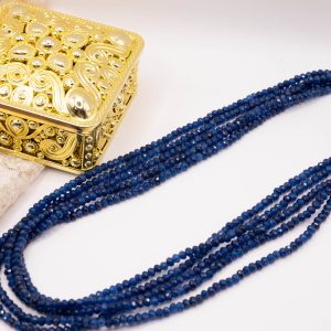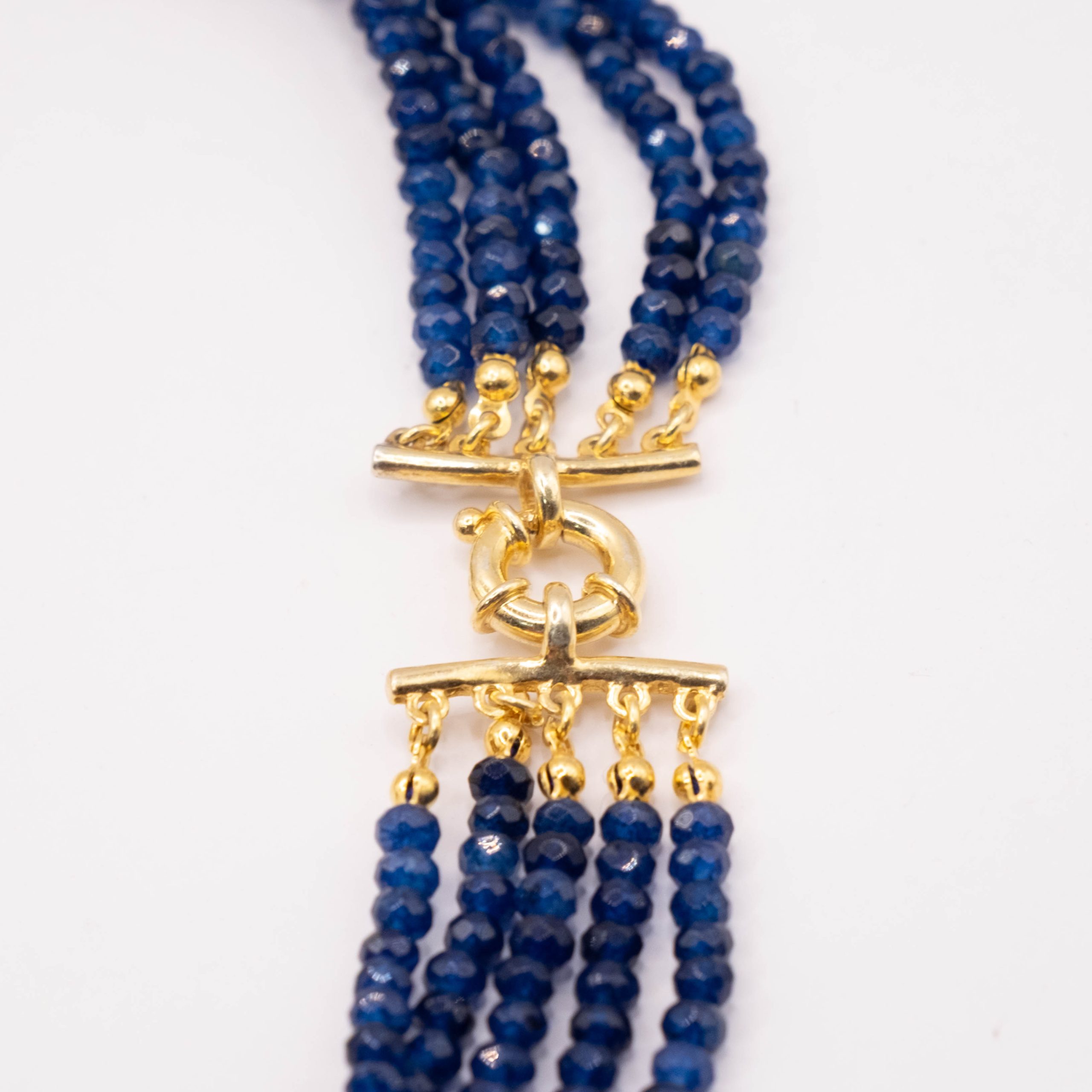 Collana multifilo, a 5 fili di radice di Zaffiro con chiusura a ottino in Argento 925 placcato oro.
