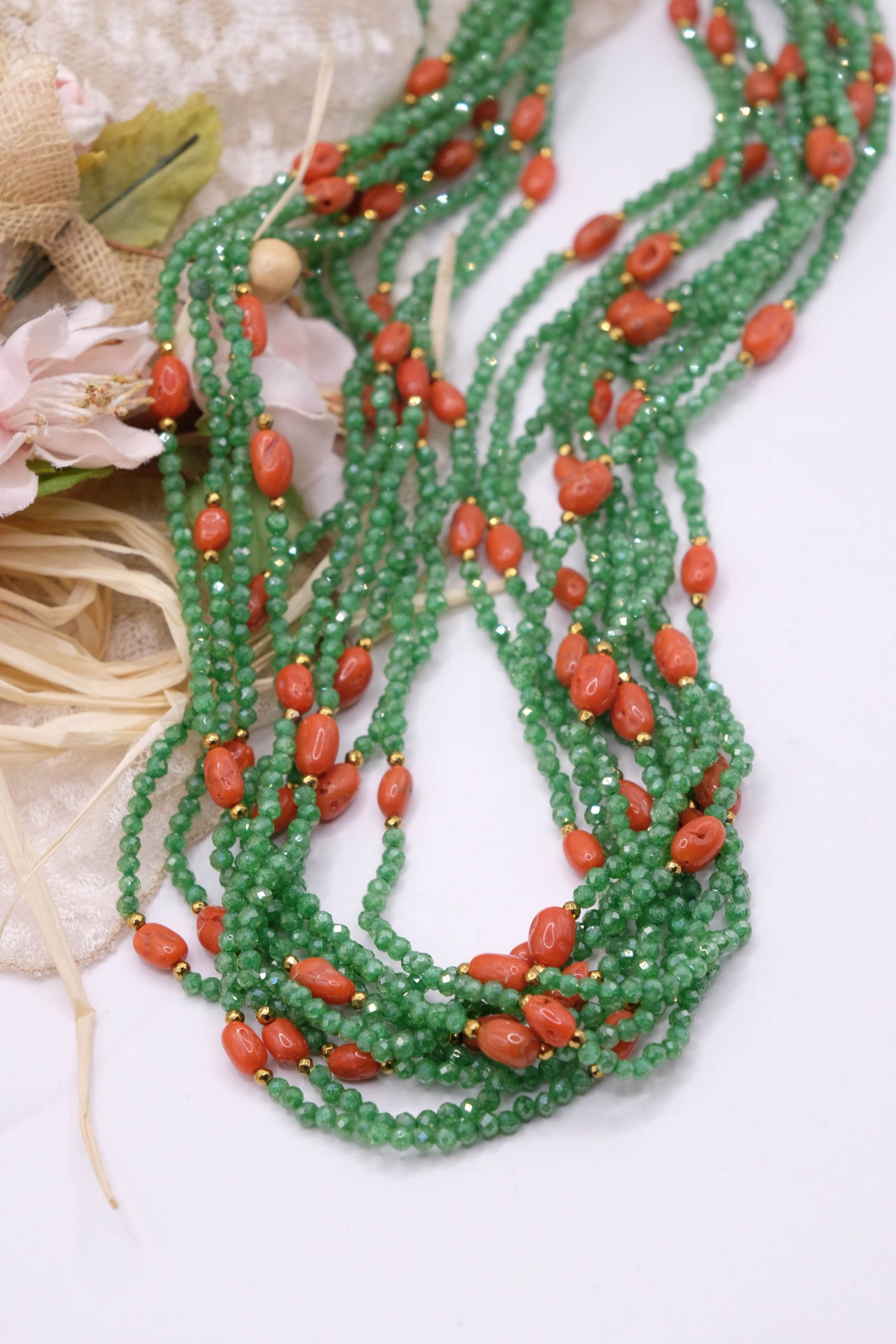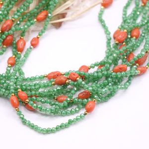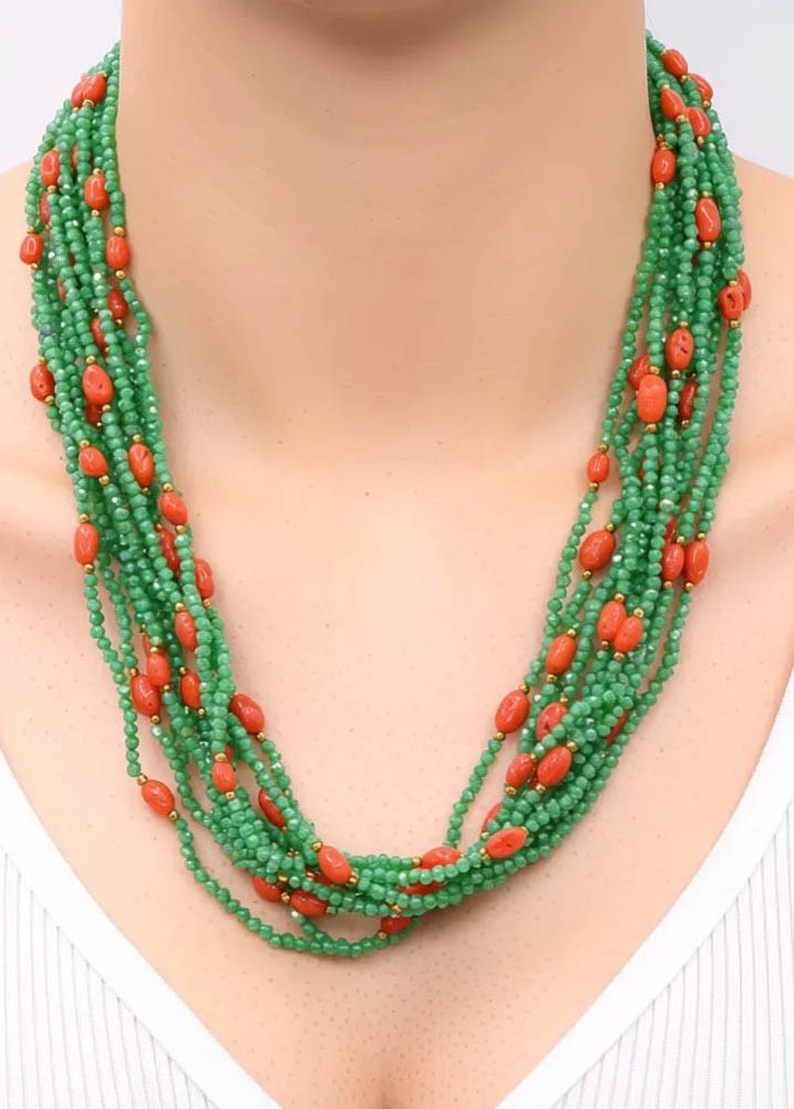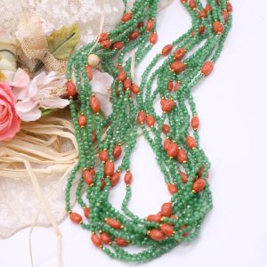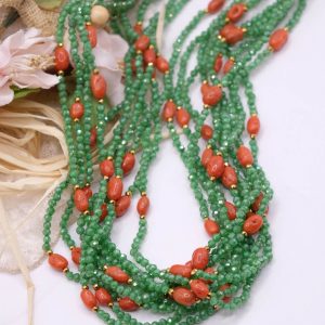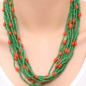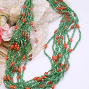 Collana Multifilo Zirconi Verdi Corallo Naturale Argento 925