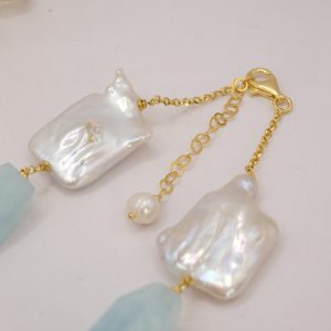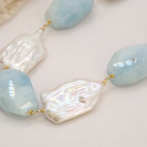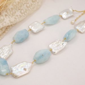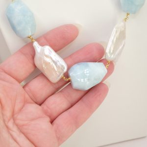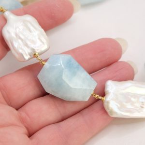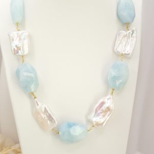 Collana Perle Grandi Naturali Barocche Acquamarina Argento 925