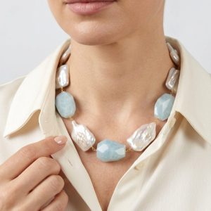 Collana Perle Grandi Naturali Barocche Acquamarina Argento 925