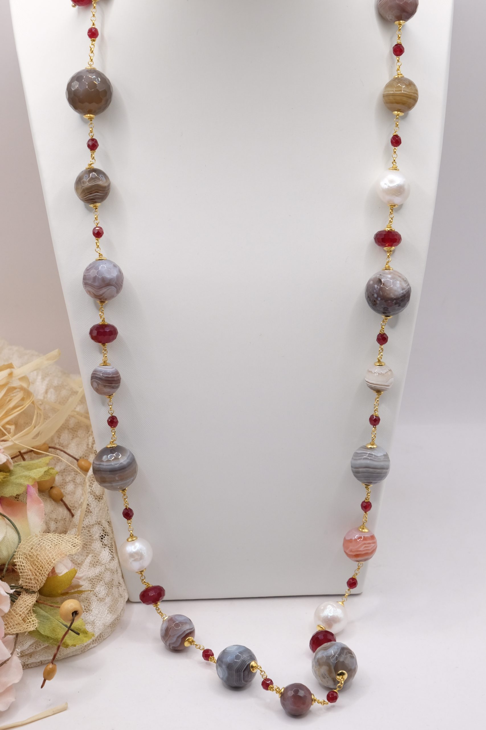 Materiale: Perle Naturali, Calcedonio, Giada Borgogna, Argento 925 placcato oro