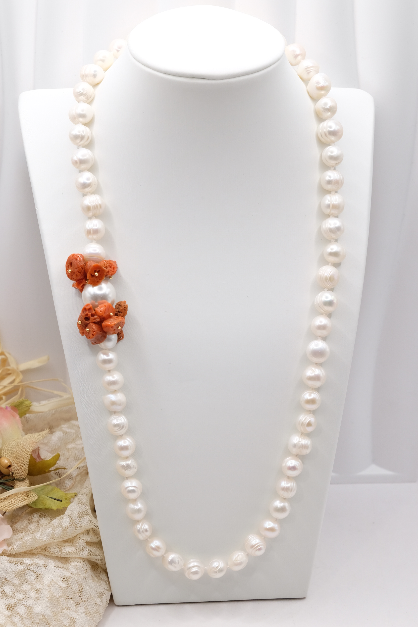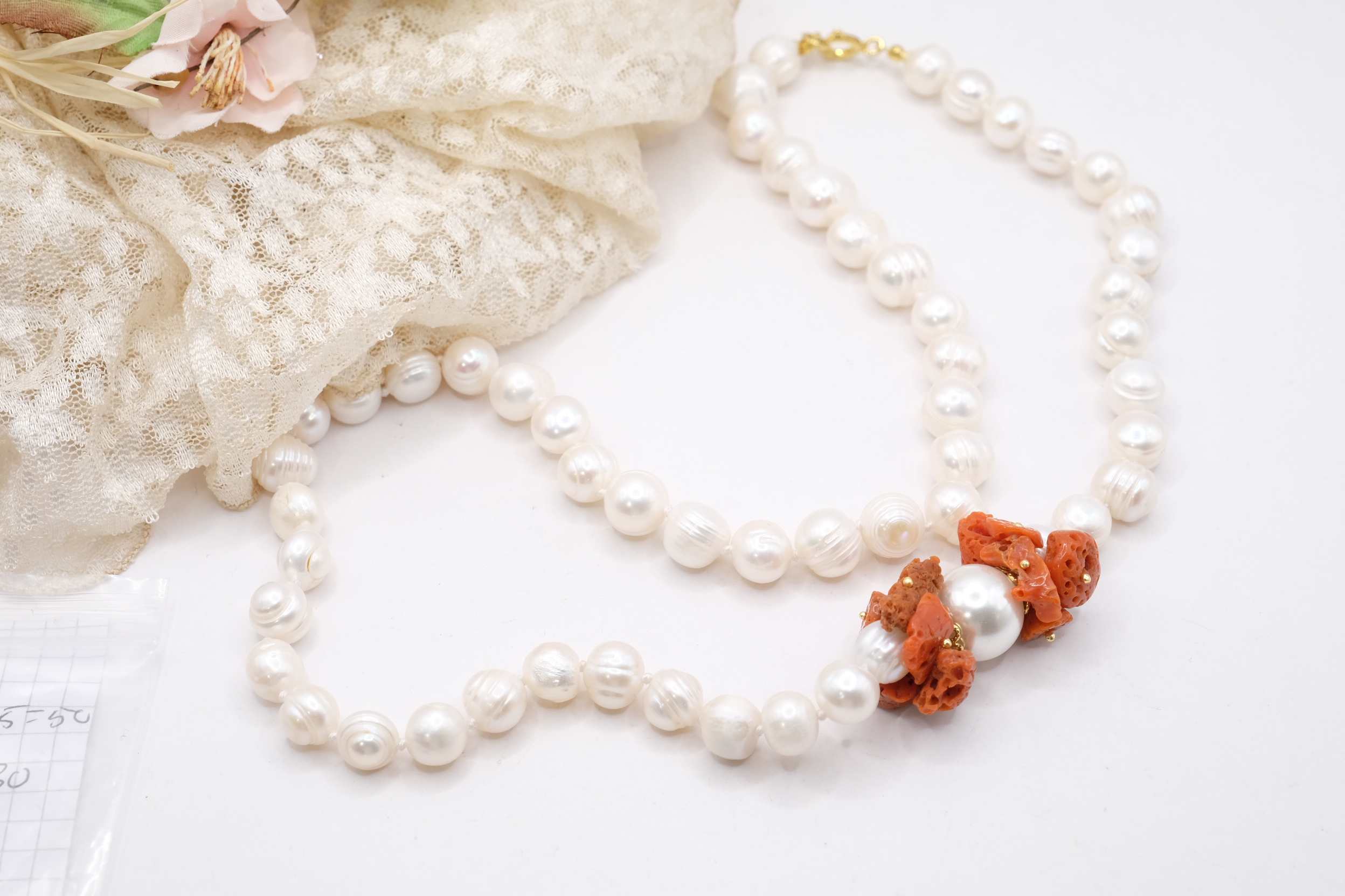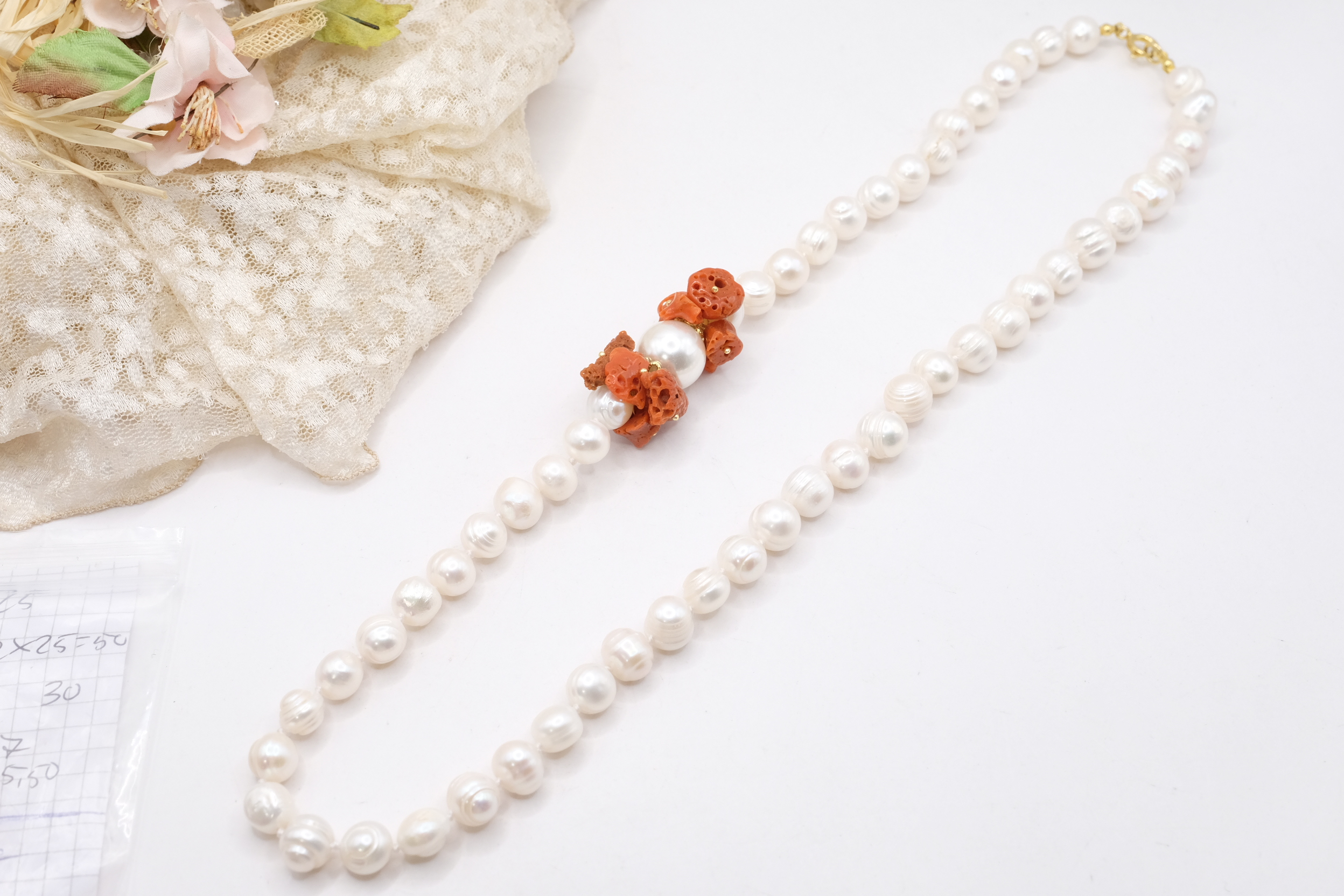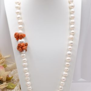 Collana Perle Naturali Corallo del Mediterraneo e Perla Maiorca