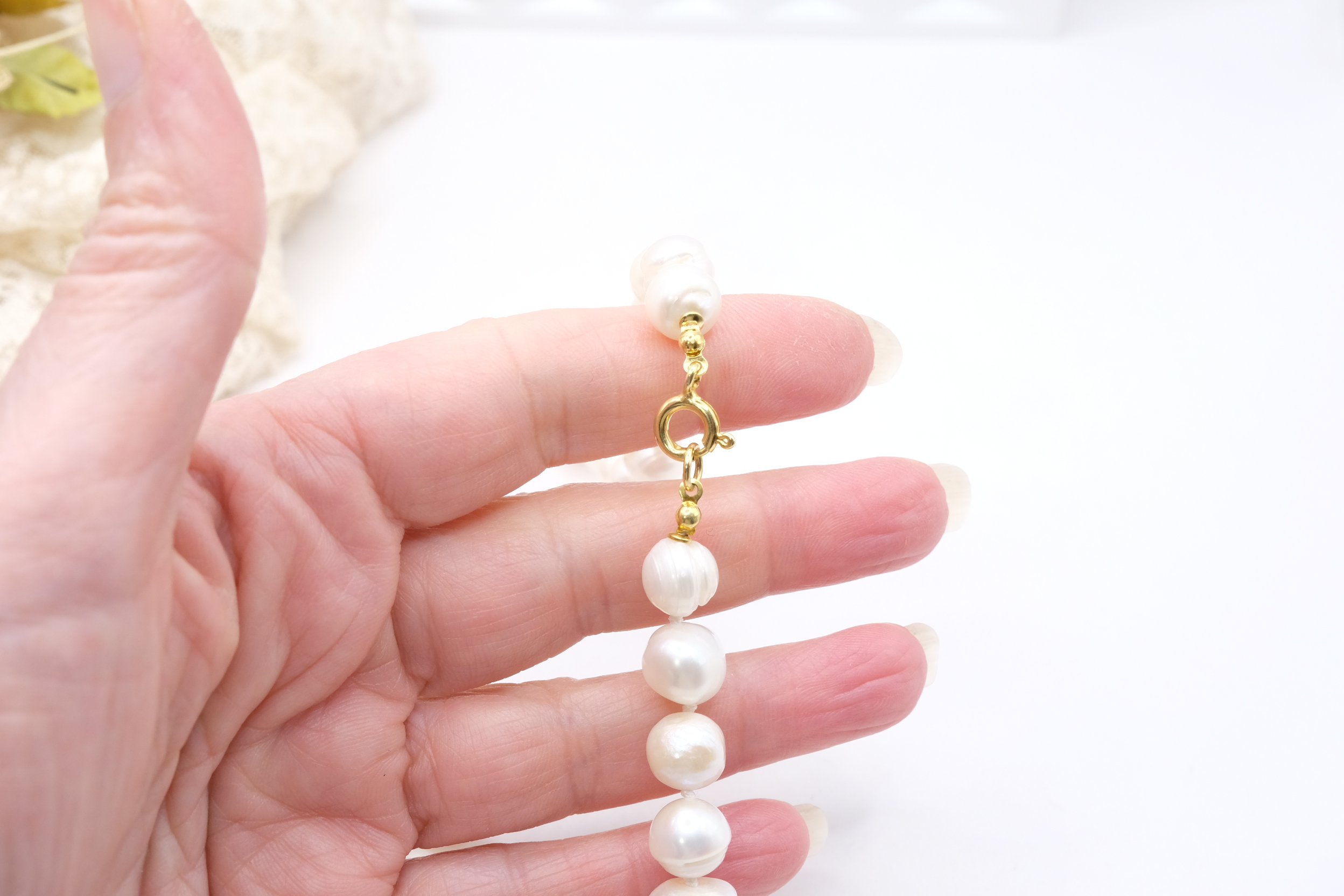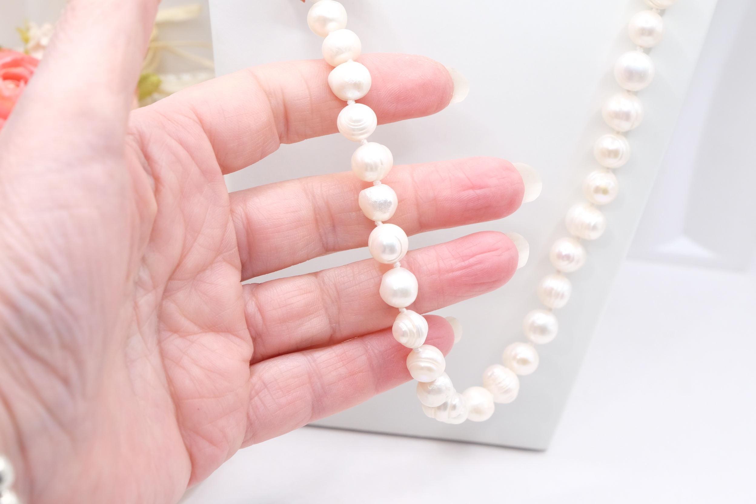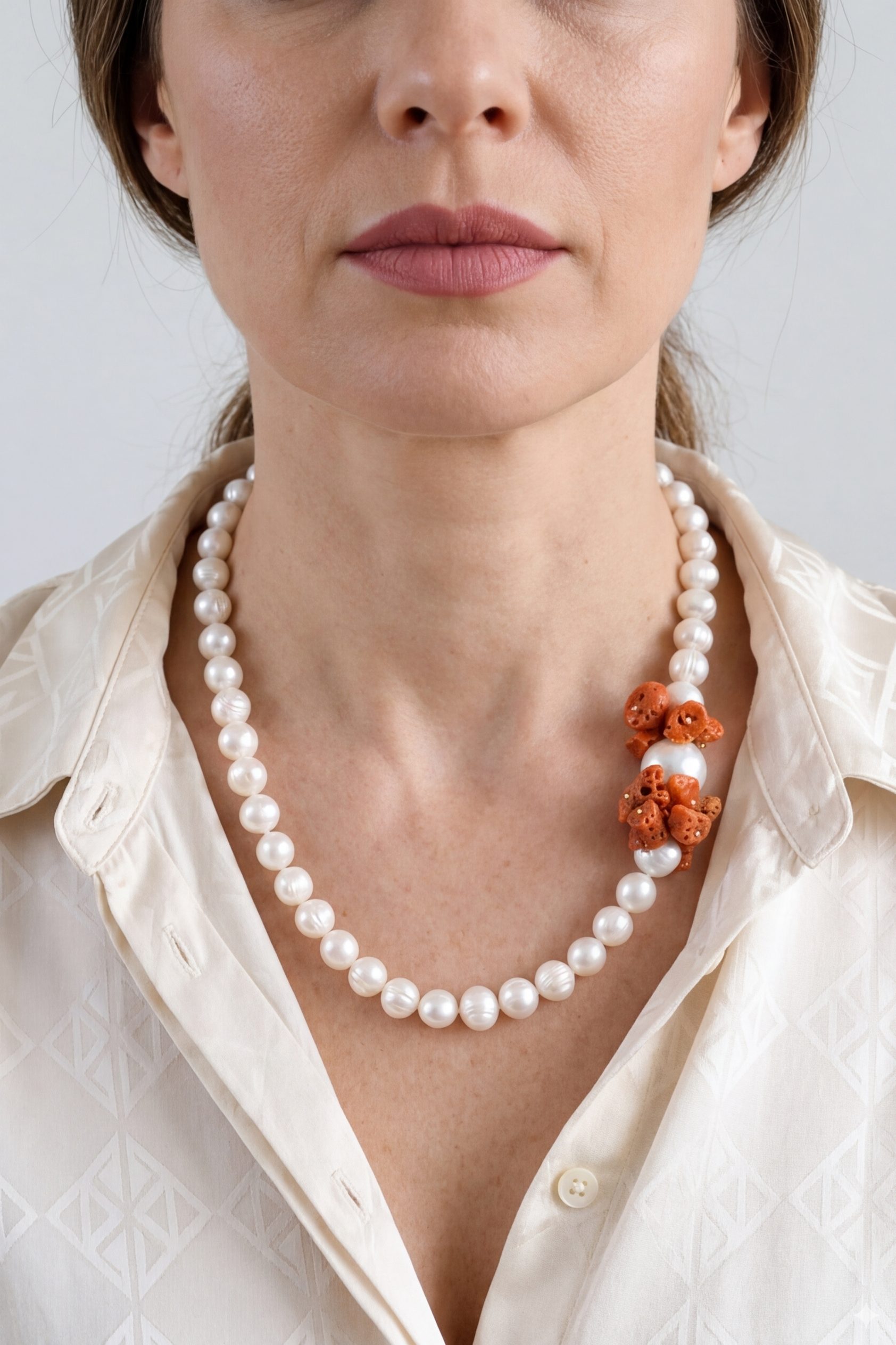 Realizzata con perle naturali, con un dettaglio laterale in Perla e Corallo Naturale, è un accessorio che non passa inosservato.