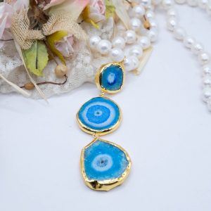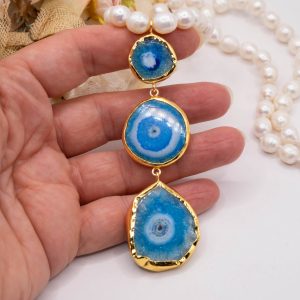 VARIANTE A Agata fetta azzurra variegata ciondolo fisso collana lunga 58 cm + 9 cm il ciondolo