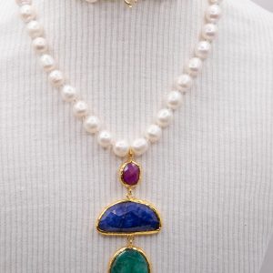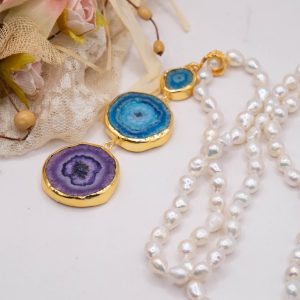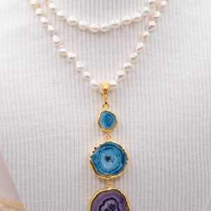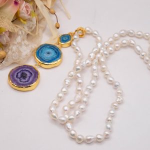 Collana Perle Naturali Pendente Pietre Naturali 3 Varianti