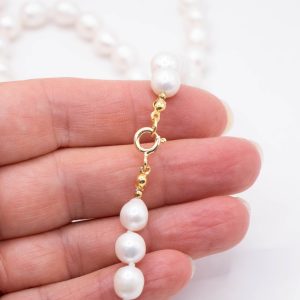 Il girocollo decoltè è in pregiate perle annodate con filo di seta