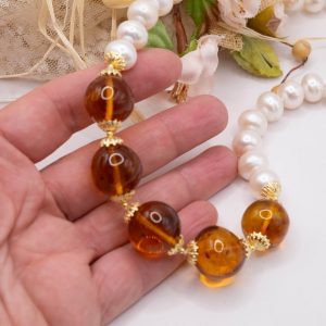 Materiale: Perle Naturali, Ambra del Baltico, Argento 925 placcato oro