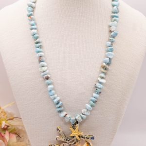 Il girocollo in prezioso larimar è lungo 50 cm regolabile mediante catenina + il pendente lungo 7 cm.