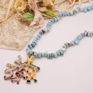 Collana Ramo Corallo Ceramica di Caltagirone Larimar Argento