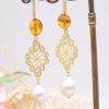 Orecchini conambra naturale da 15 mm e cerchi a filigrana in argento 925 placcato oro tempestato di zirconi