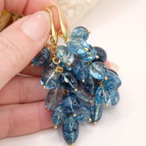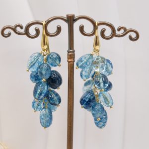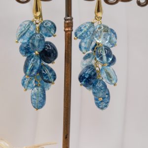 Orecchini pendenti con grappoli di tormaline Azzurro Blu