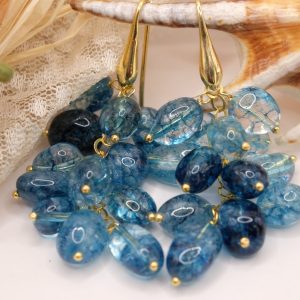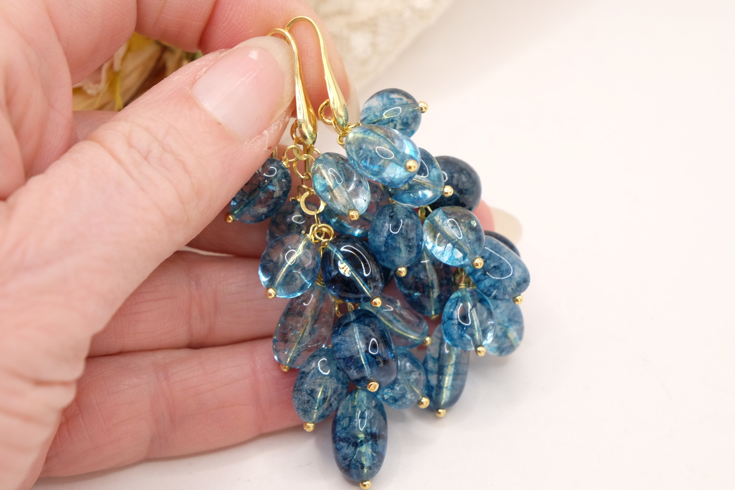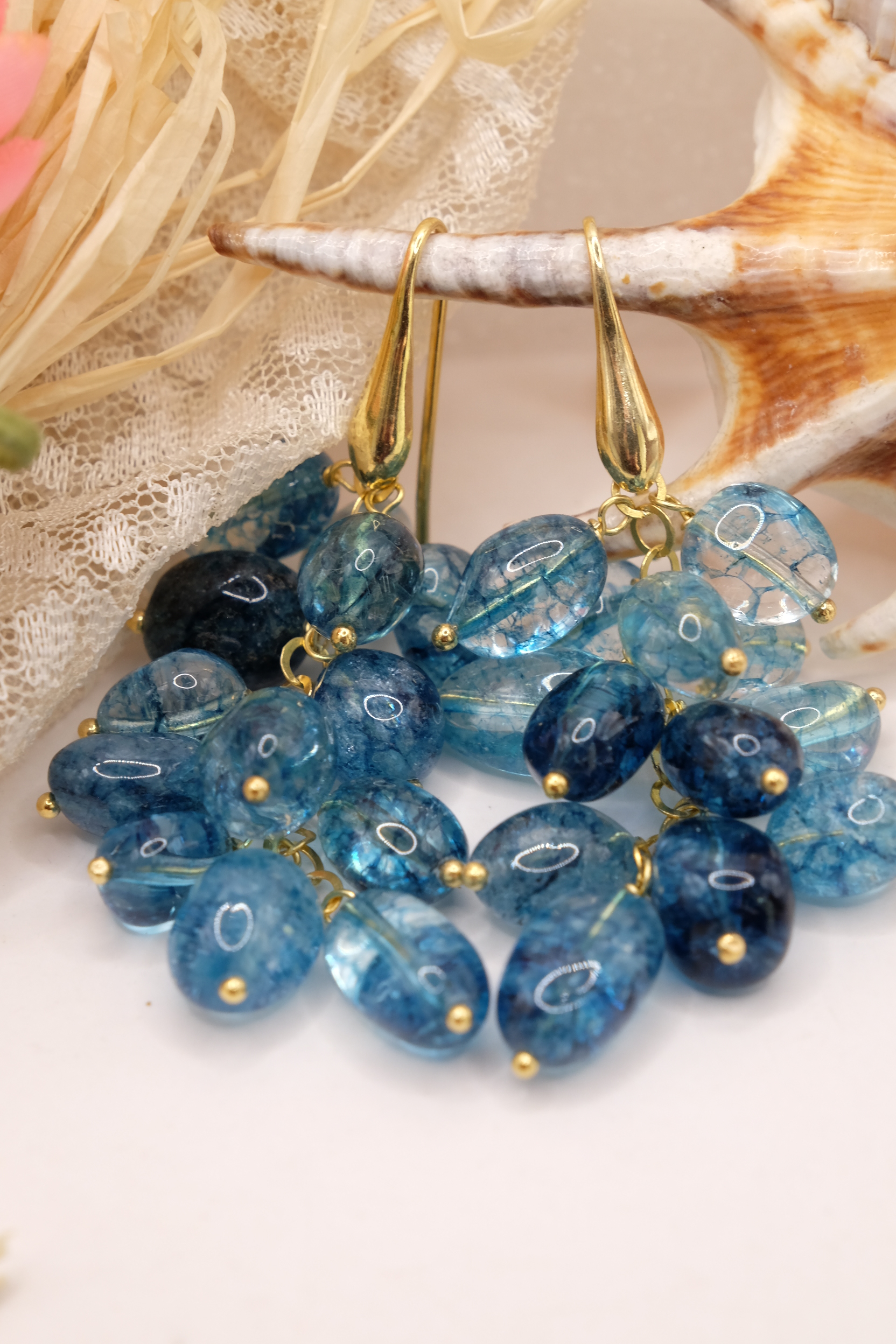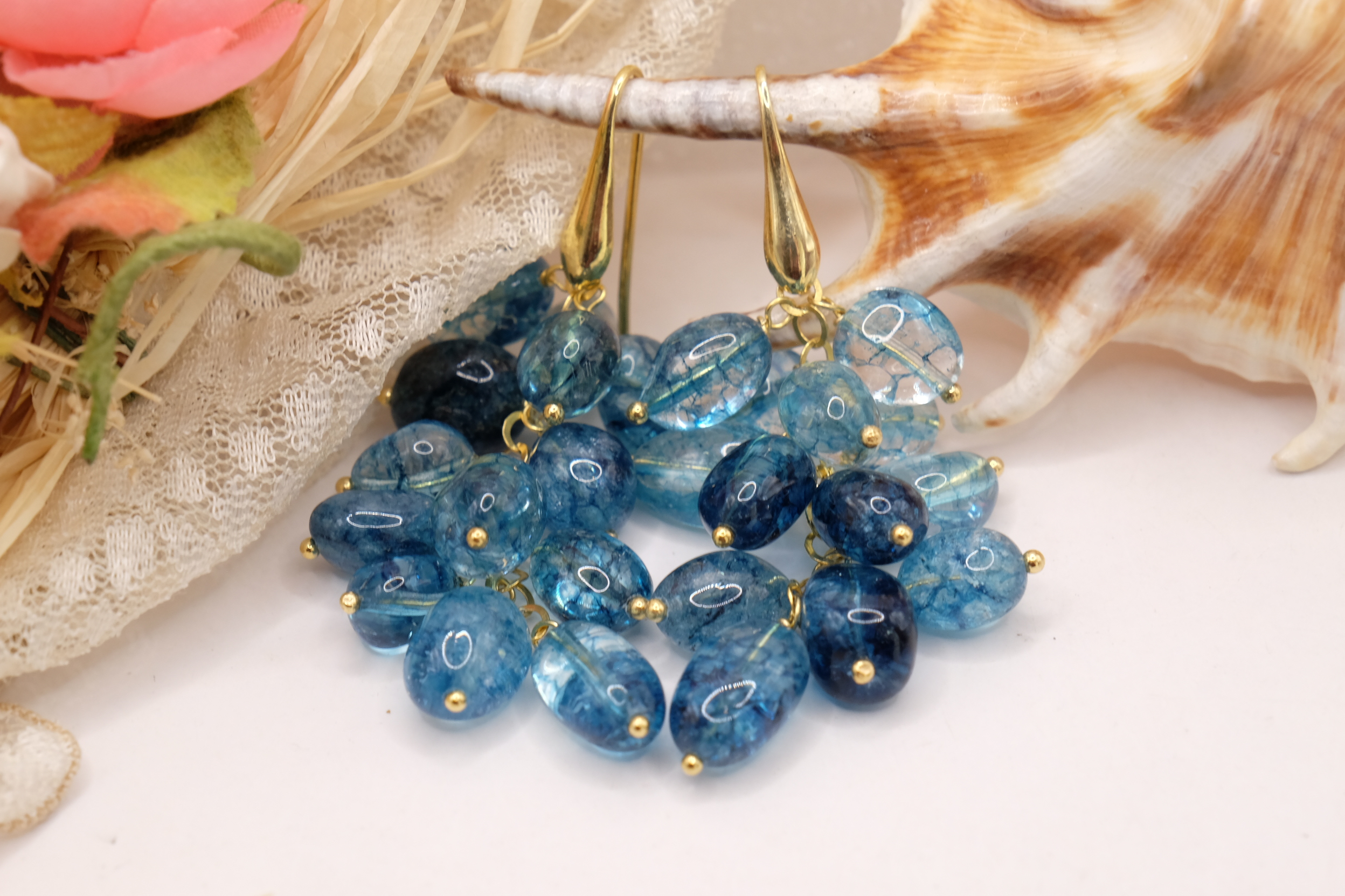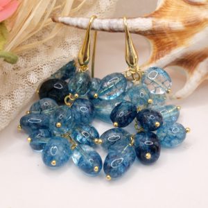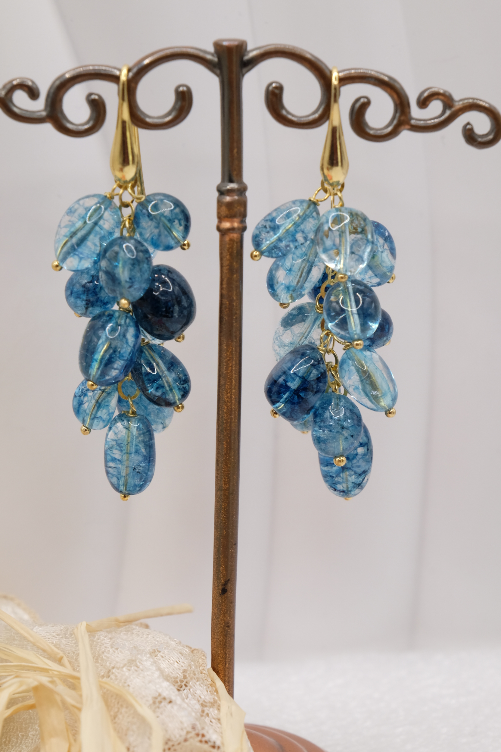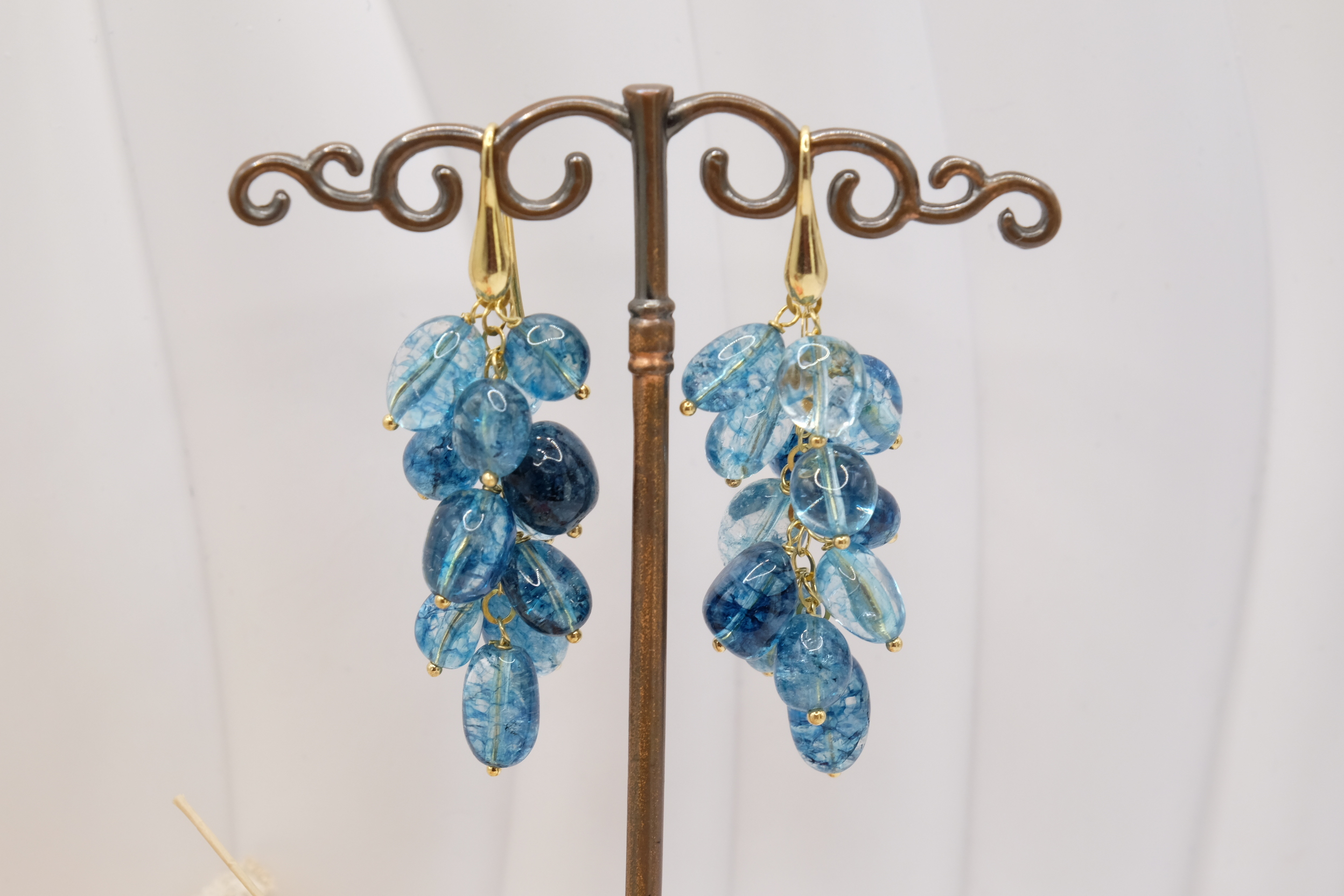 Orecchini Artigianali Tormaline Azzurro Blu Grappolo Argento
