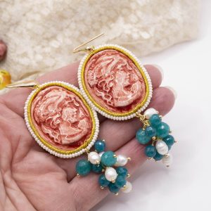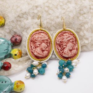 Orecchini Cammeo Ceramica di Caltagirone Giada Tiffany Perle