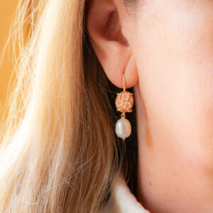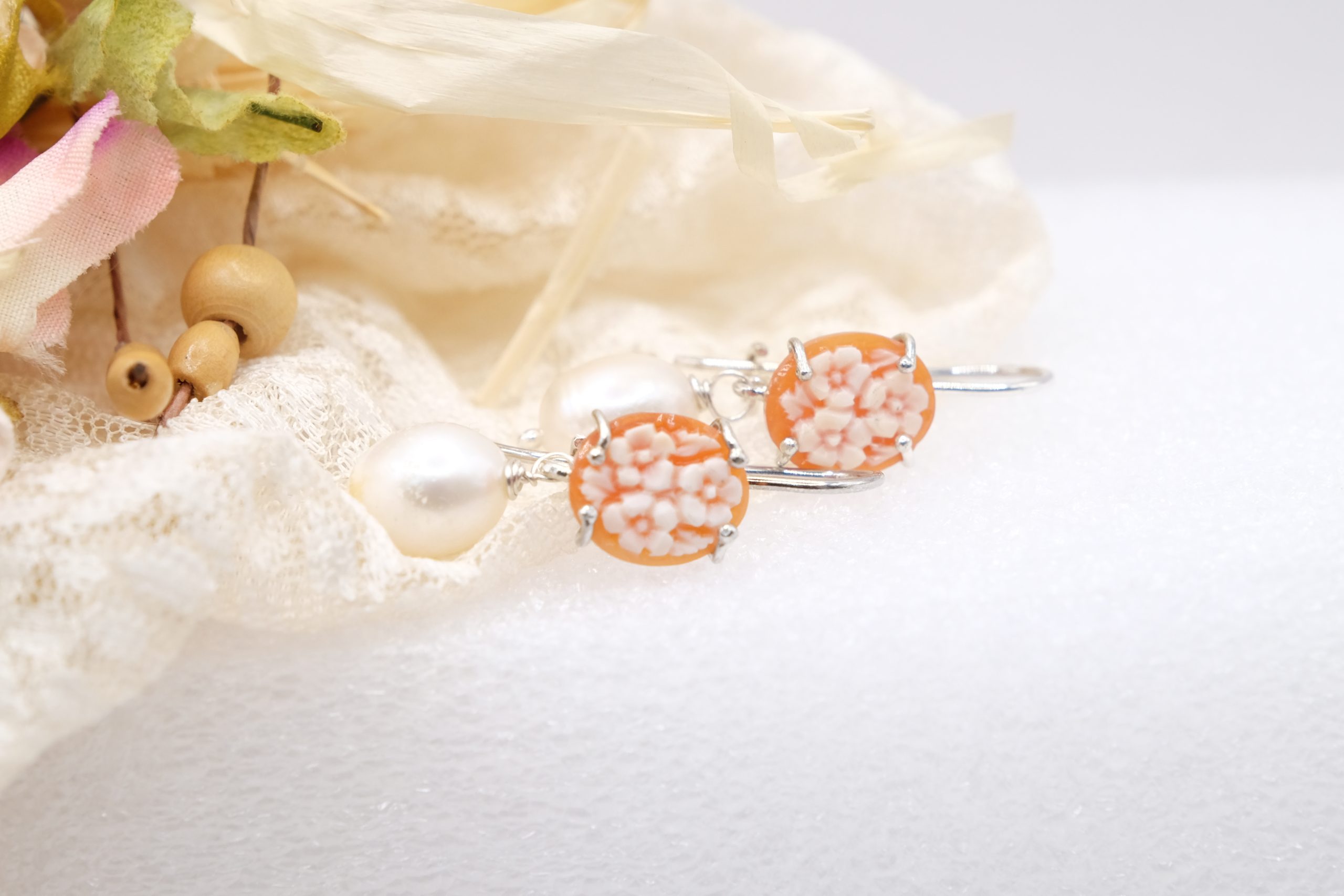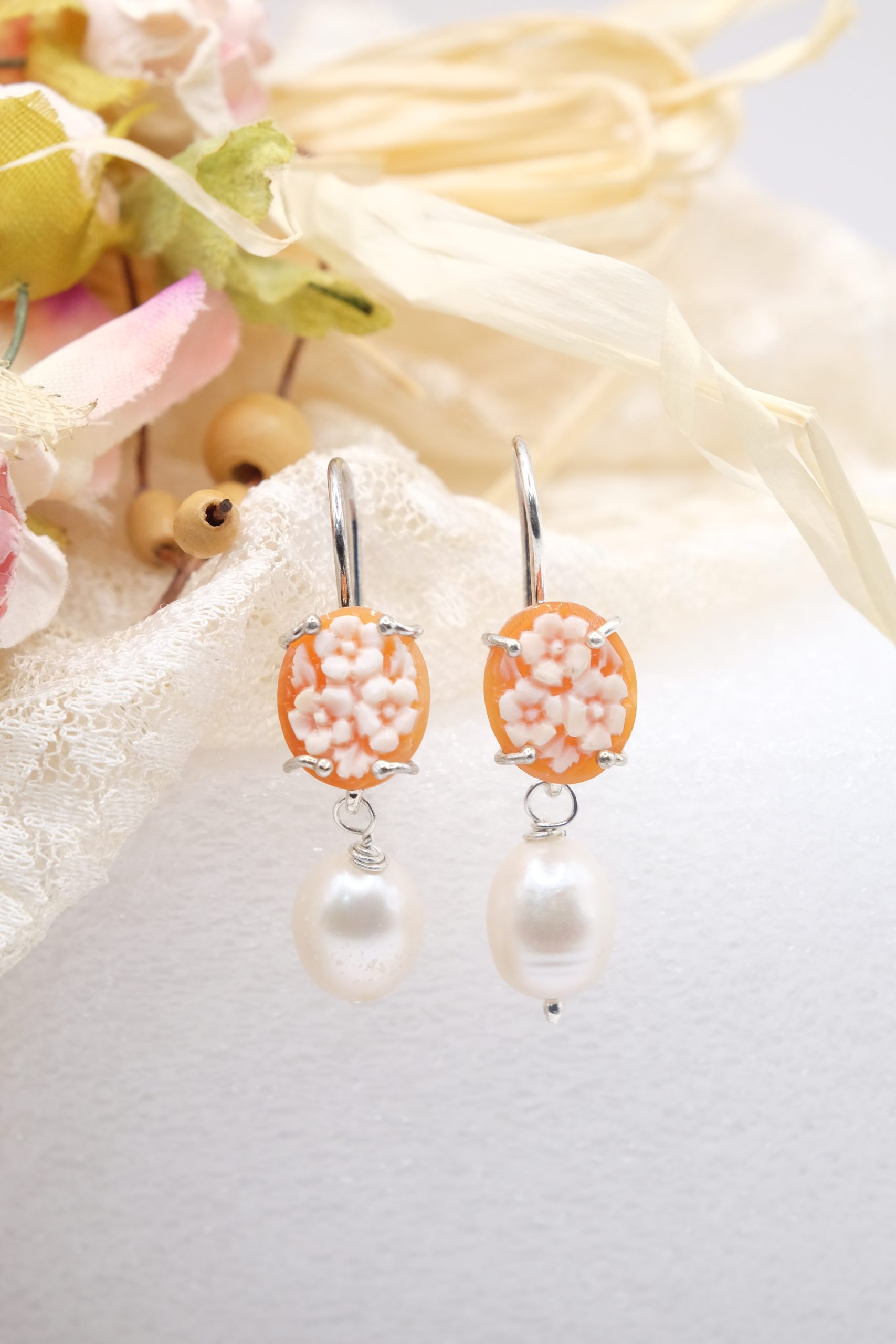 Orecchini Cammeo di Torre del Greco e Perle, Argento placcato oro