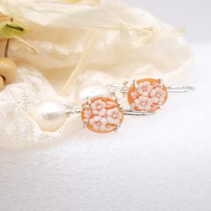 Orecchini Cammeo di Torre del Greco e Perle barocche in Argento rodiato