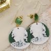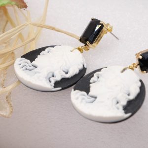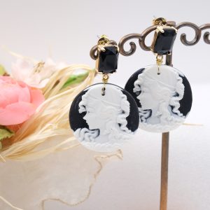 Orecchini interamente realizzati a mano, con cammei in resina a motivo di volto di Dama