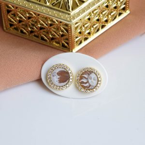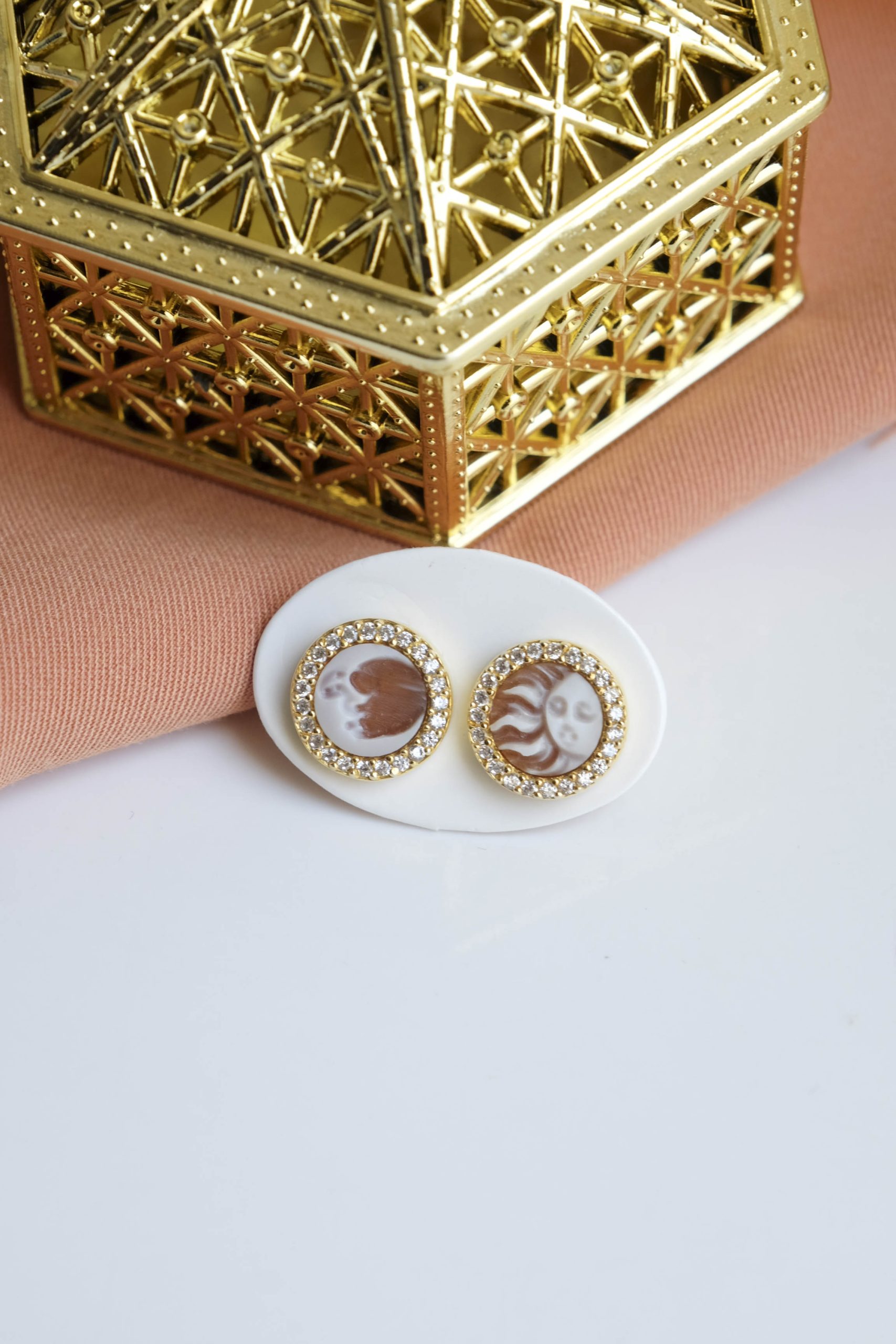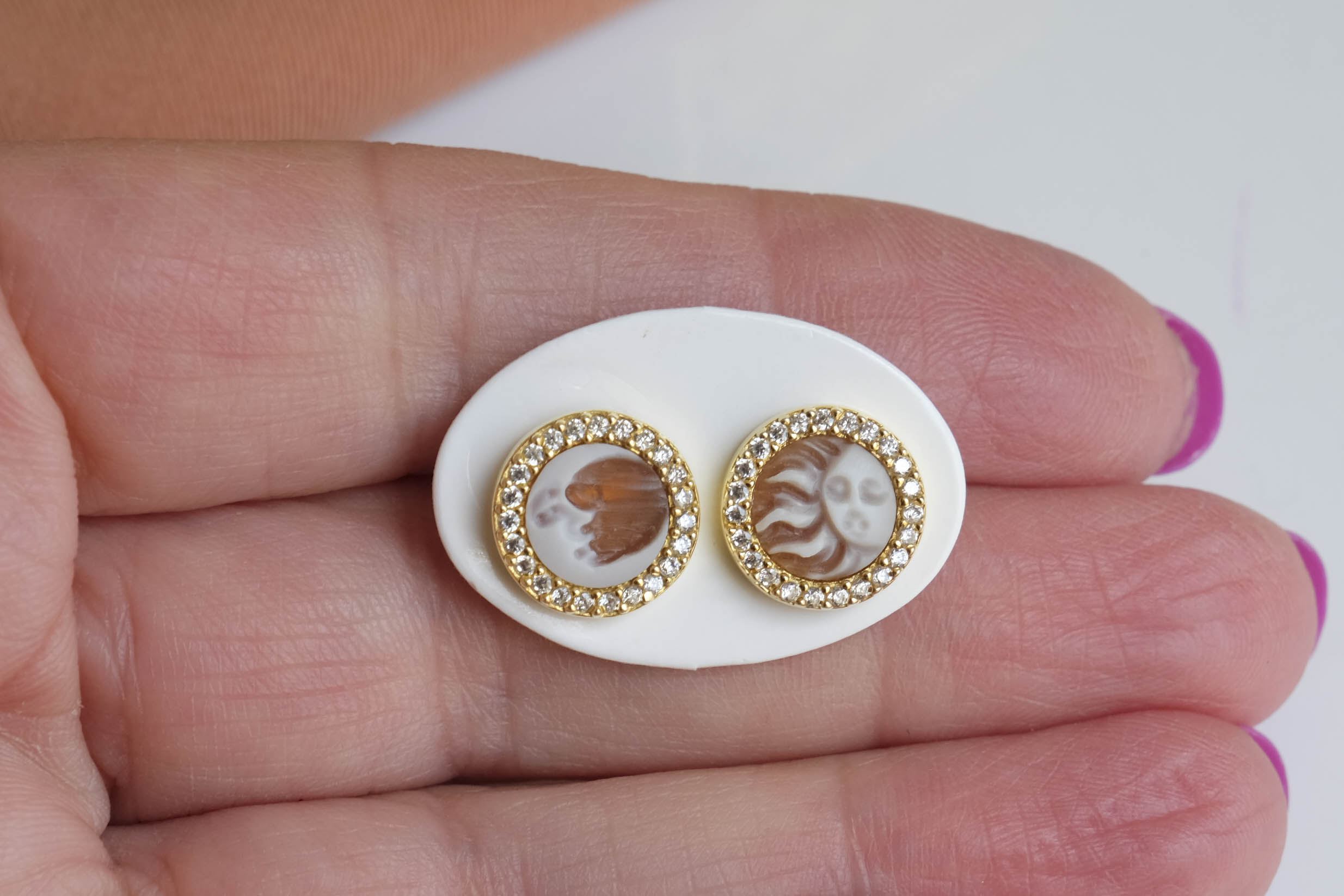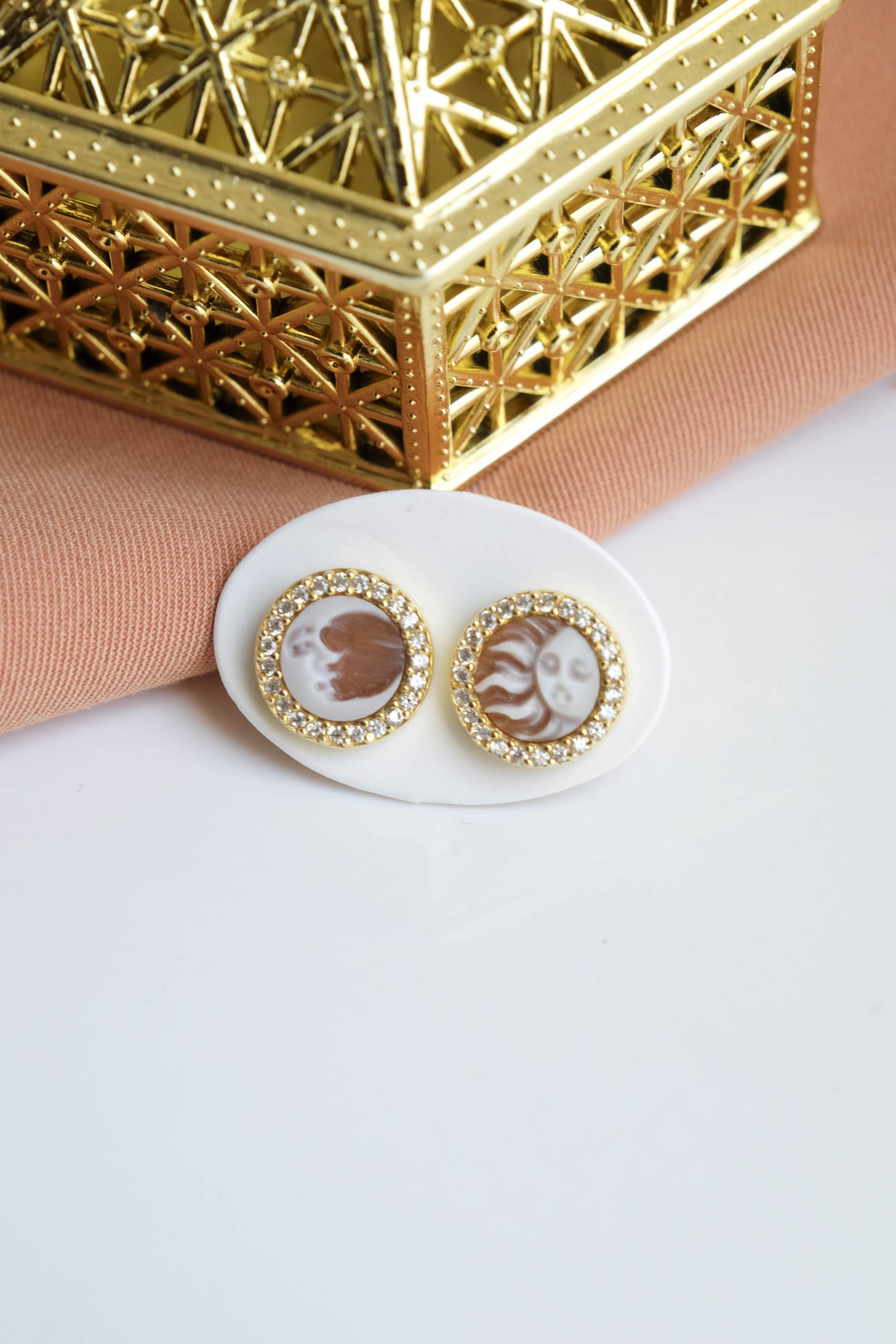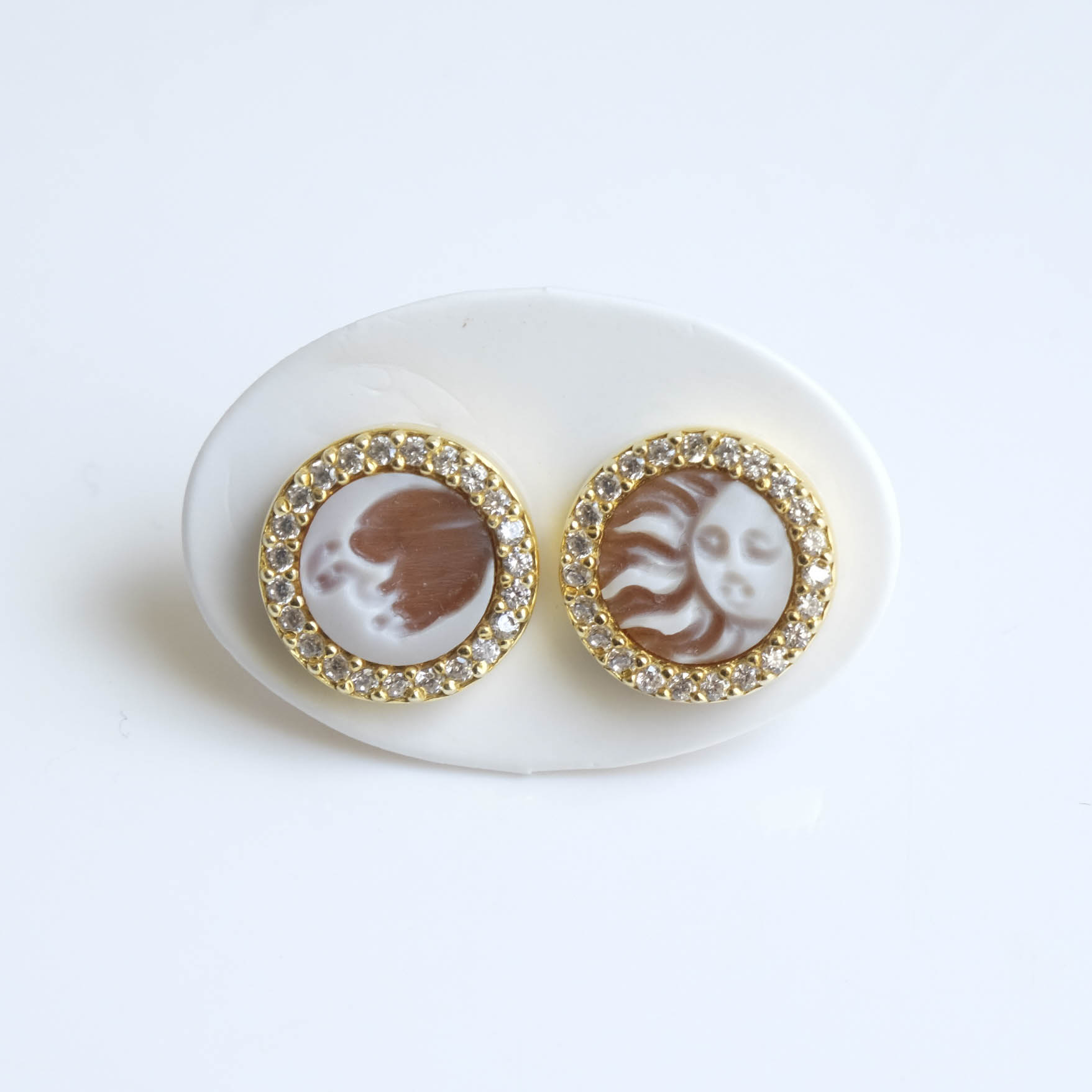Orecchini Cammeo Torre del Greco Sole Luna Zirconi Argento Oro
