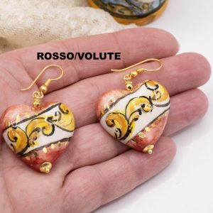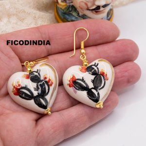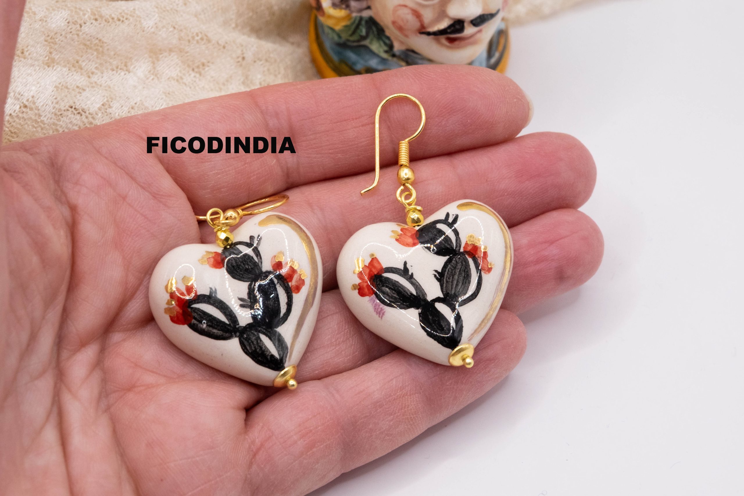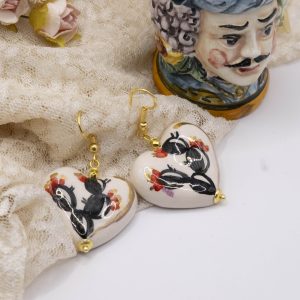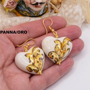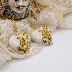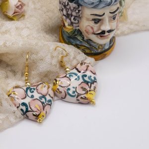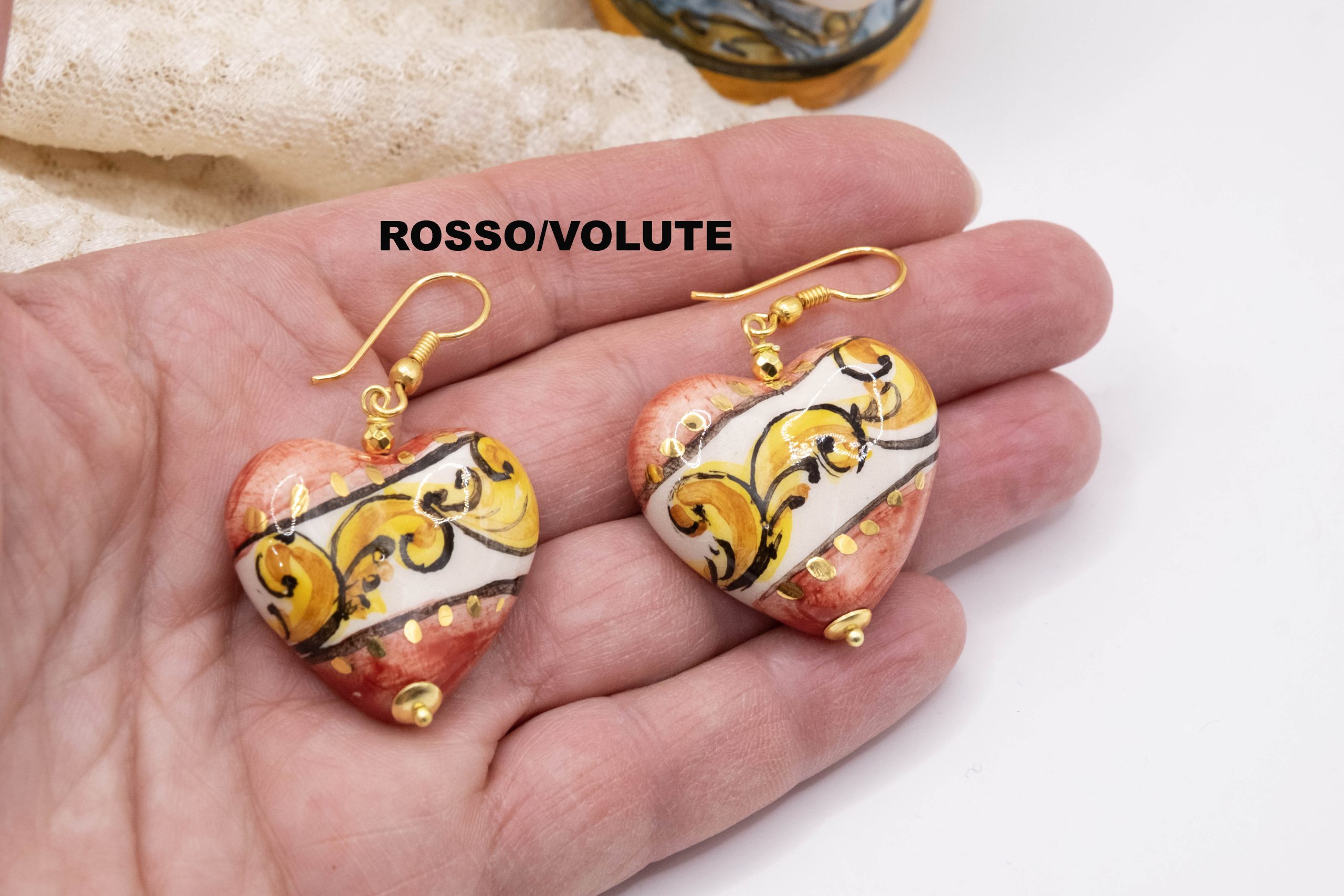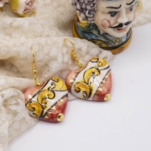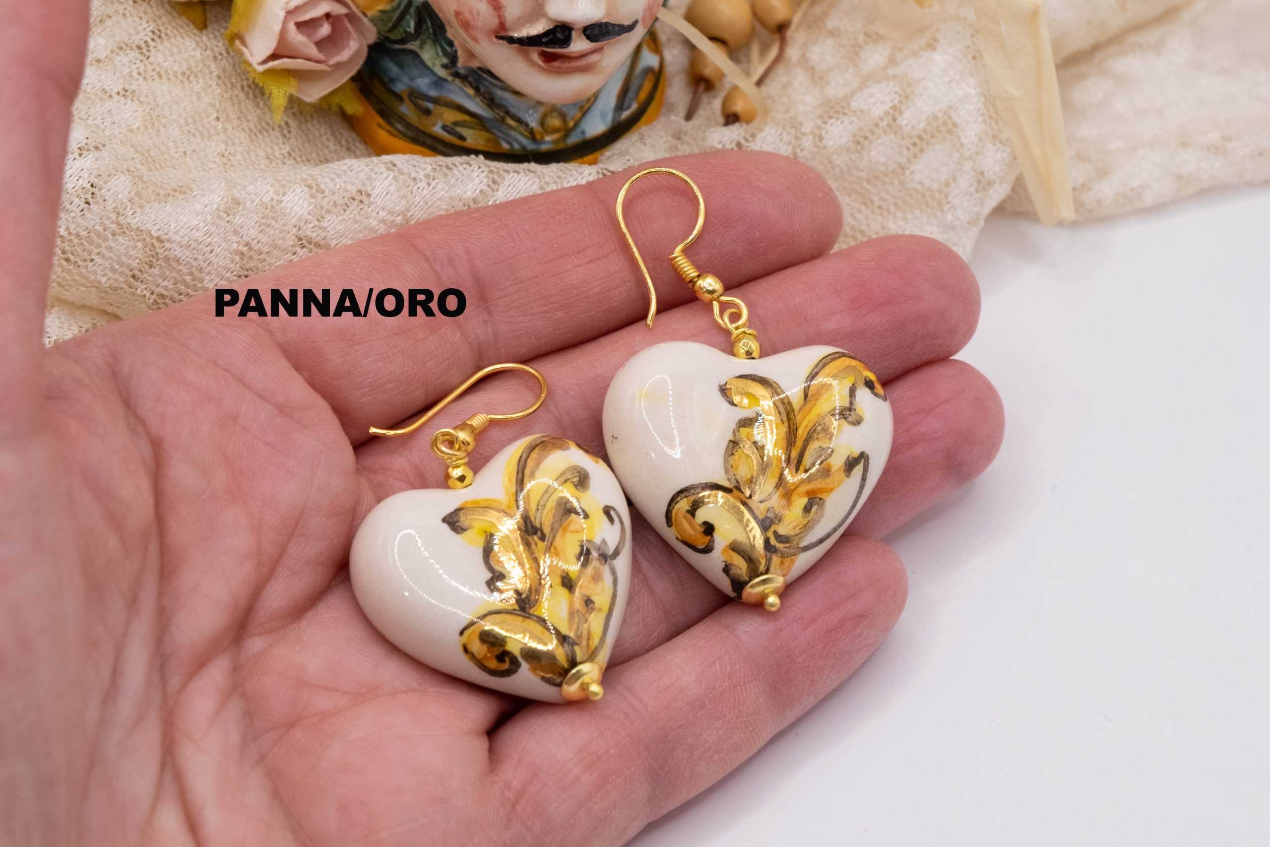 Orecchini Siciliani a Cuore in ceramica di Caltagirone, dipinti a mano con dettagli in oro zecchino