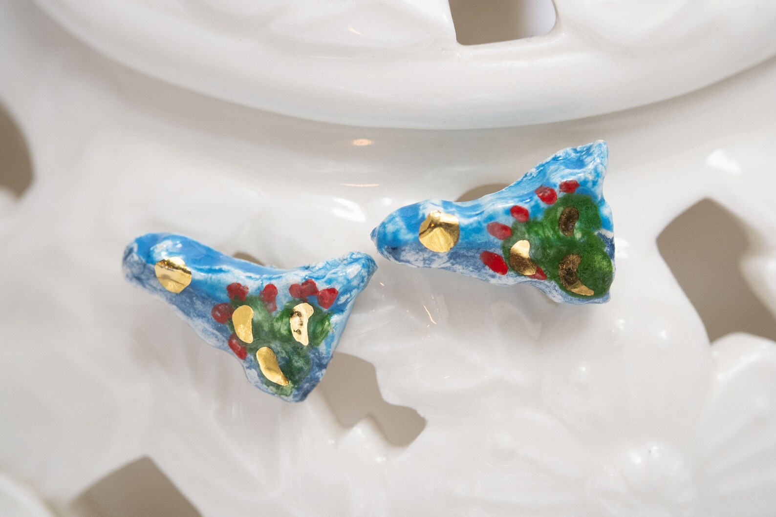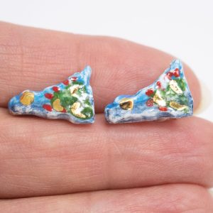 Orecchini ceramica di Caltagirone Sicilia a lobo argento