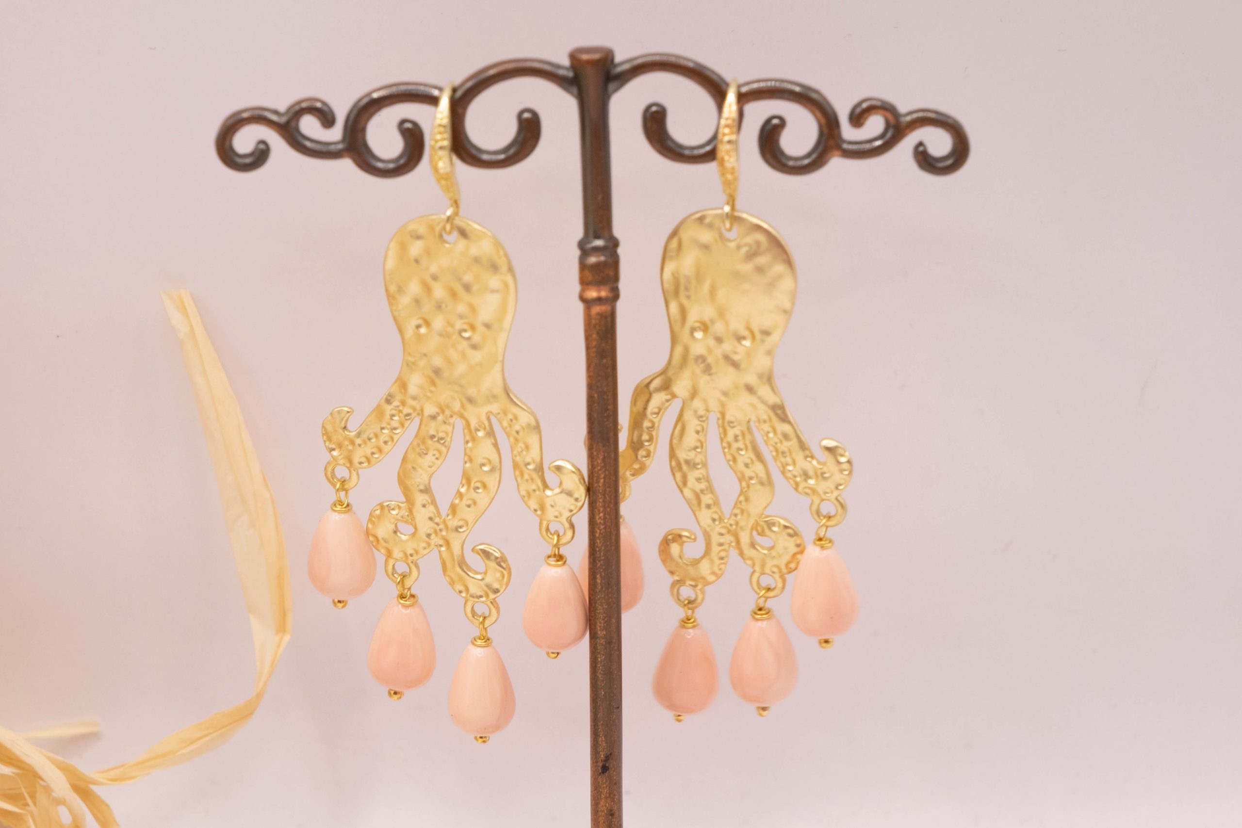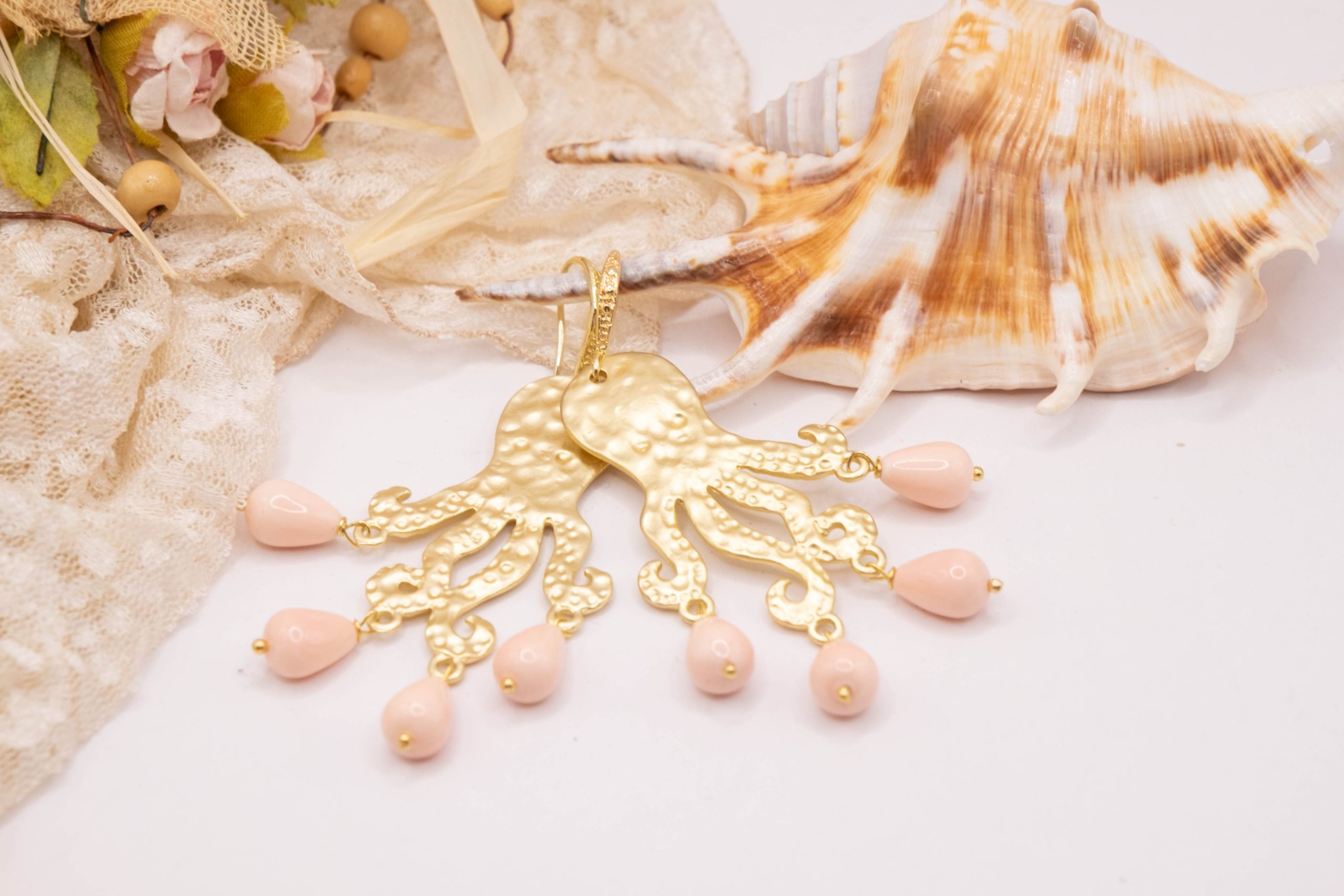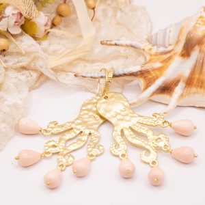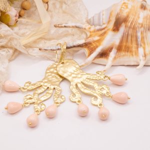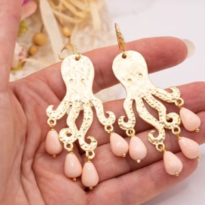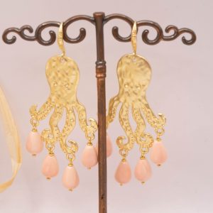Orecchini con Polpo ottone perle rosa