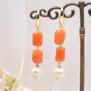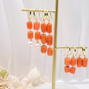 Orecchini Corallo Bamboo Con o Senza Perle Naturali 4 Varianti
