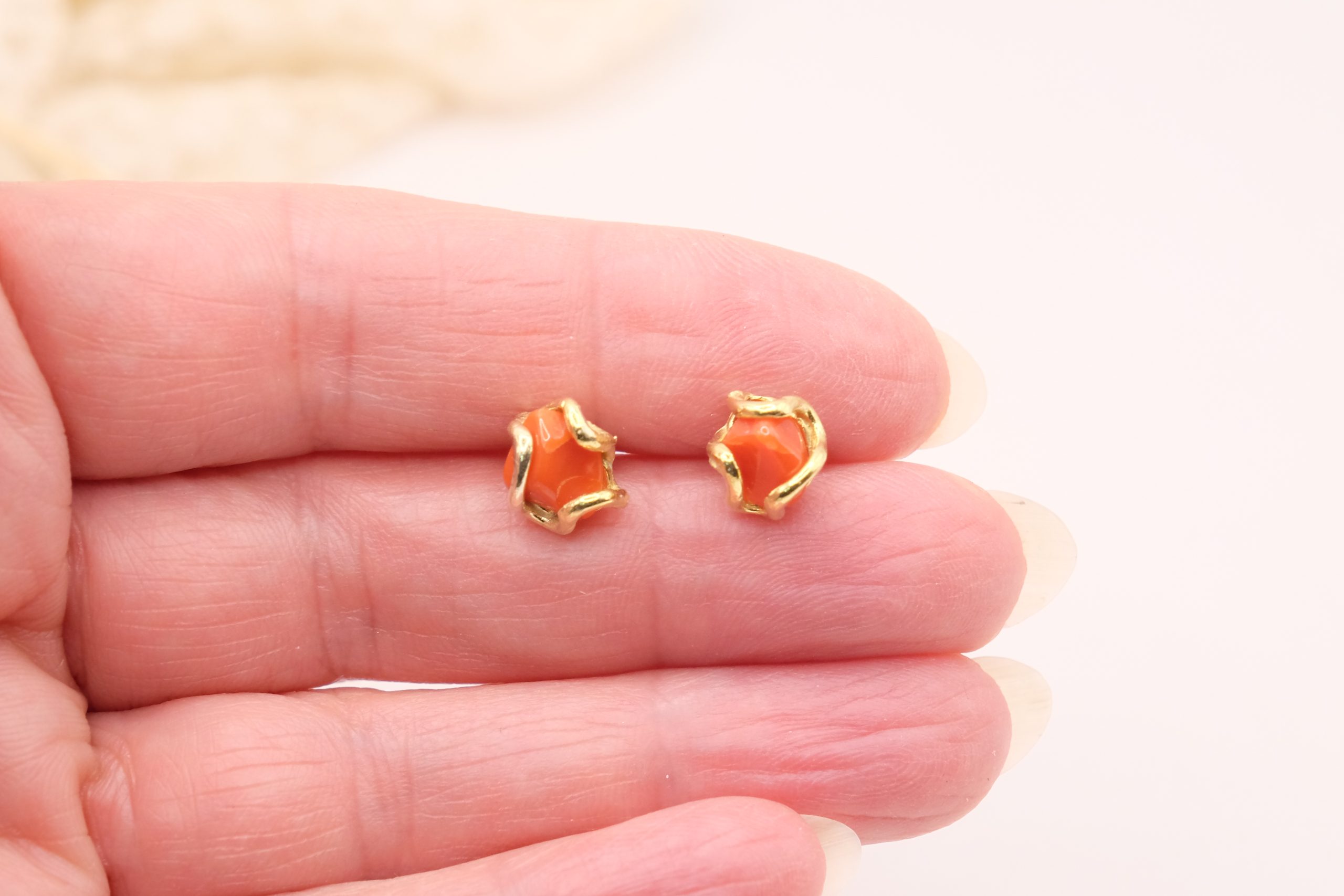 Orecchini a lobo in corallo rosso naturale da 0,8/1 cm mm circa.